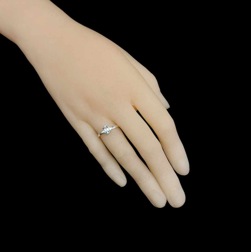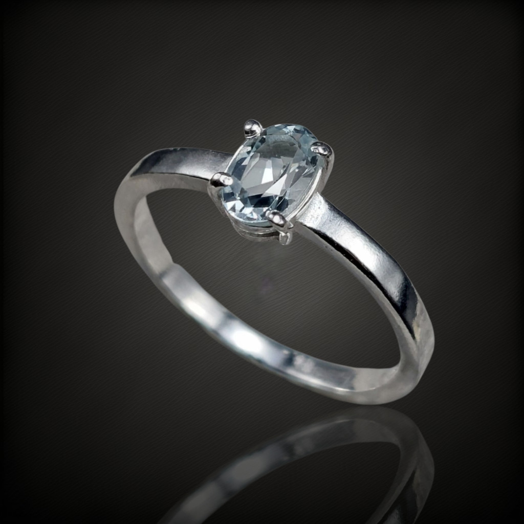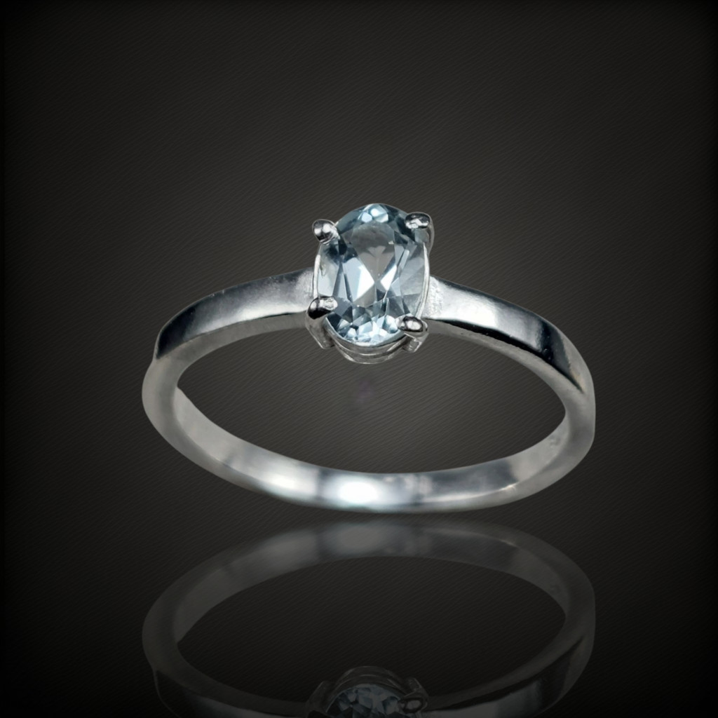 Akvamarin köves ezüst gyűrű.A kő nagysága: 6x4mm, származási helye: PakisztánAz ékszer anyaga 925-ös finomságú ezüst.A kő színe és mintázata élőben kis mértékben eltérhet a képen láthatótól.A megfelelő méret kiválasztásában a gyűrűmérettáblázatunk segít