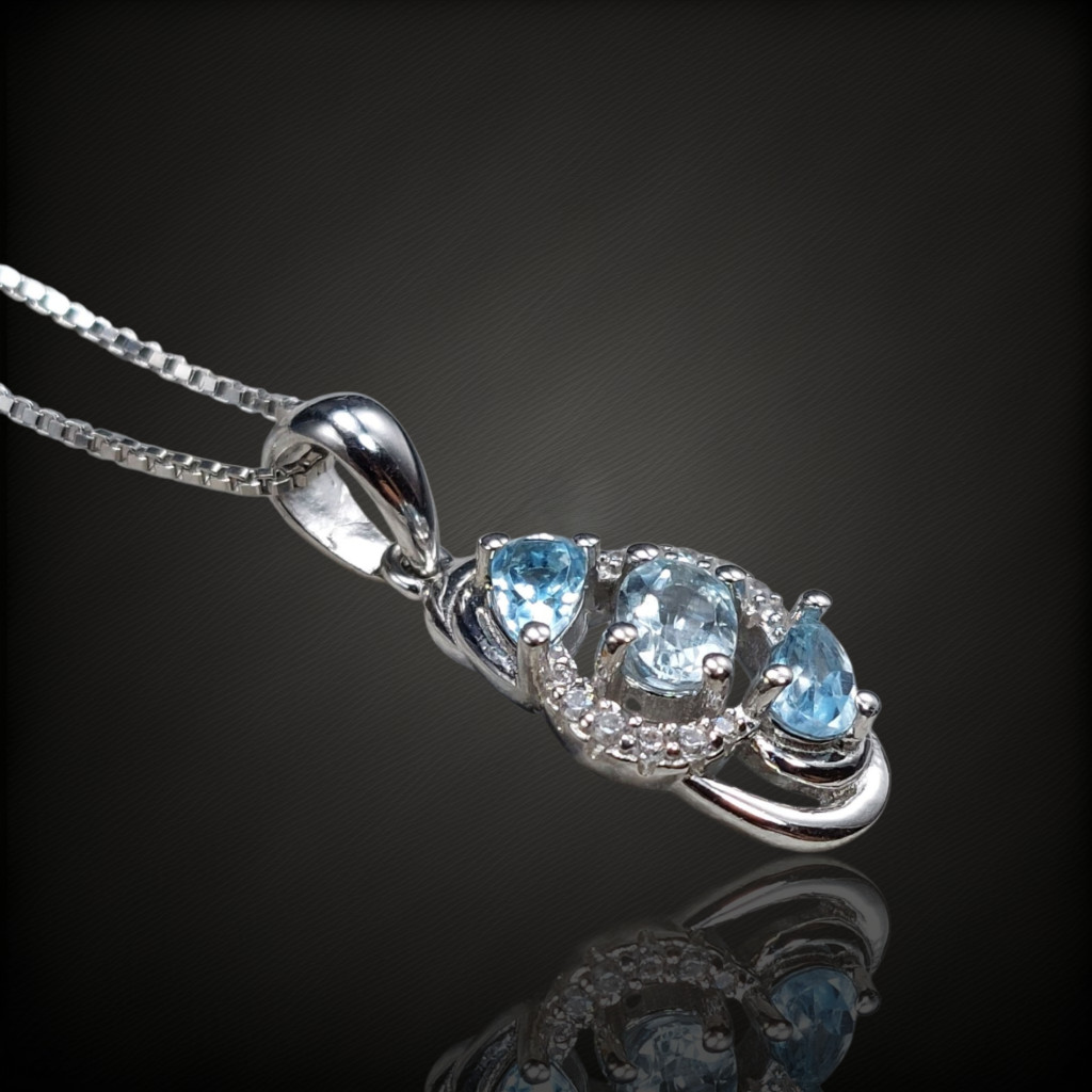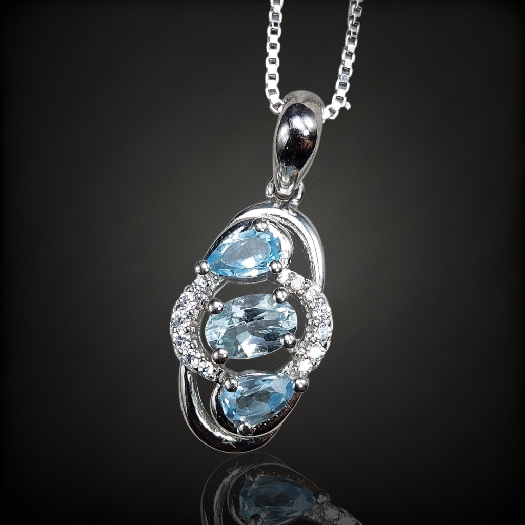 Akvamarin és topáz köves ezüst medál cirkónia díszítéssel.A medál magassága bújtatóval együtt 22mm.Az ékszer anyaga 925-ös finomságú ezüst 14 karátos fehérarany bevonattal.A kő színe élőben kis mértékben eltérhet a képen láthatótl!A nyaklánc nem tartozék!