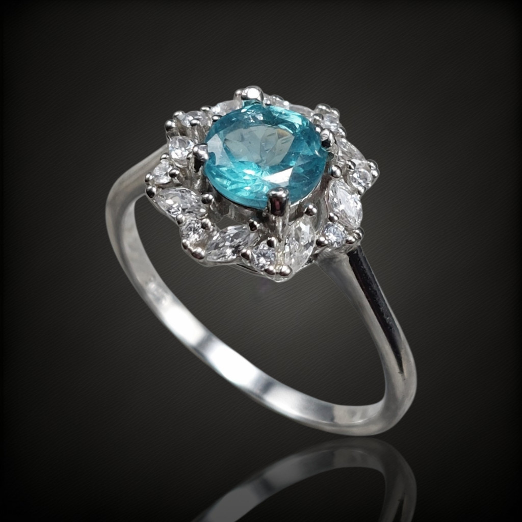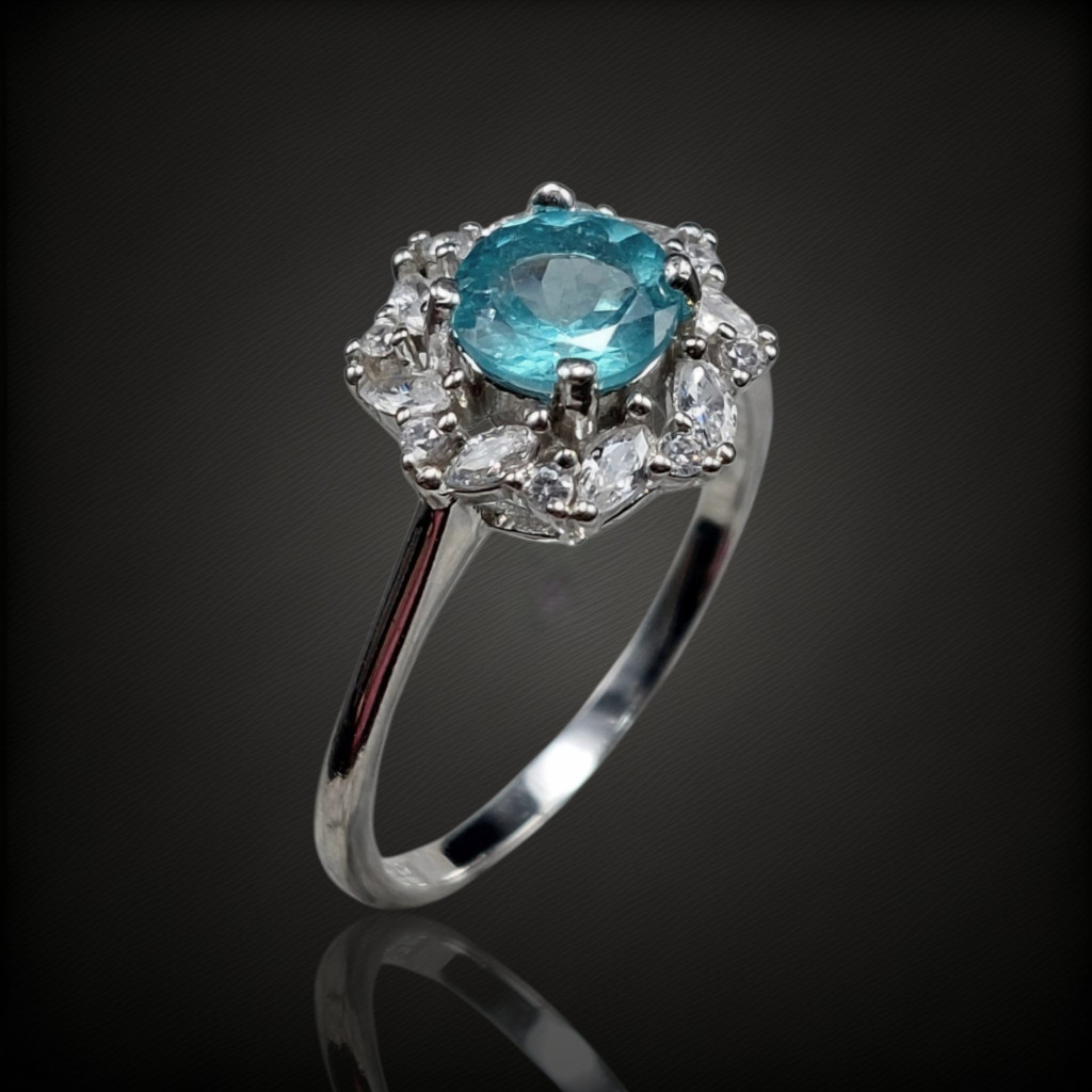 Apatit köves ezüst gyűrű cirkónia díszítéssel