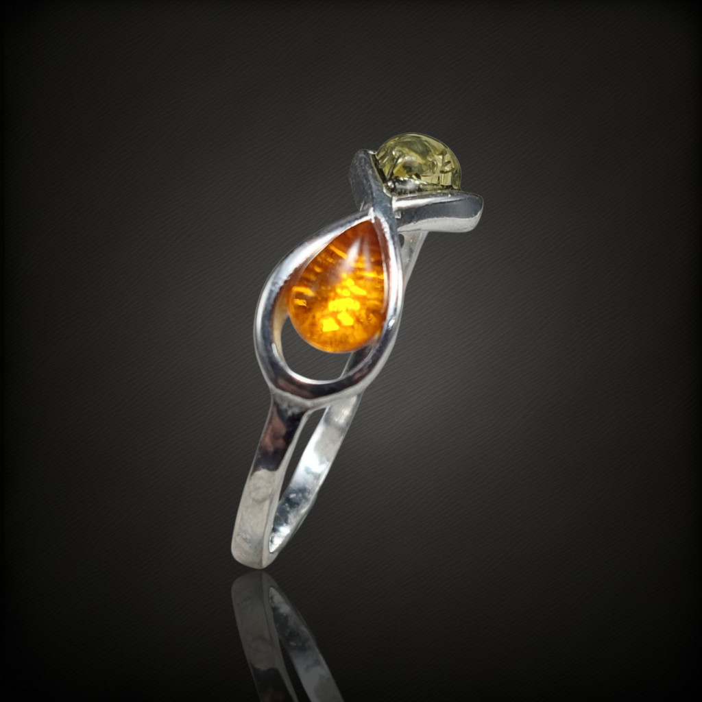 Borostyán ezüst gyűrű.A kövek mérete: 6x4mm.Az ékszer anyaga 925-ös finomságú ezüst.A kő színe élőben kis mértékben eltérhet a képen láthatótól!A megfelelő méret kiválasztásában a gyűrűmérettáblázatunk segít