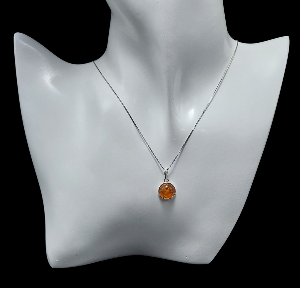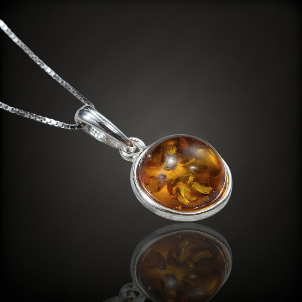 Ez a kör alakú borostyán medál stílusos kiegészítője lehet a hétköznapoknak vagy különleges alkalmaknak – akár ajándékba is tökéletes választás.