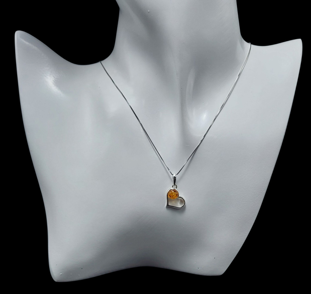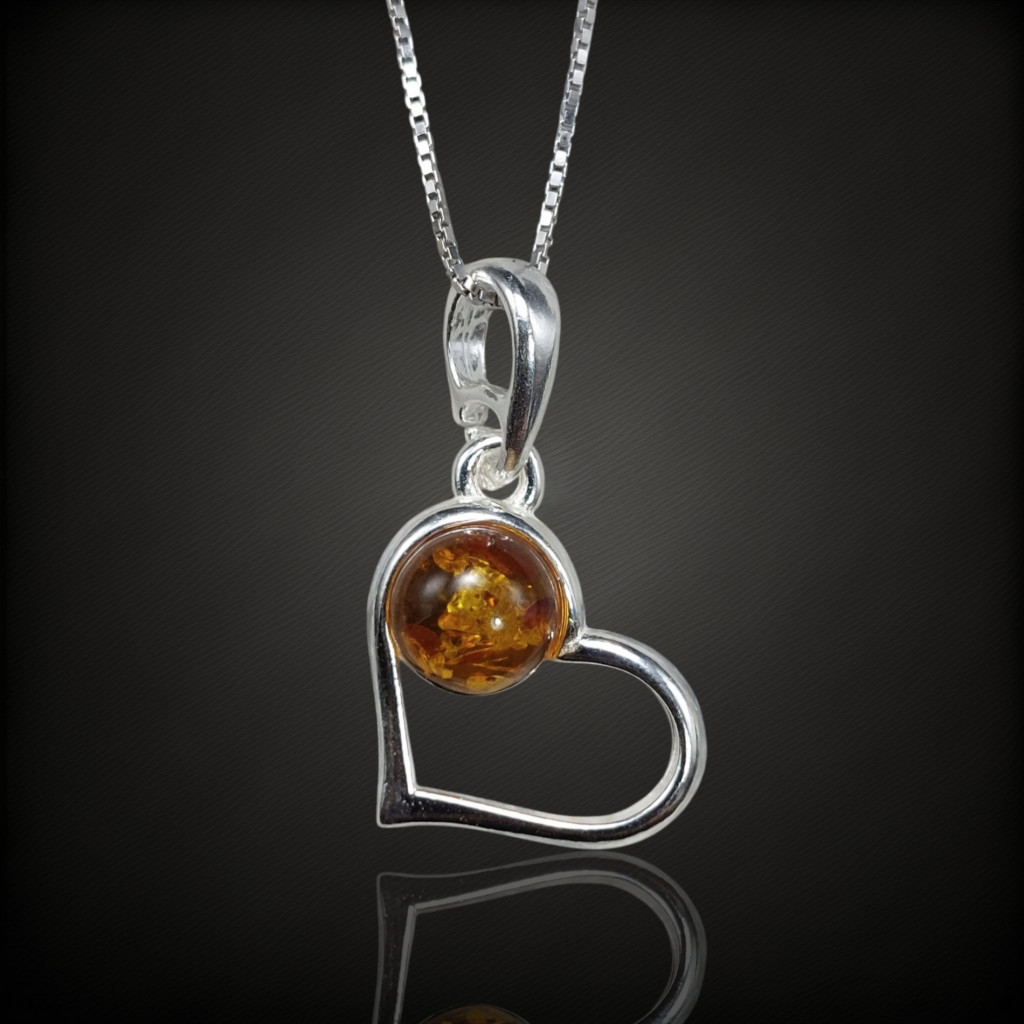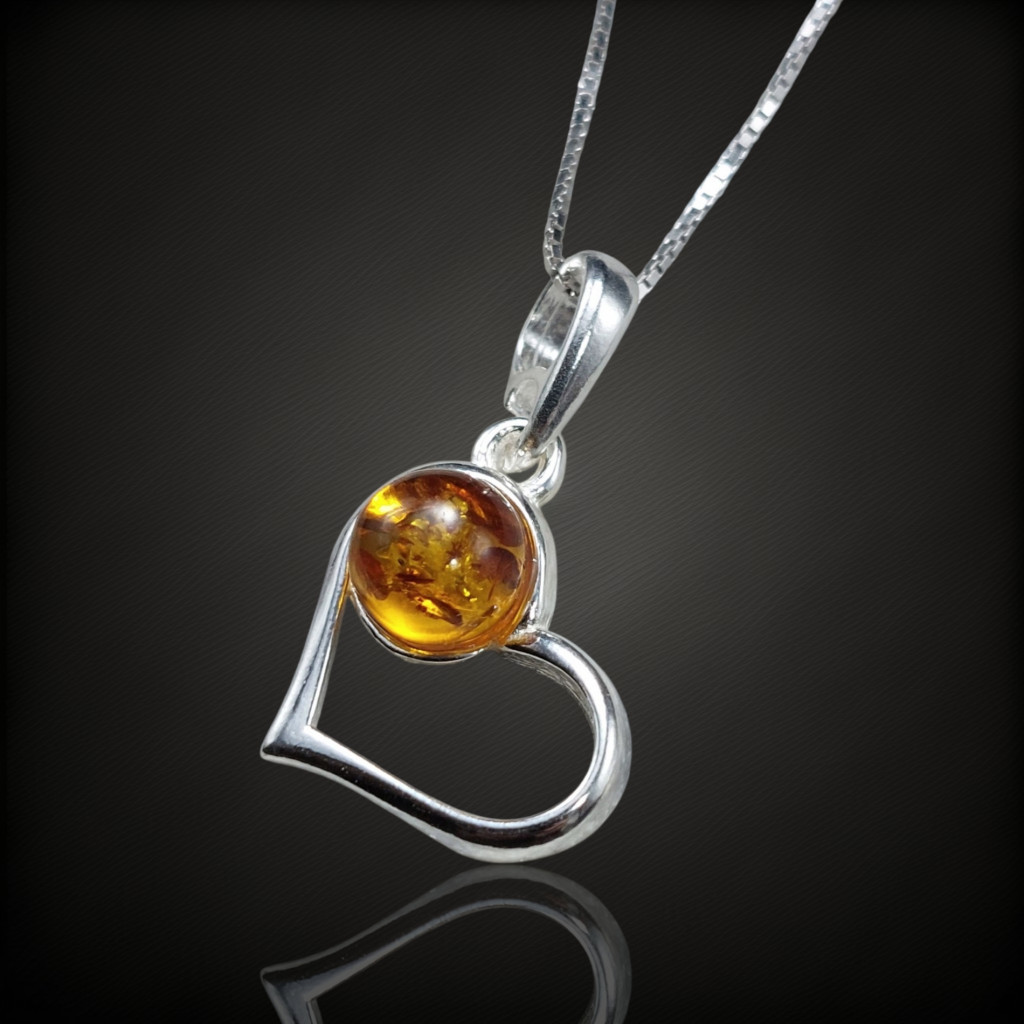 Ez a finoman kidolgozott szív alakú borostyán köves ezüst medál letisztult formavilágával és természetes kisugárzásával tökéletes ajándék lehet – akár szeretteidnek, akár saját magadnak. A szív formájú medál egyik felső részében egy csillogó mézszínű borostyán golyó helyezkedik el, mely meleg árnyalatával és zárványos belsejével a természet egyedi szépségét tükrözi. A medál teljes hossza 19 mm bújtatóval együtt, anyaga 925-ös finomságú ezüst, ami nemcsak tartósságot, de eleganciát is kölcsönöz az ékszernek.