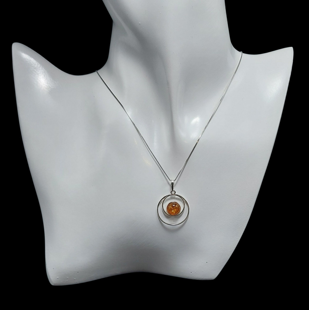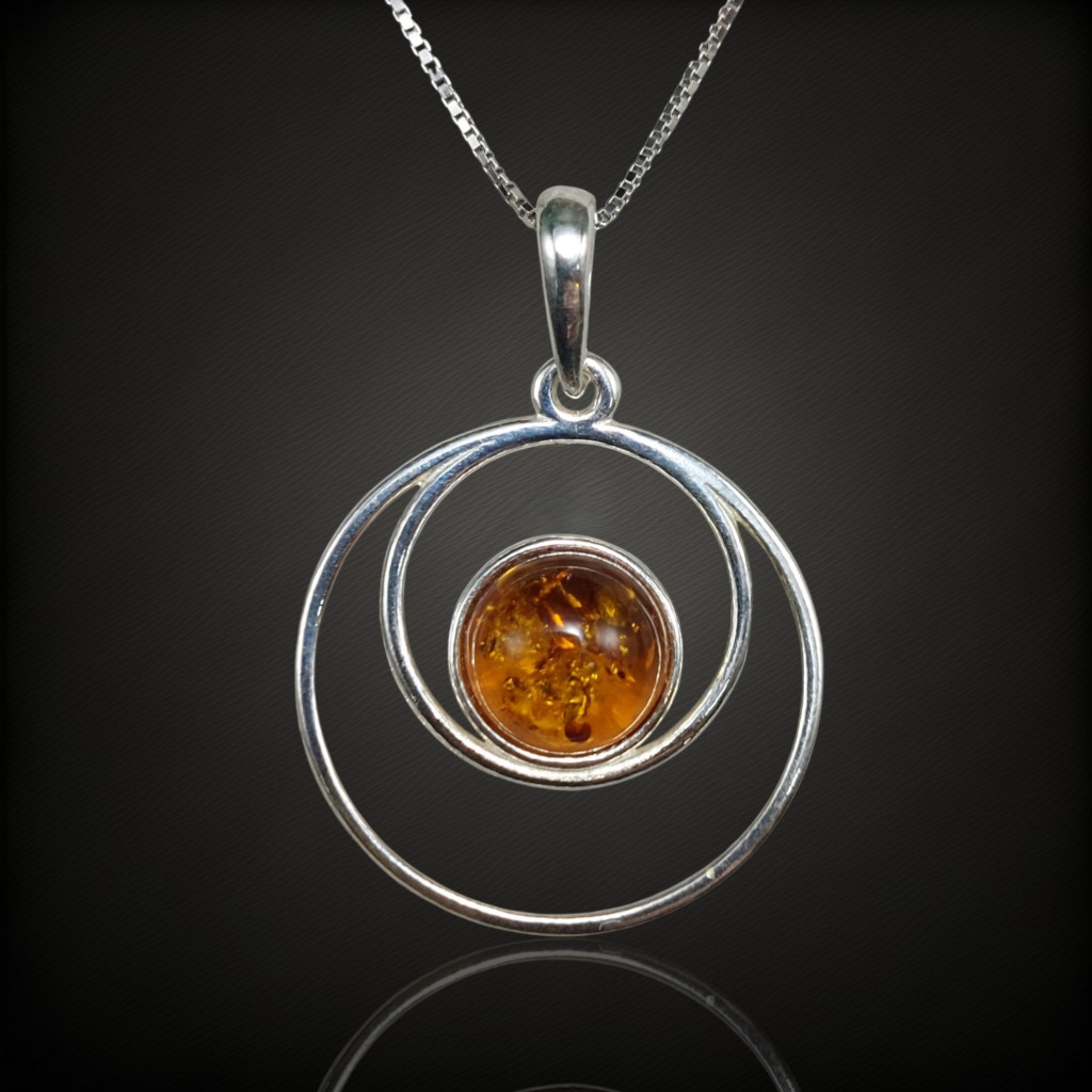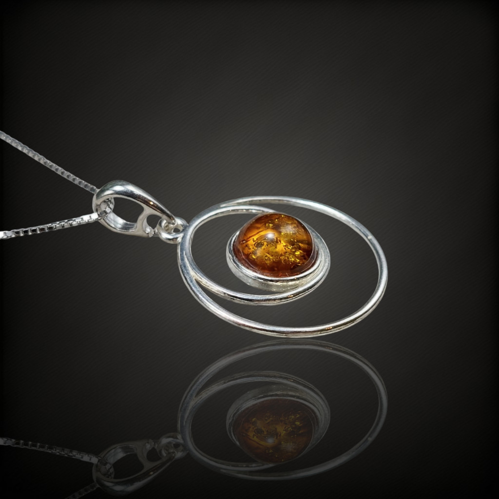 Borostyán köves ezüst medál.A medál nagysága bújtatóval együtt 28mm.Az ékszer anyaga 925-ös finomságú ezüst.A kő színe élőben kis mértékben eltérhet a képen láthatótól.A nyaklánc nem tartozék!