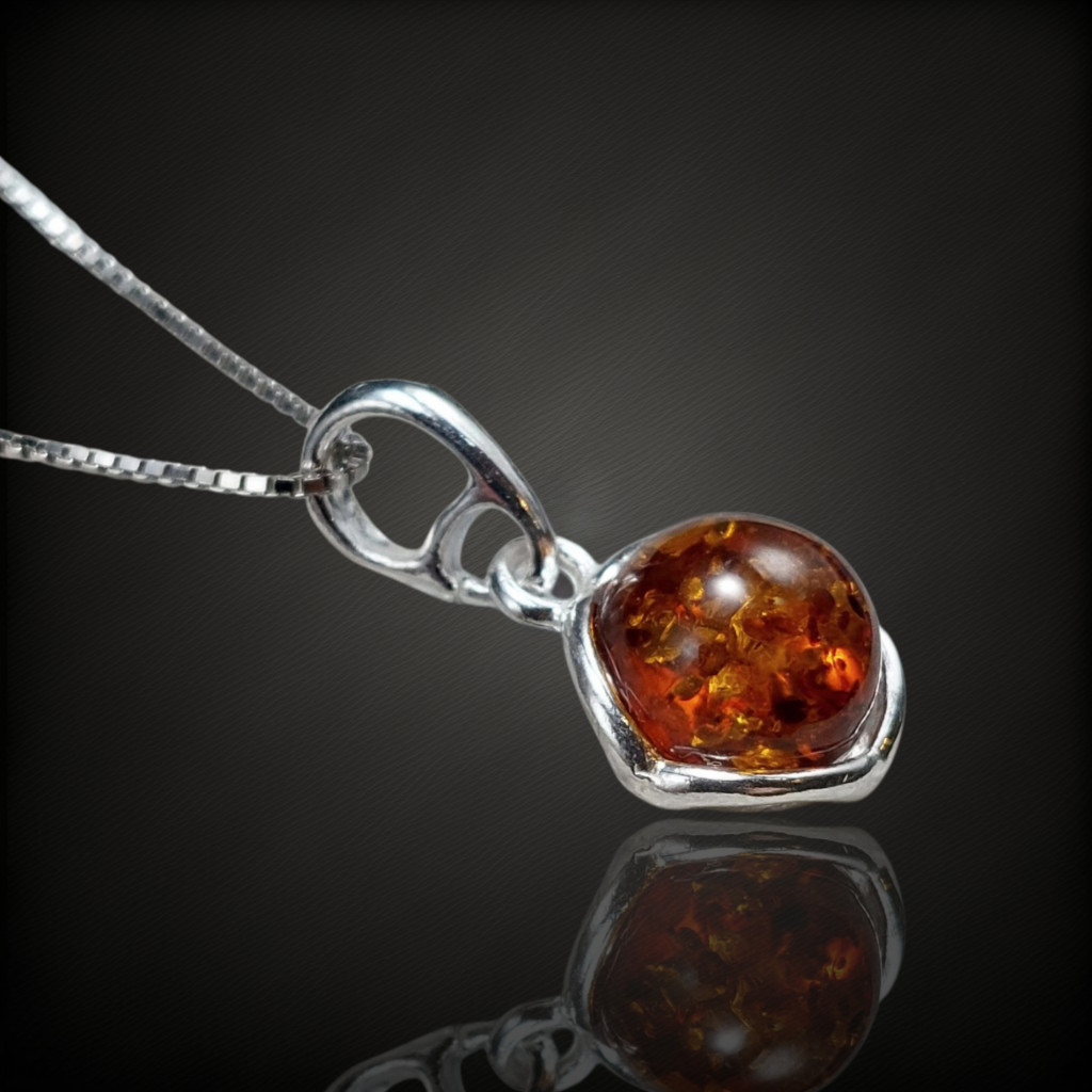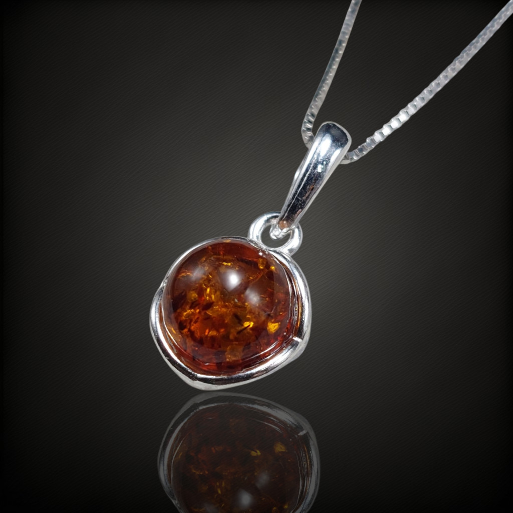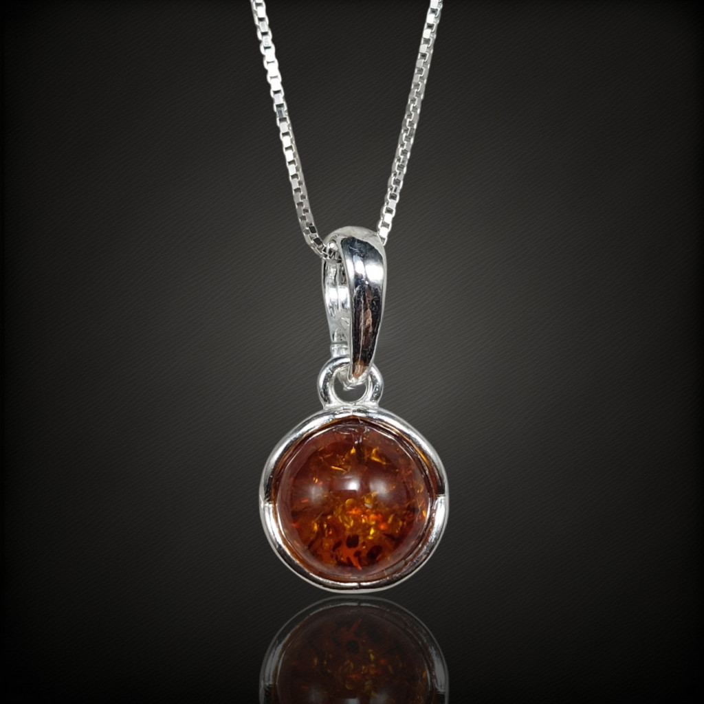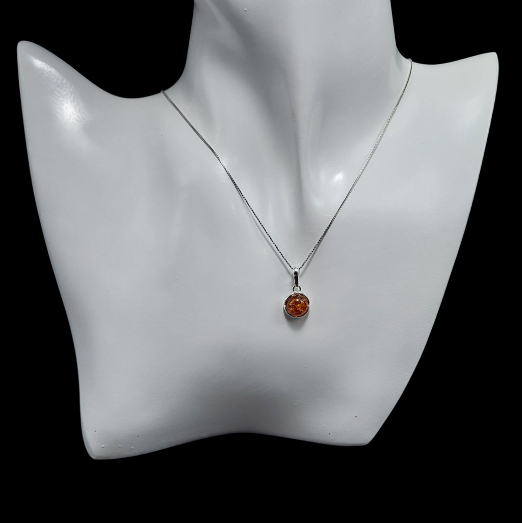 Borostyán köves ezüst medál.A medál nagysága bújtatóval együtt 17mm.Az ékszer anyaga 925-ös finomságú ezüst.A kő színe élőben kis mértékben eltérhet a képen láthatótól.A nyaklánc nem tartozék!