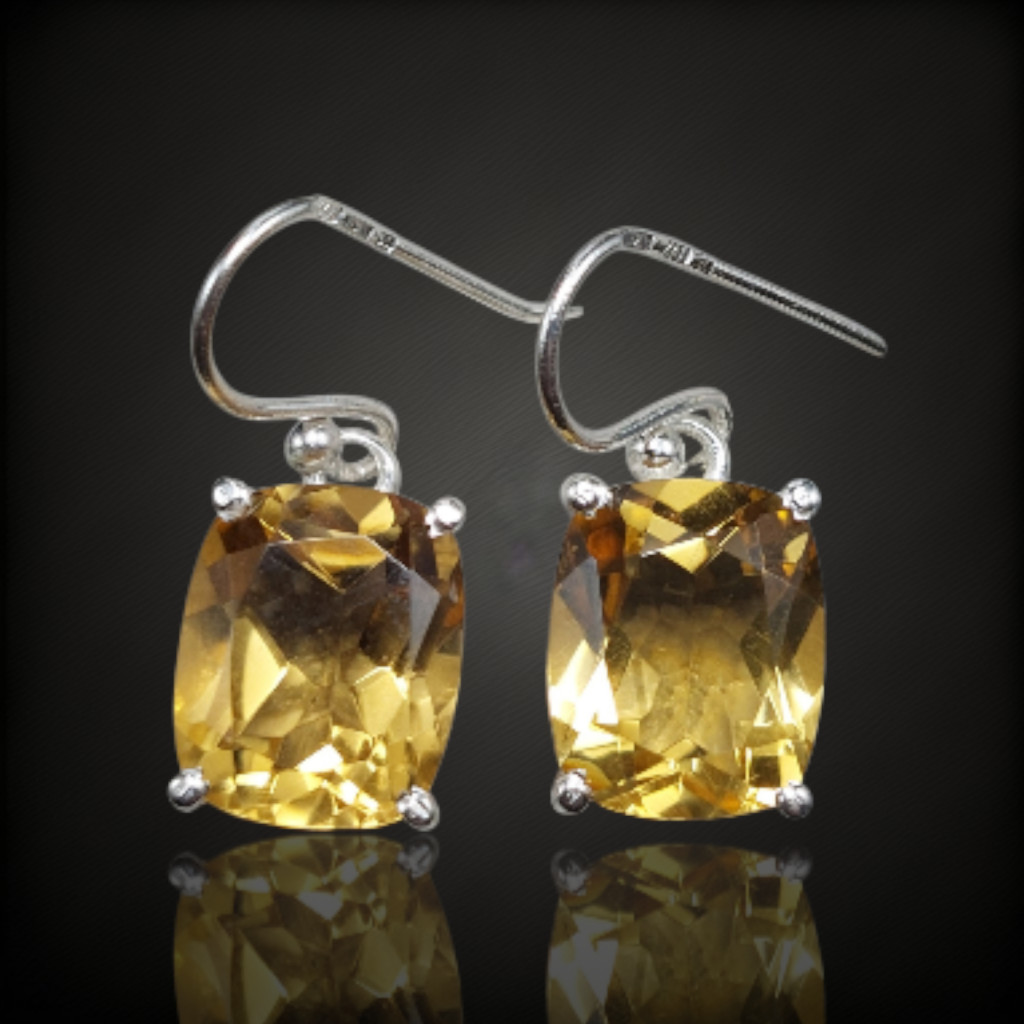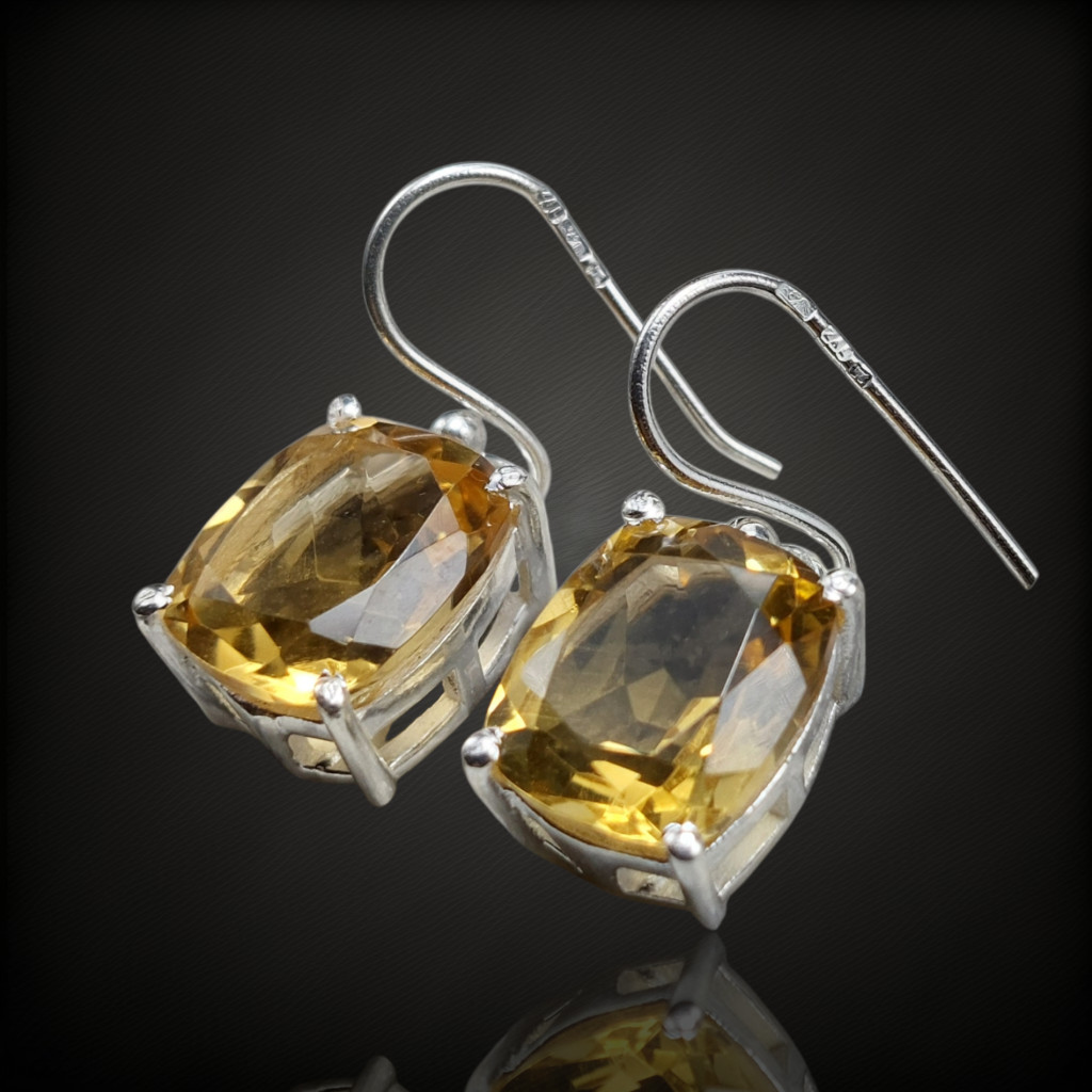 Citrin köves lógós fazonú ezüst fülbevaló.