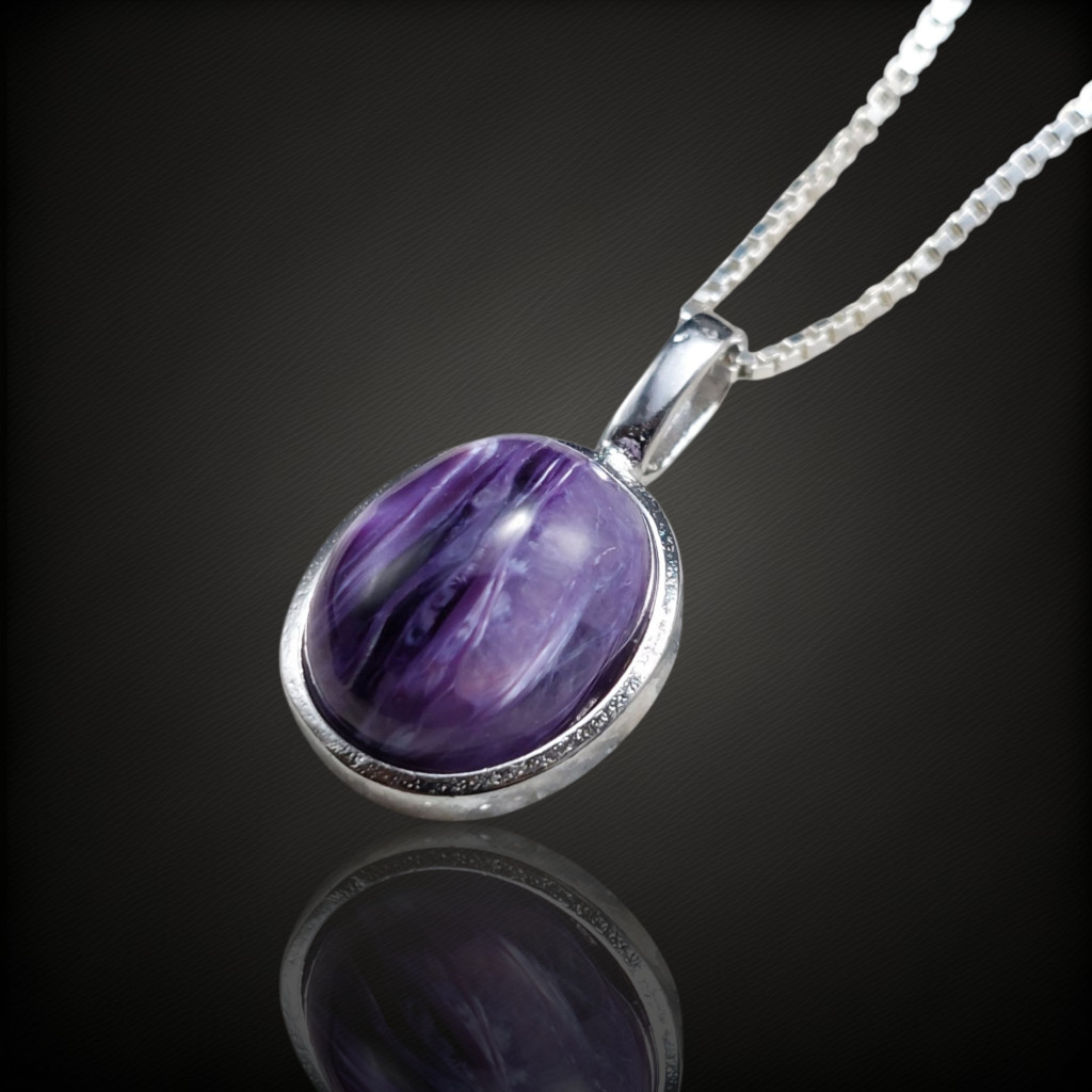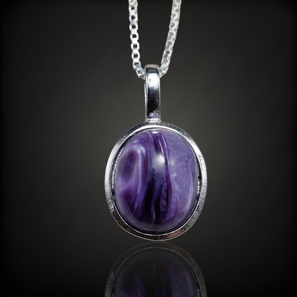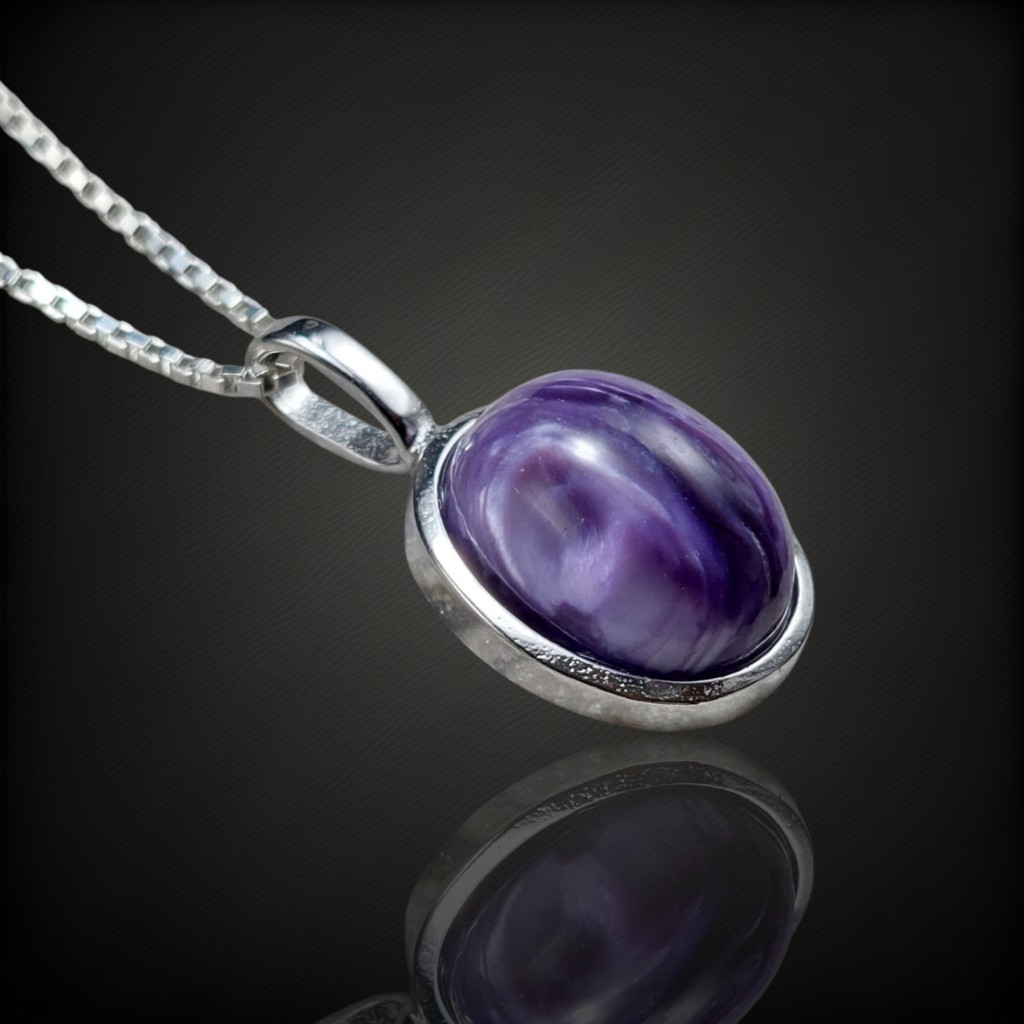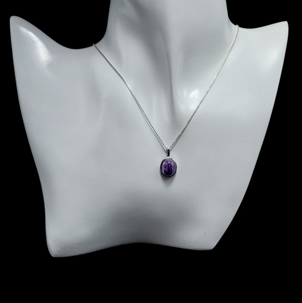 Csaroit köves ezüstmedálA medál nagysága bújtatóval együtt: 19mmA kő nagysága: 11x9mm, származási helye: OroszországAz ékszer anyaga 925-ös finomságú ezüst.A kő színe élőben kis mértékben eltérhet a képen láthatótól.A nyaklánc nem tartozék!