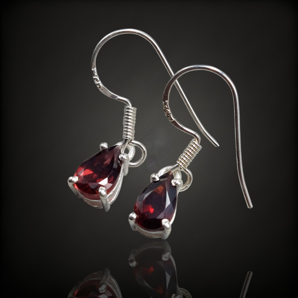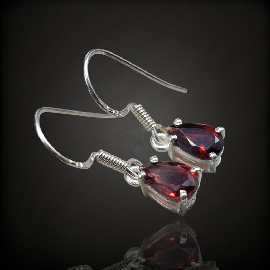 Gránát köves lógós ezüst fülbevaló