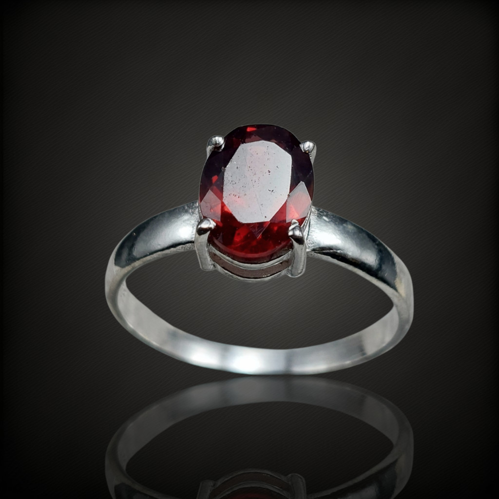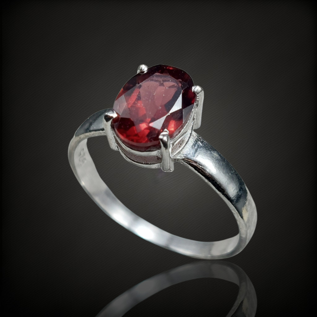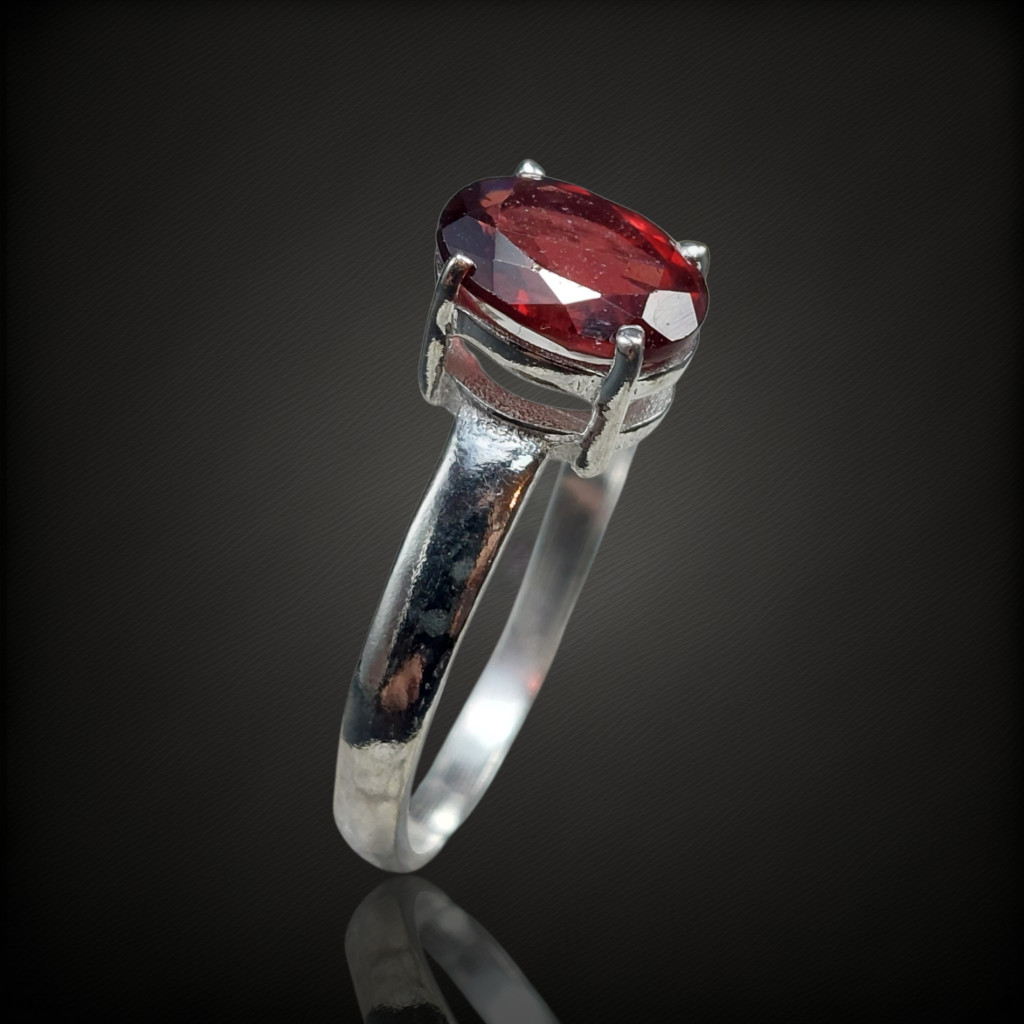 Gránát köves ezüst gyűrű.A kő nagysága: 9x7mm, származási helye: MozambikAz ékszer anyaga 925-ös finomságú ezüstA kő színe élőben kis mértékben eltérhet a képen láthatótól.A megfelelő méret kiválasztásában a gyűrűmérettáblázatunk segít.