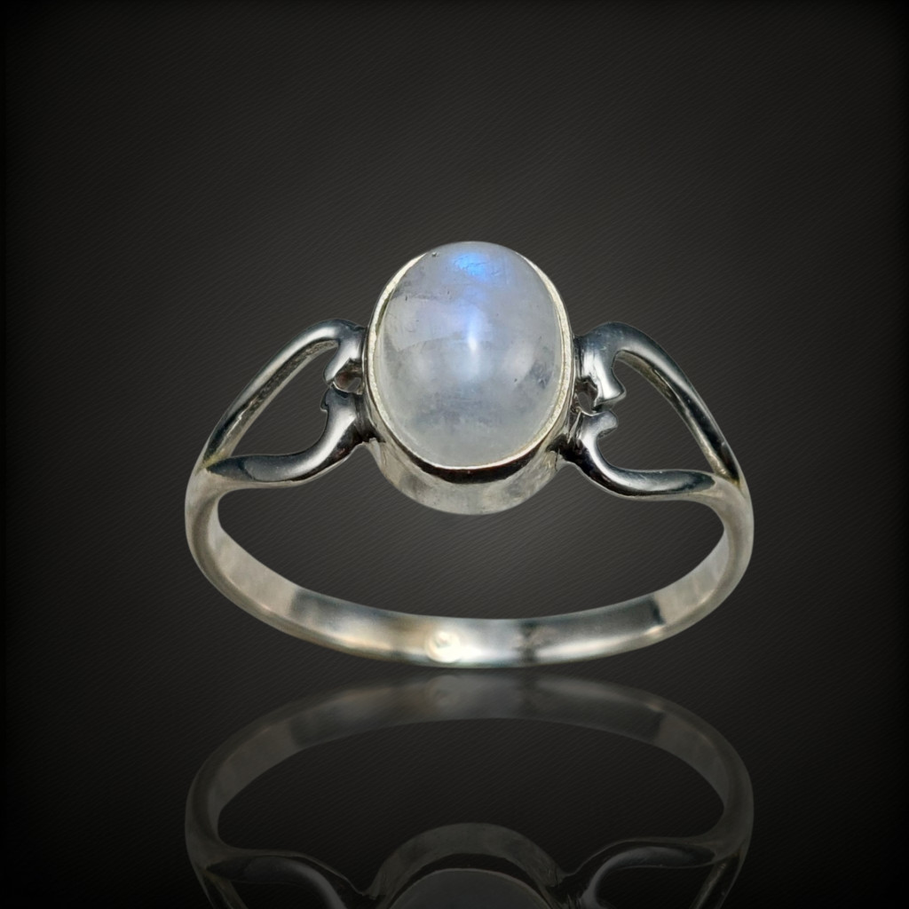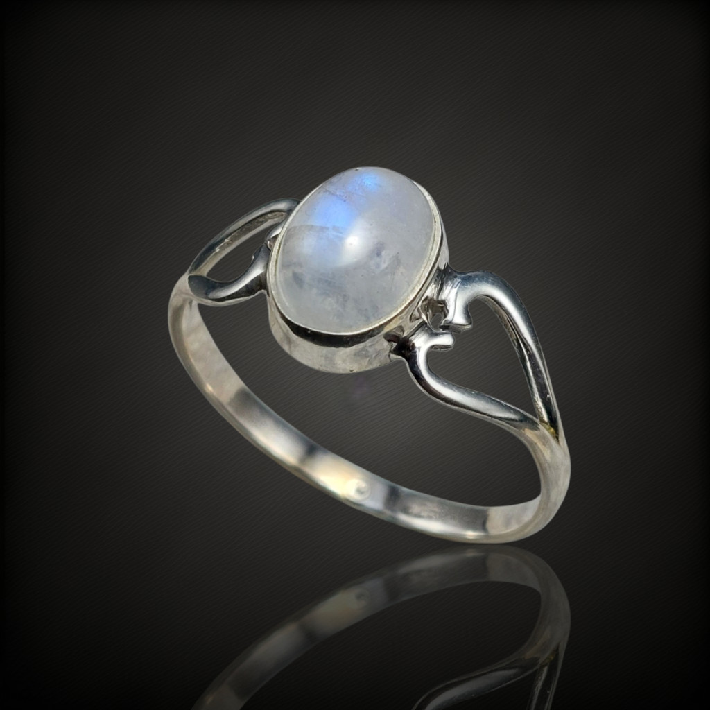 Szivárvány holdköves ezüst gyűrű.A kő nagysága: 8x6mm, származási helye: Srí lankaAz ékszer anyaga 925-ös finomságú ezüst.A kő színe és mintázata élőben kis mértékben eltérhet a képen láthatótól.A megfelelő méret kiválasztásában a gyűrűmérettáblázatunk segít