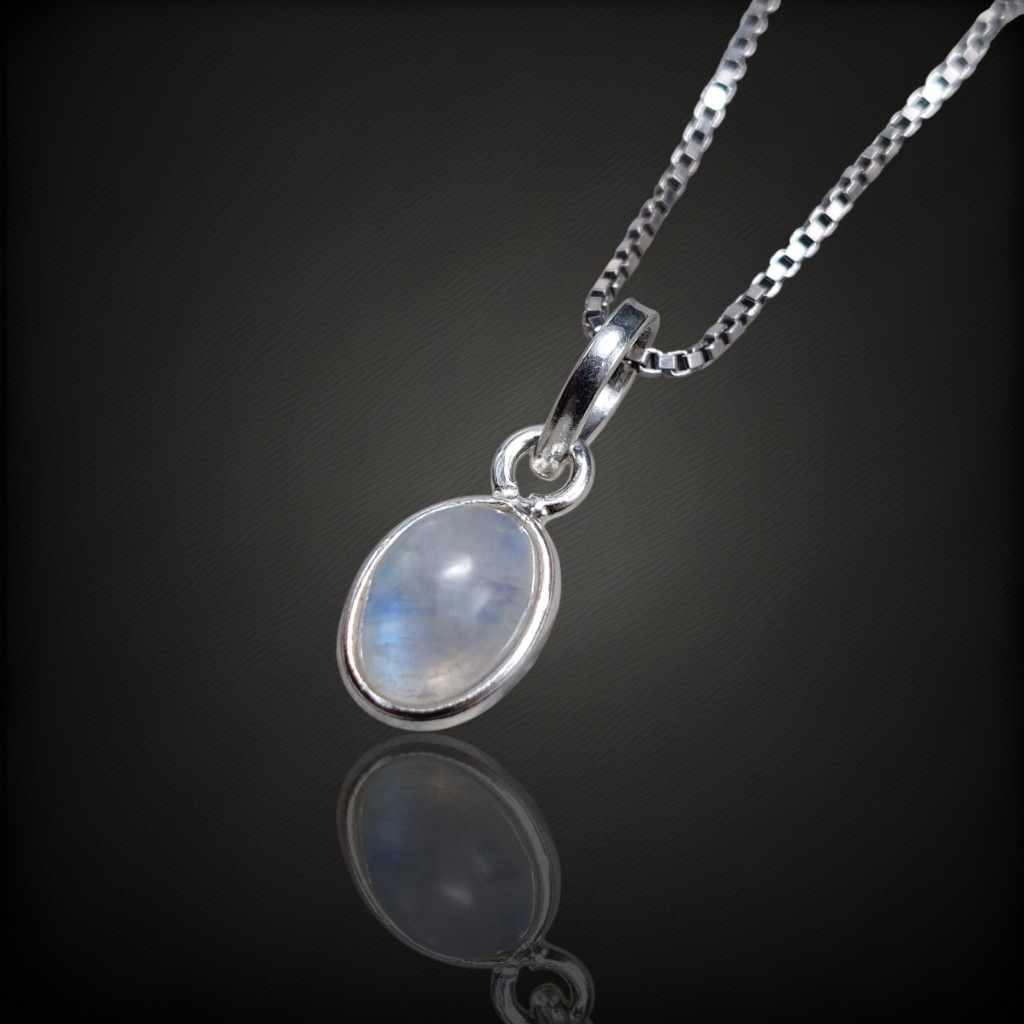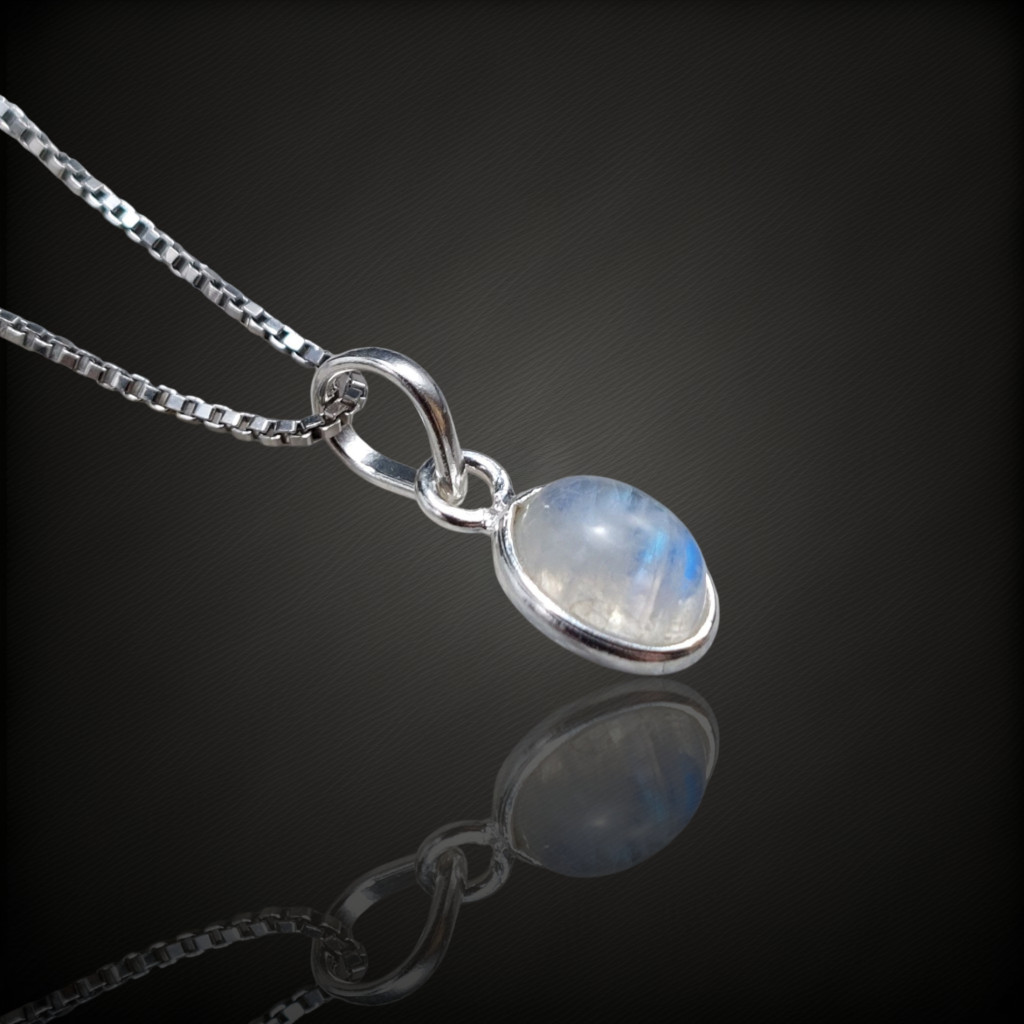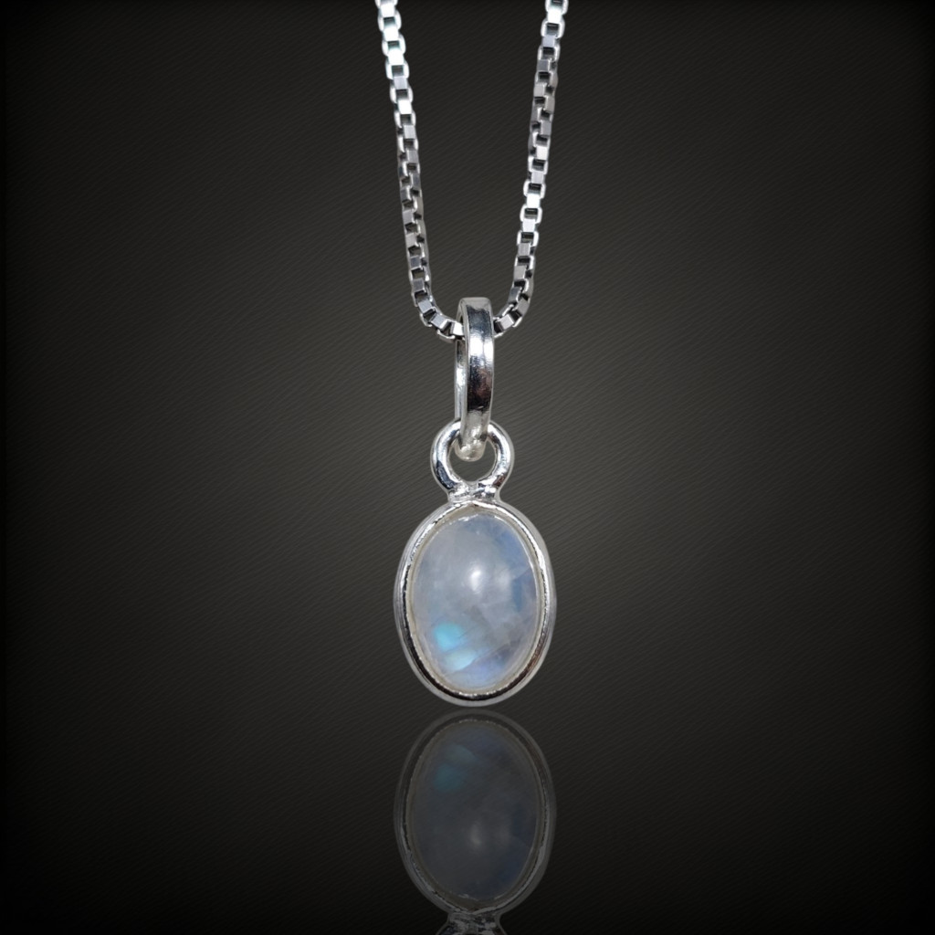 Szivárvány holdköves ezüstmedálA medál nagysága bújtatóval együtt: 15mmA kő nagysága: 7x5mm, származási helye: Srí LankaAz ékszer anyaga 925-ös finomságú ezüst.A kő színe élőben kis mértékben eltérhet a képen láthatótól.A nyaklánc nem tartozék!