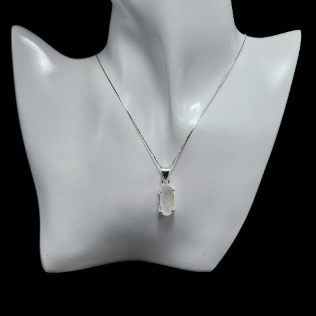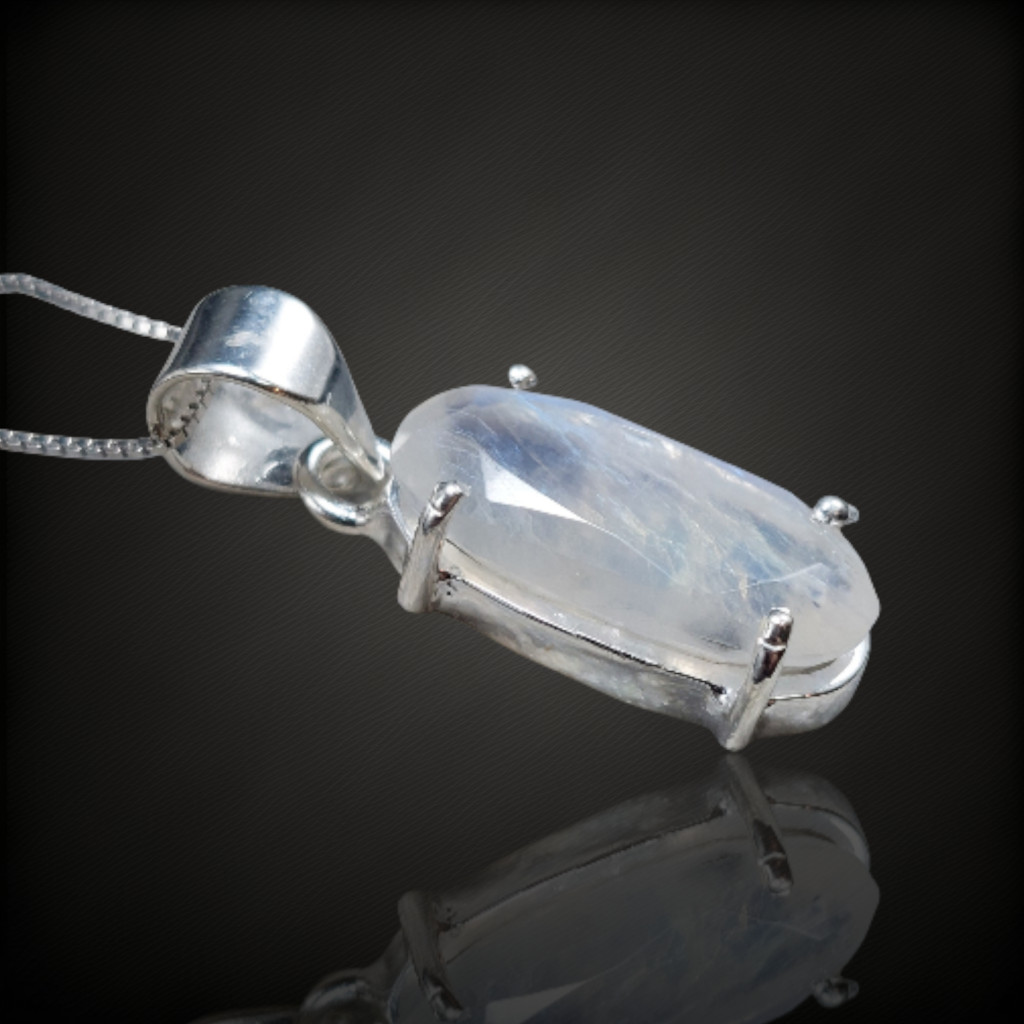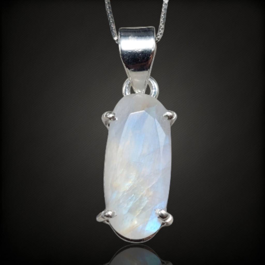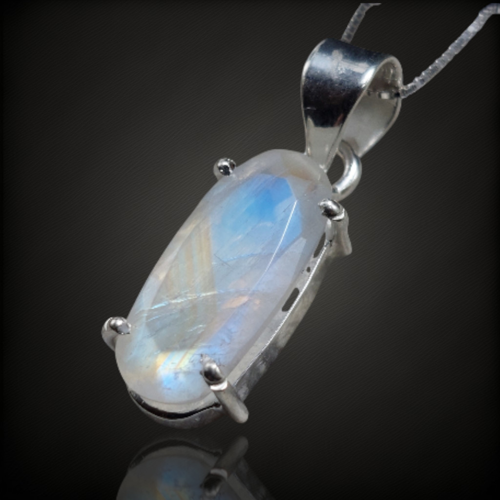 PRÉMIUM MINŐSÉGŰ fazettált csiszolású szivárvány holdköves ezüst medál.