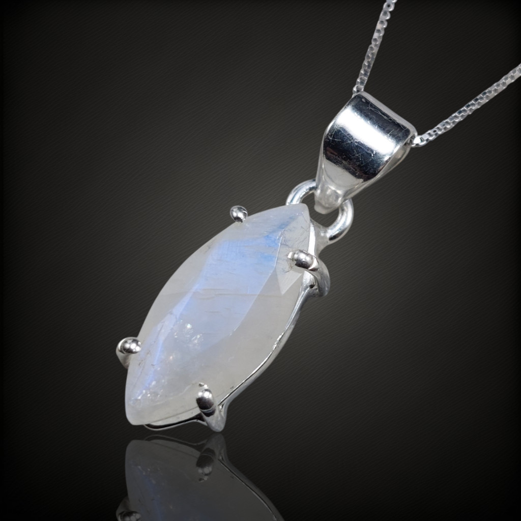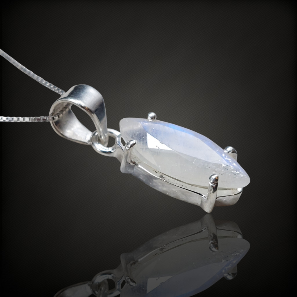 PRÉMIUM MINŐSÉGŰ fazettált csiszolású szivárvány holdköves ezüst medál.