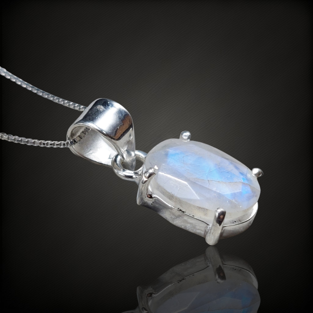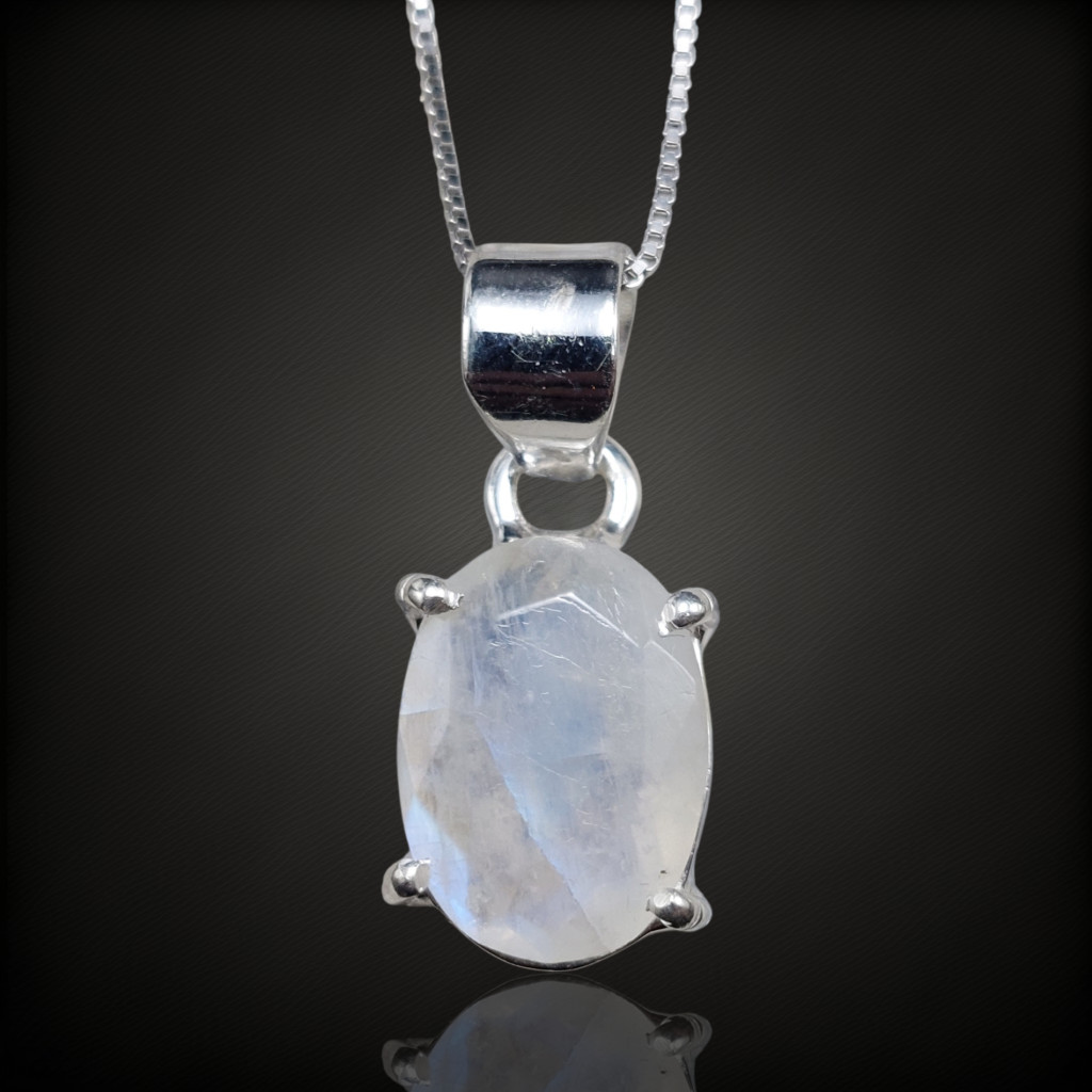 PRÉMIUM MINŐSÉGŰ fazettált csiszolású szivárvány holdköves ezüst medál.