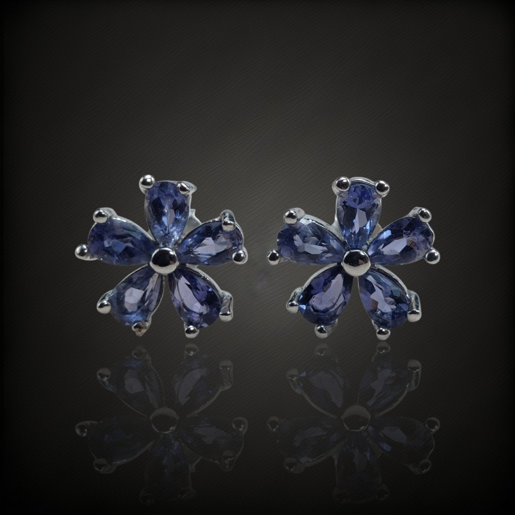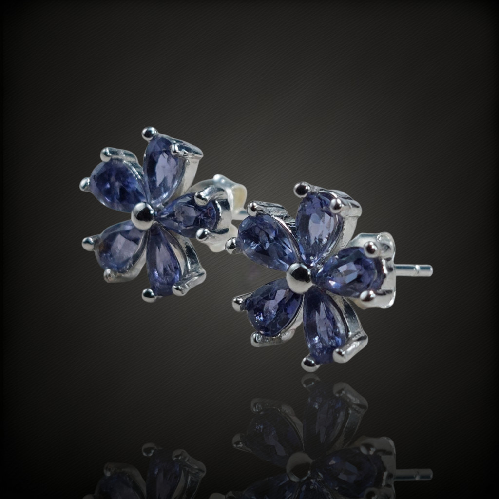 Iolit köves beszúrós fazonú ezüst fülbevaló.