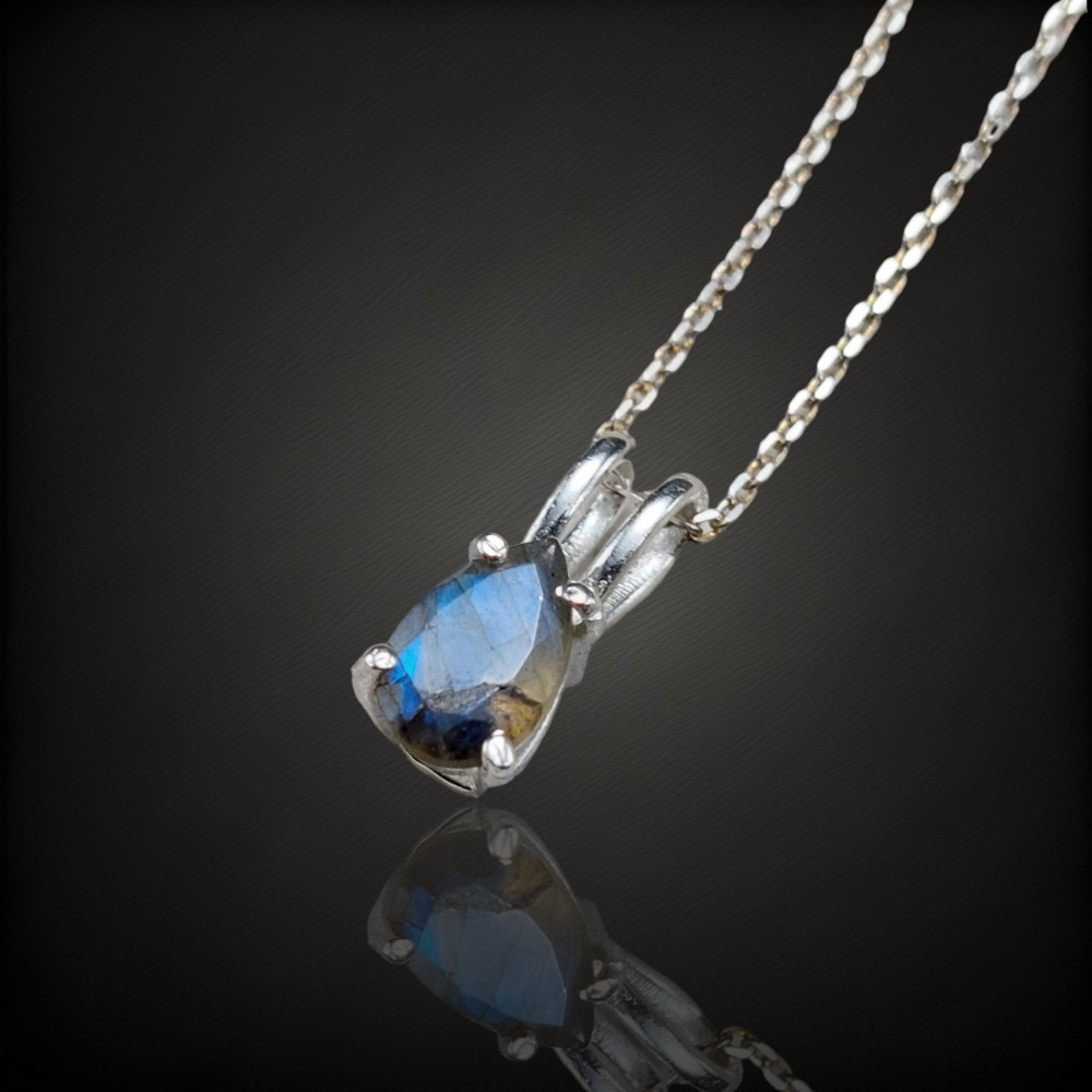 Labradorit köves ezüst medál.A medál nagysága bújtatóval együtt 13mm.A kő származási helye: MadagaszkárAz ékszer anyaga 925-ös finomságú ezüst.A kő színe élőben kis mértékben eltérhet a képen láthatótól.A nyaklánc nem tartozék!