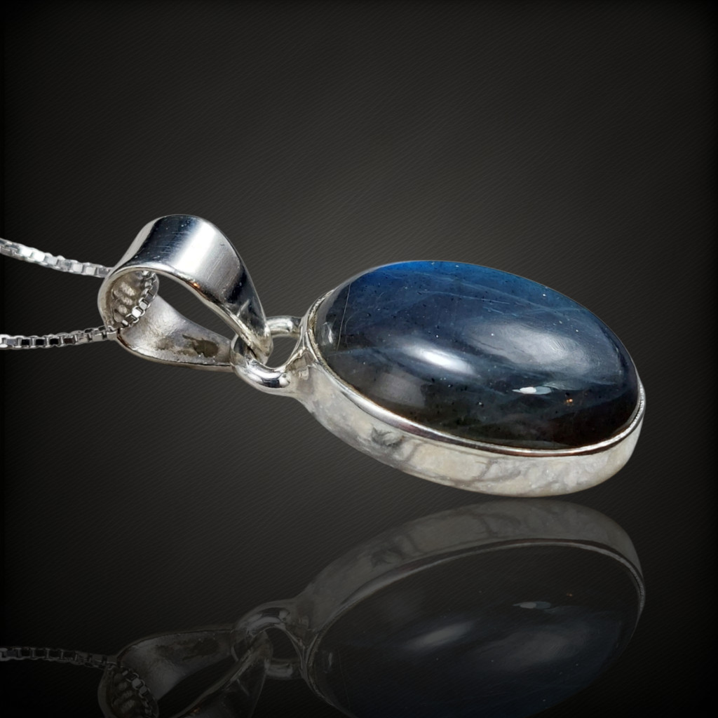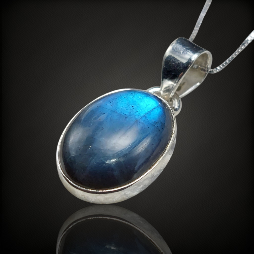 Labradorit köves ezüstmedál.A medál nagysága bújtatóval együtt: 26mmA kő nagysága: 17x13mm, származási helye: MadagaszkárAz ékszer anyaga 925-ös finomságú ezüst.A kő színe élőben kis mértékben eltérhet a képen láthatótól.A nyaklánc nem tartozék!