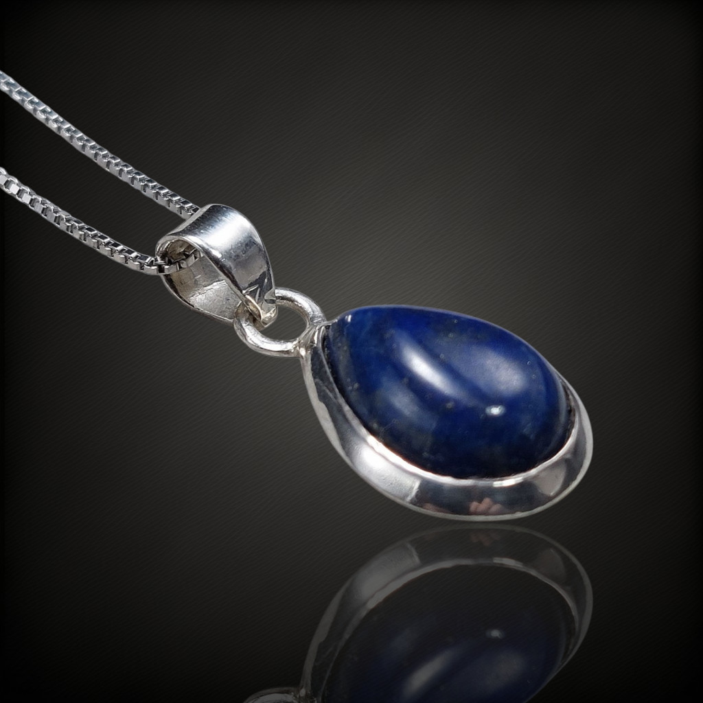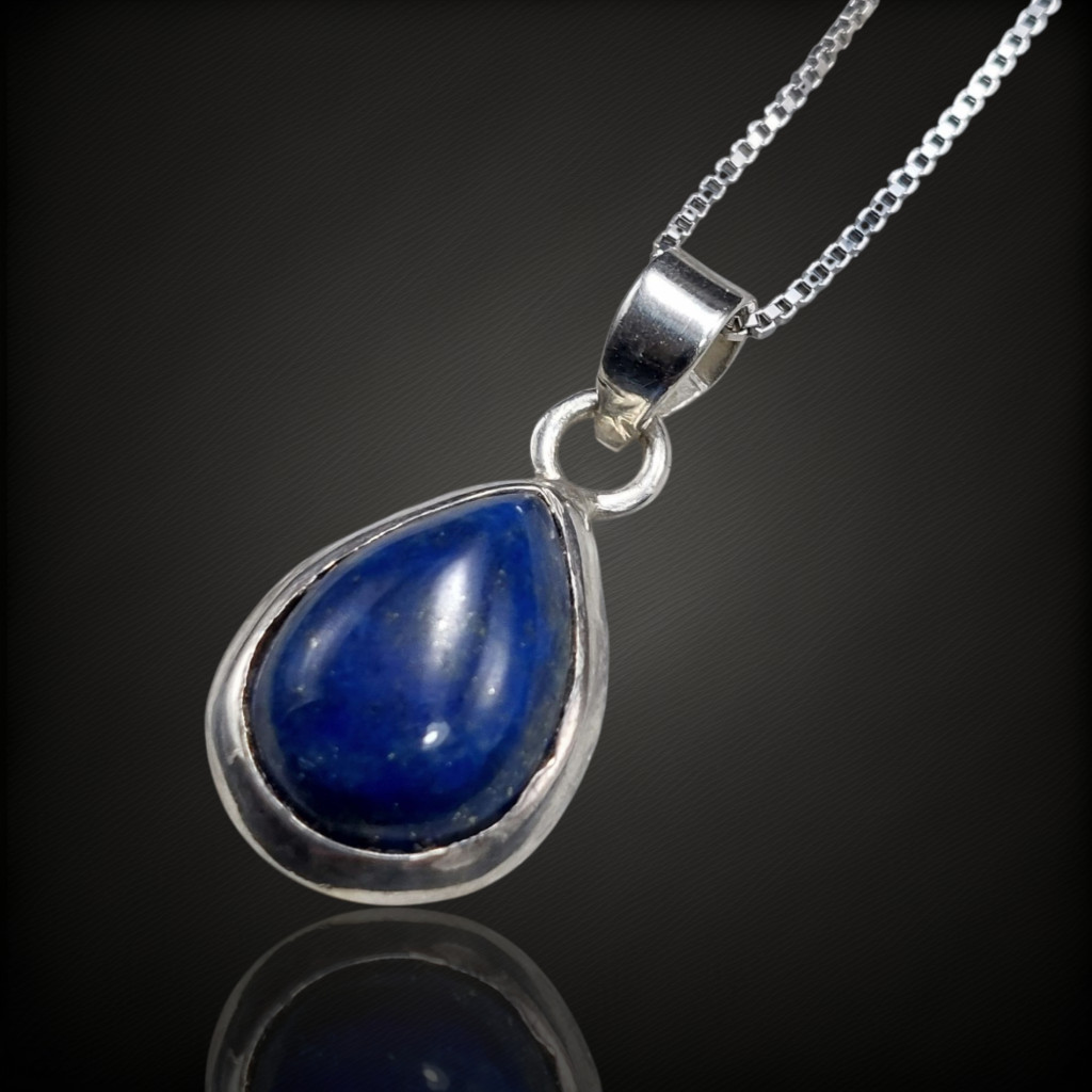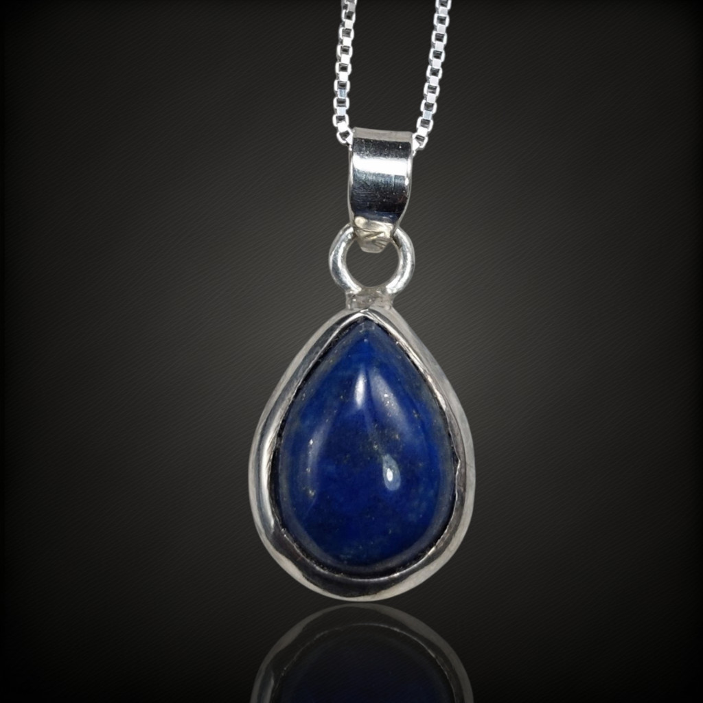 Letisztult, mégis karakteres megjelenésű ezüst medál, amelynek fókuszában egy természetes lapisz lazuli kő áll. A csepp alakú, 22x11 mm-es kő tokos foglalatban helyezkedik el, melyet 925-ös sterling ezüst keret ölel körbe. A mély kék árnyalatot finom aranyszínű piritzárványok teszik élővé, klasszikus, időtálló megjelenést kölcsönözve a darabnak. A csepp forma nőies, elegáns ívet ad az ékszernek, így ideális választás lehet hétköznapi viselethez vagy alkalmakra is.