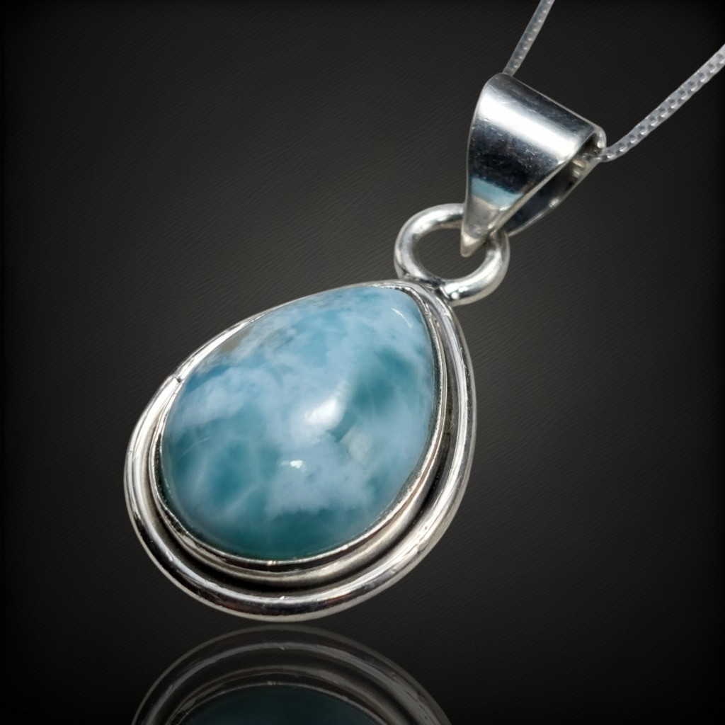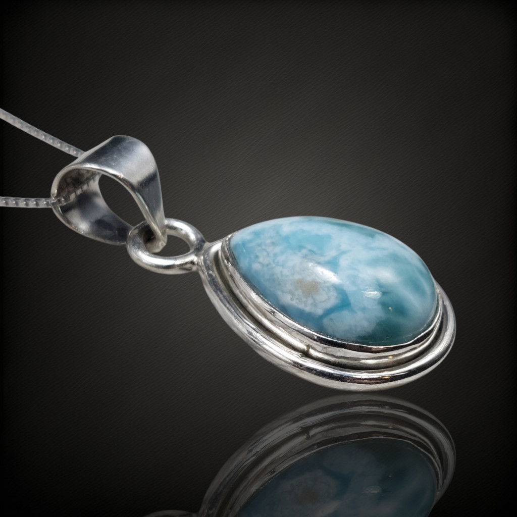 Larimár köves ezüst medál.A medál nagysága bújtatóval együtt: 27mmA kő nagysága: 16x12mm, származási helye: DominikaAz ékszer anyaga 925-ös finomságú ezüst.A kő színe élőben kis mértékben eltérhet a képen láthatótól.A nyaklánc nem tartozék!