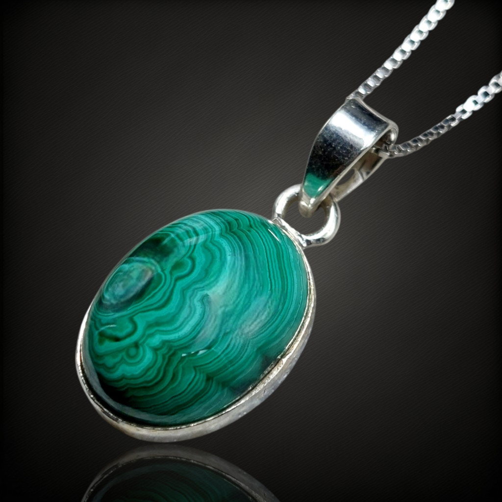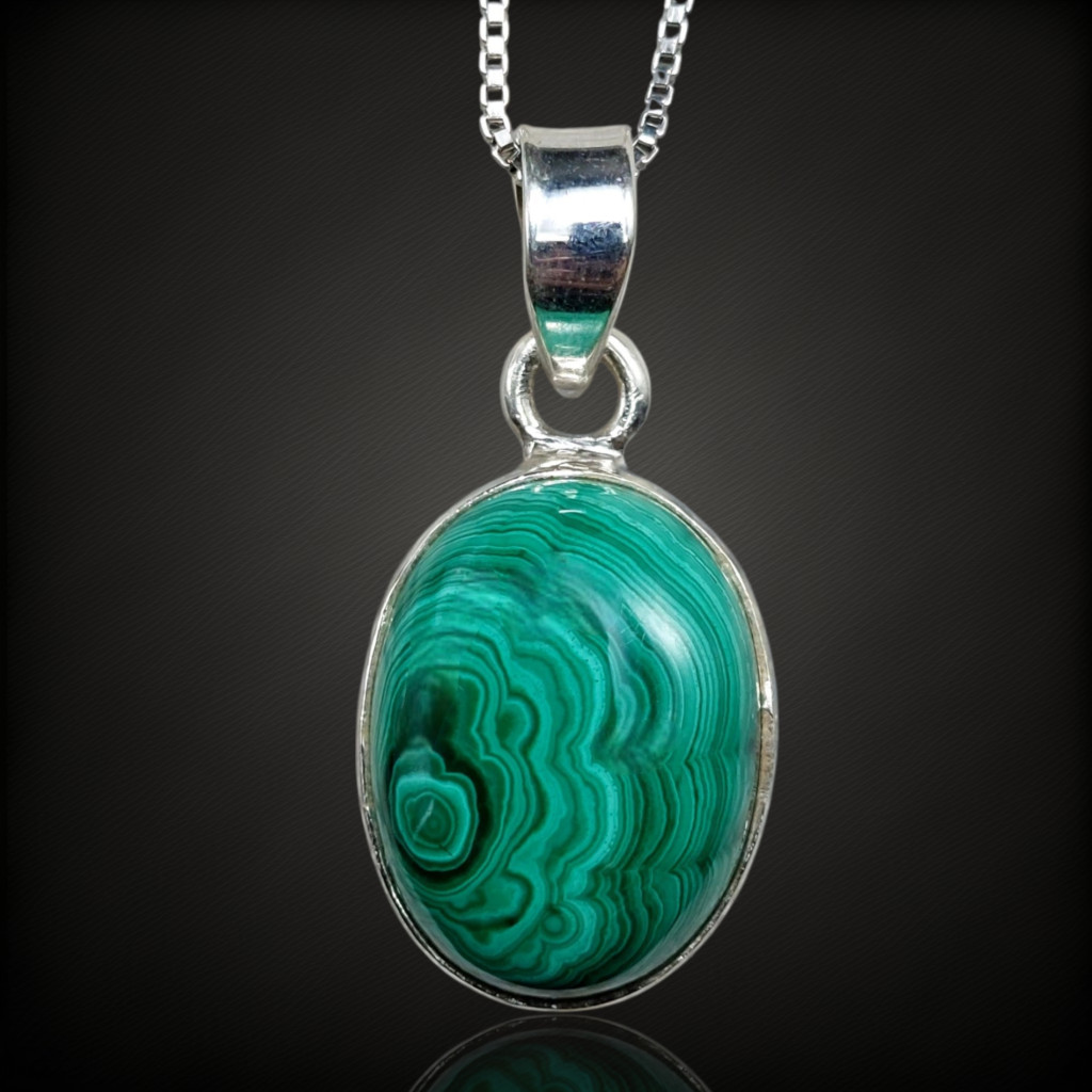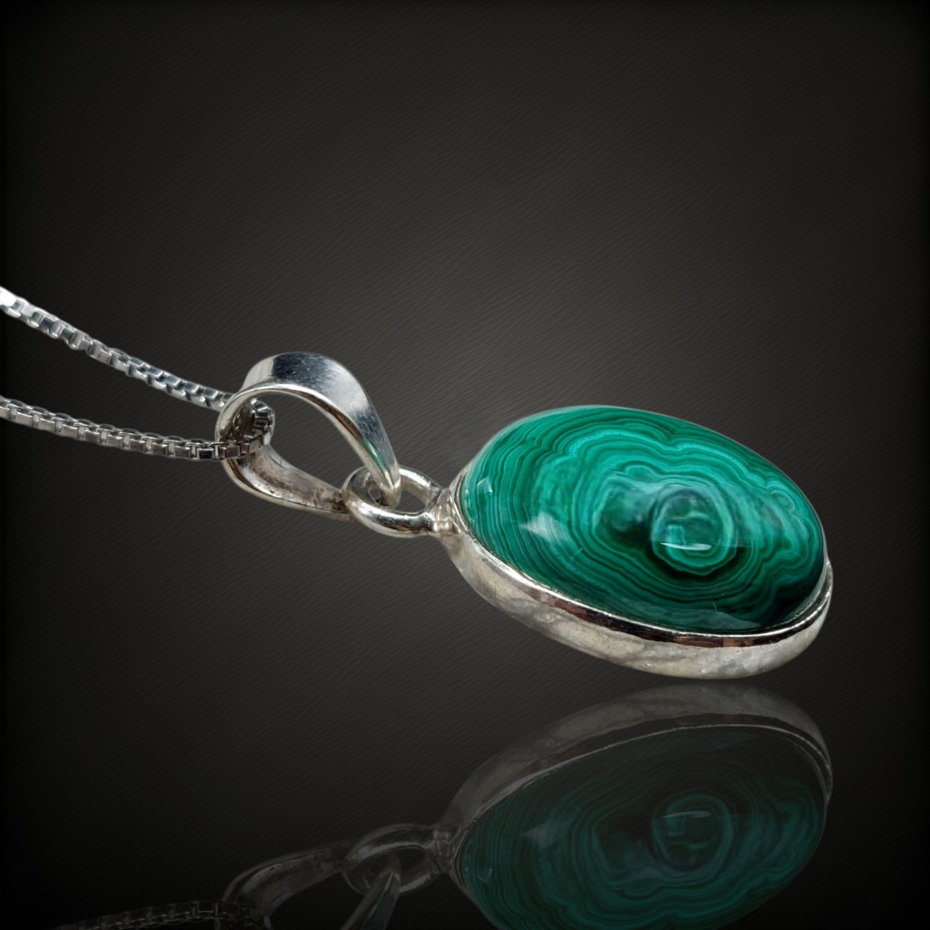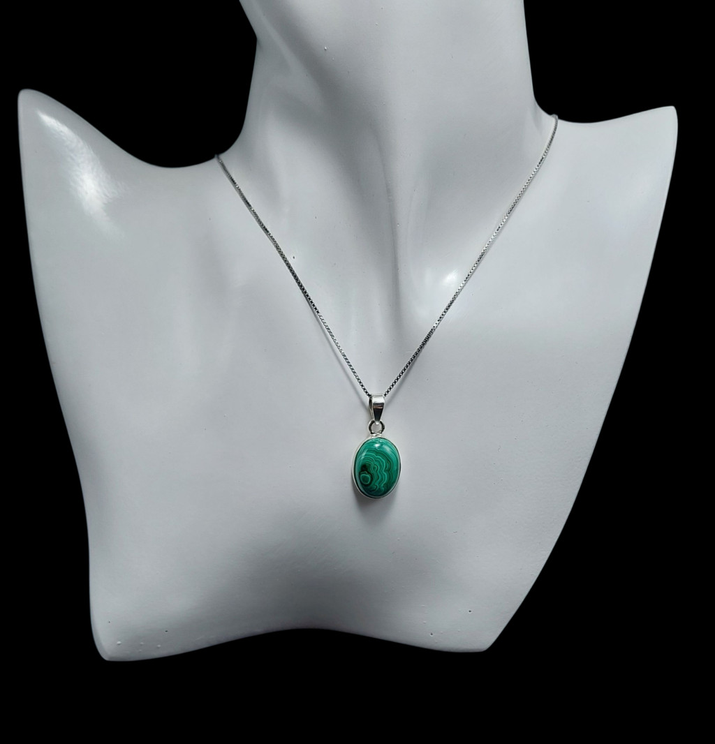 Malachit köves ezüst medálA medál magassága bújtatóval együtt 26mm.A kő nagysága: 16x12mm, származási helye: Kongói Demokratikus KöztársaságAz ékszer anyaga 925-ös finomságú ezüst. A kő színe élőben kis mértékben eltérhet a képen láthatótól!A nyaklánc nem tartozék!