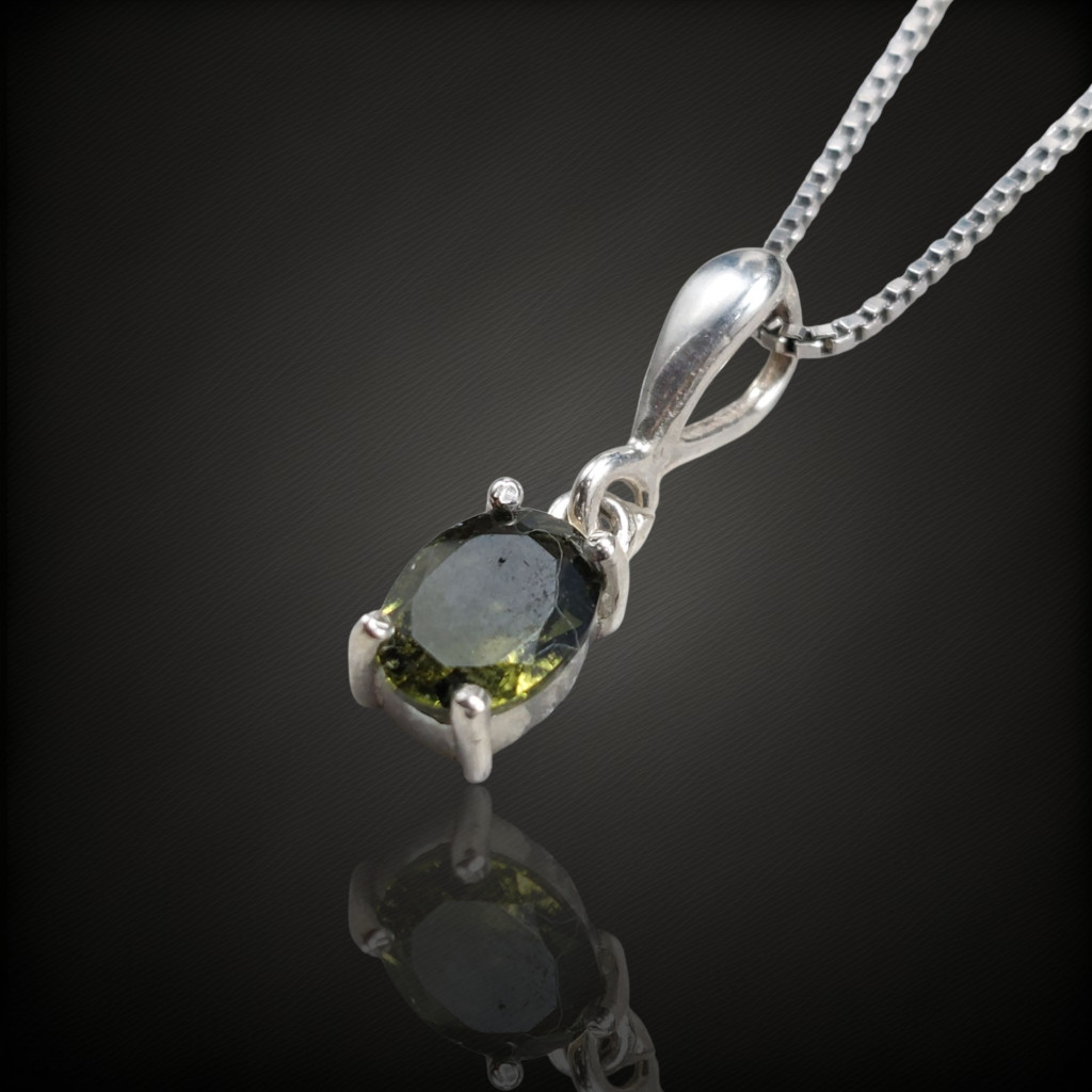 Moldavit köves ezüstmedálA medál nagysága bújtatóval együtt: 18mmA kő nagysága: 7x5mm, származási helye: CsehországAz ékszer anyaga 925-ös finomságú ezüst.A kő színe élőben kis mértékben eltérhet a képen láthatótól.A nyaklánc nem tartozék!
