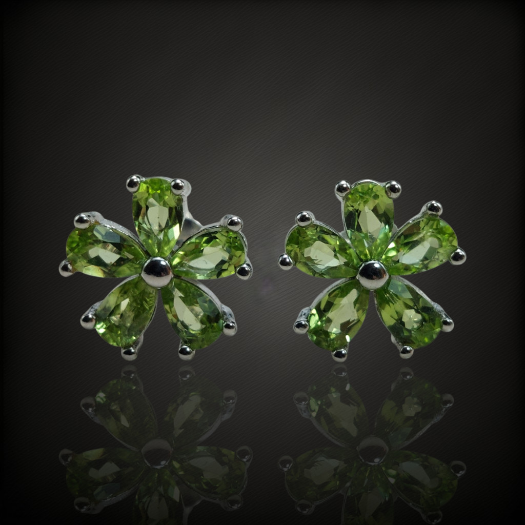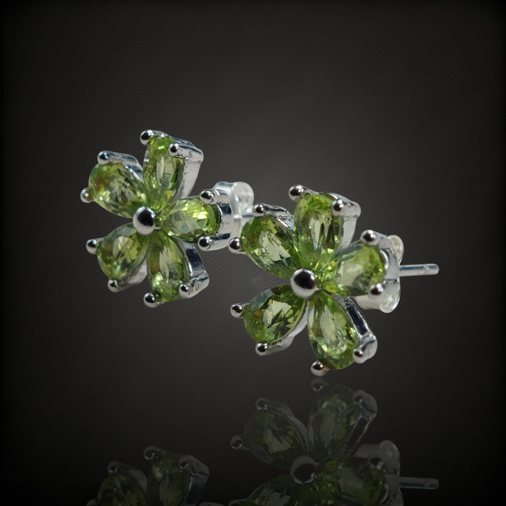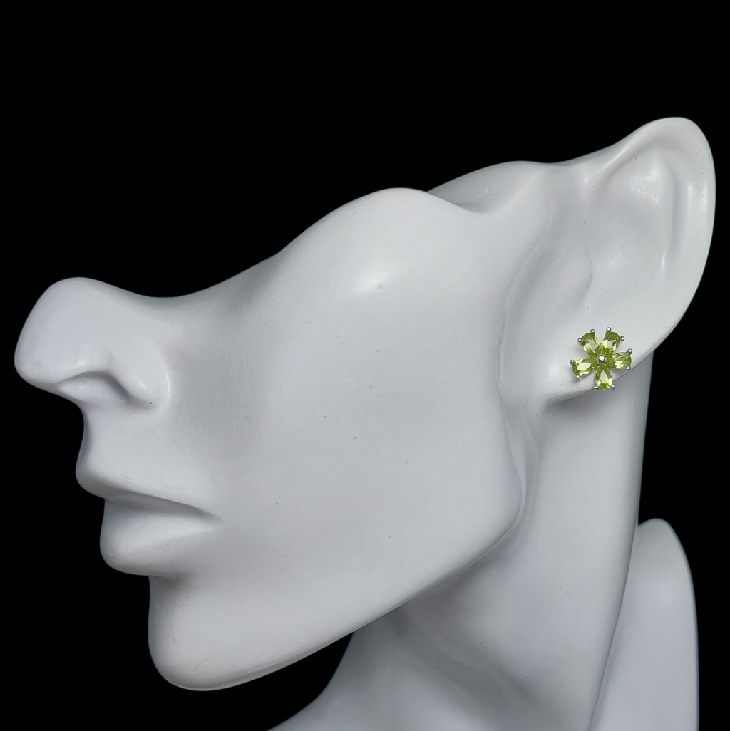 Olivin köves beszúrós fazonú ezüst fülbevaló.