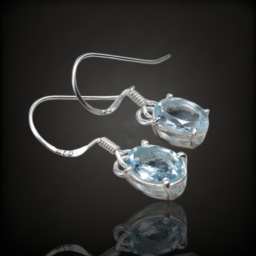 Akvamarin köves lógós ezüst fülbevaló
