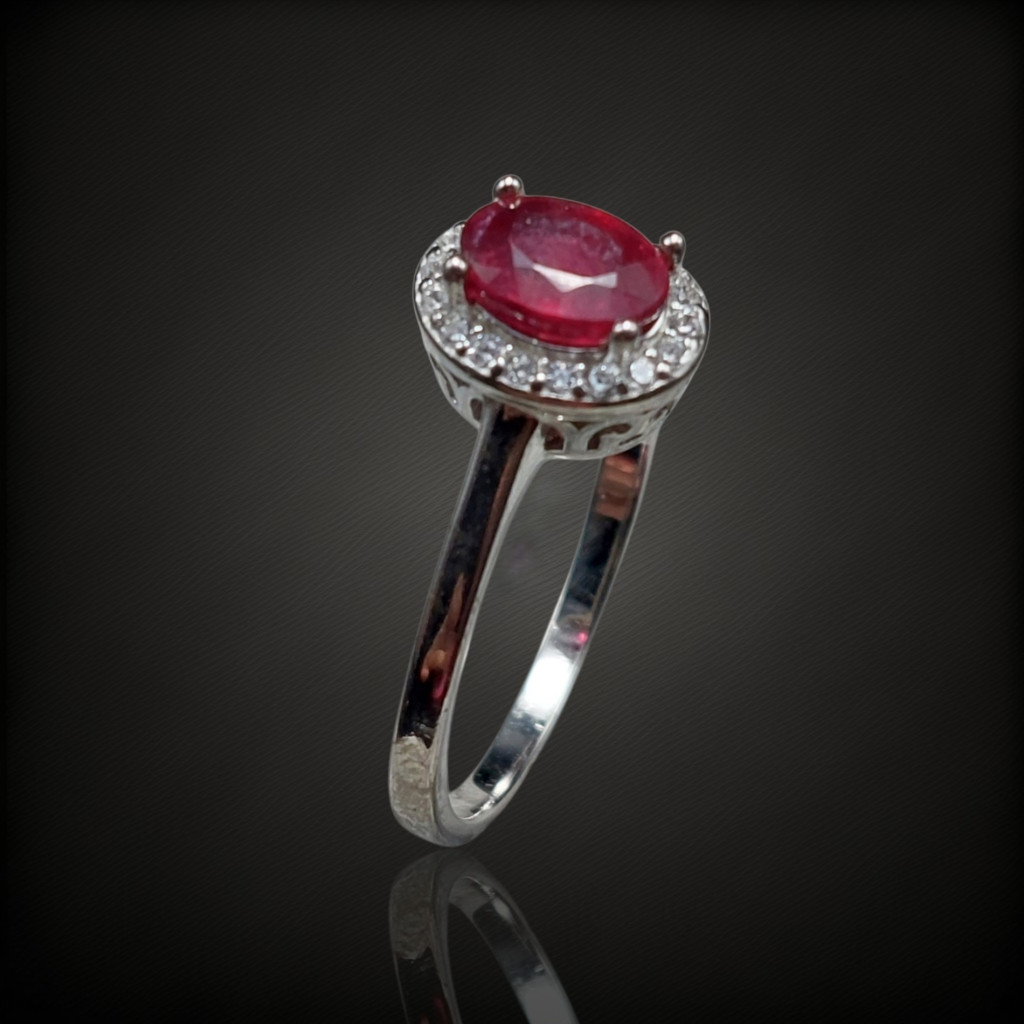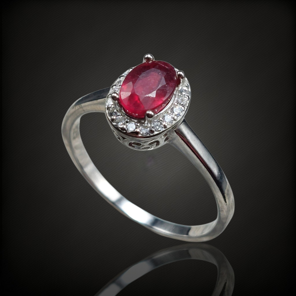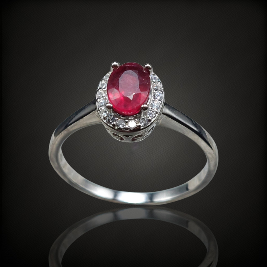 Rubin köves ezüst gyűrű cirkónia díszítéssel