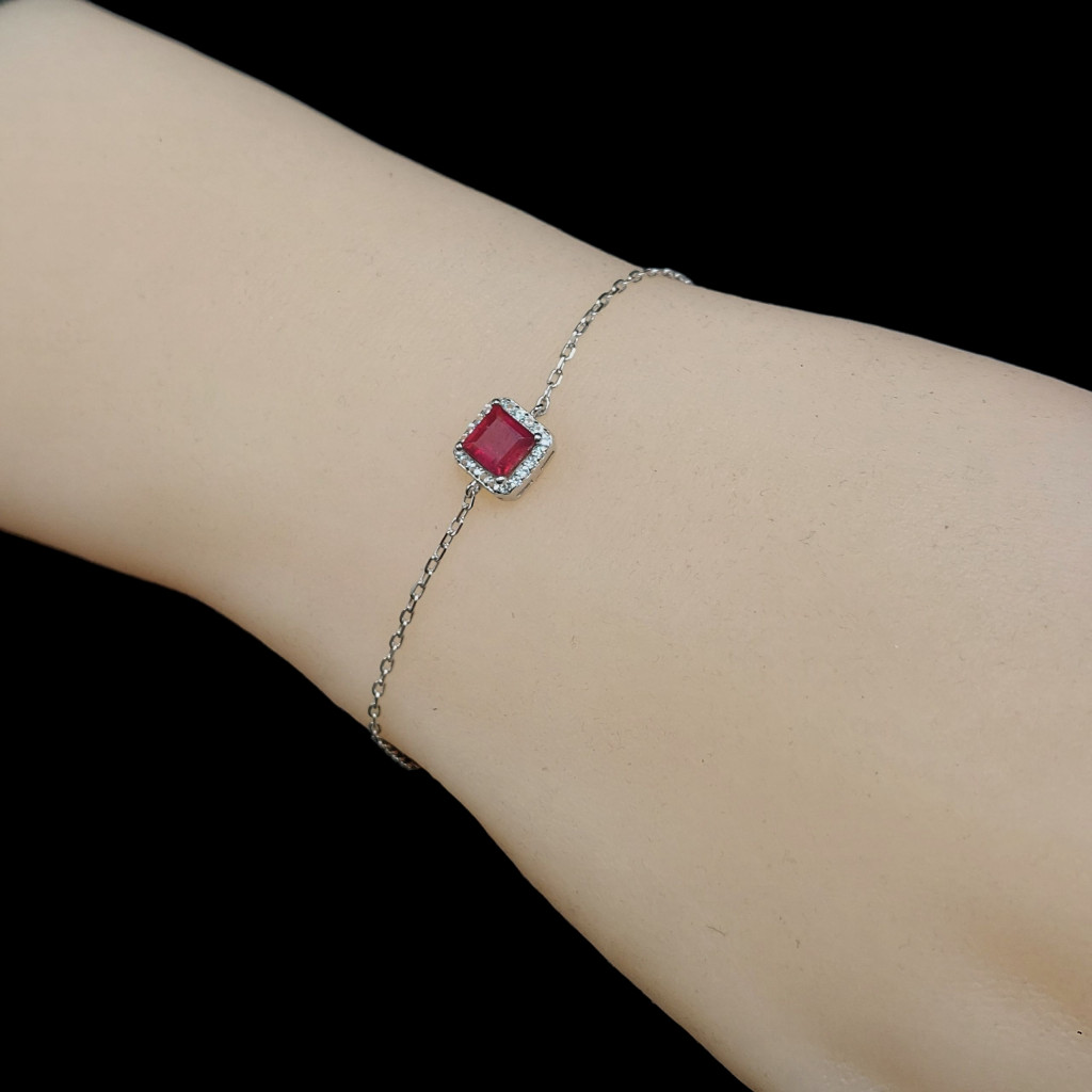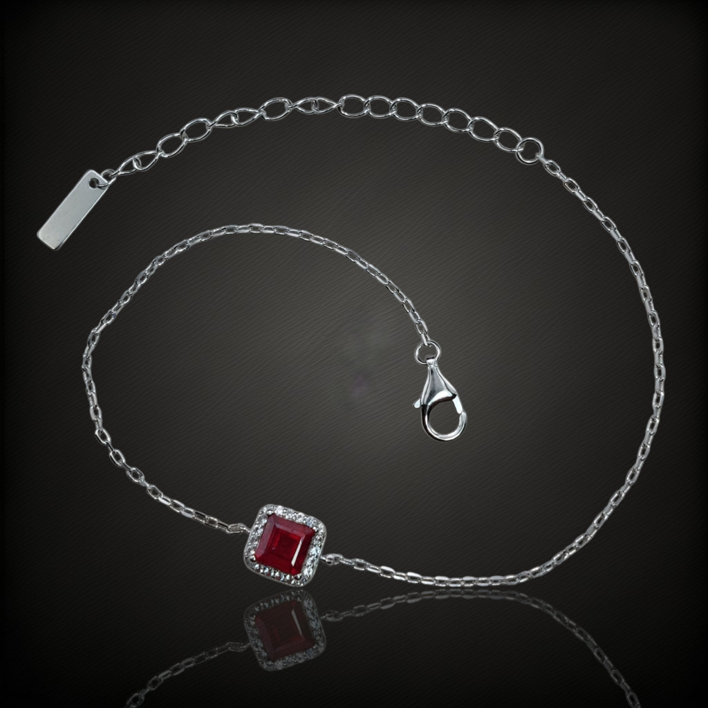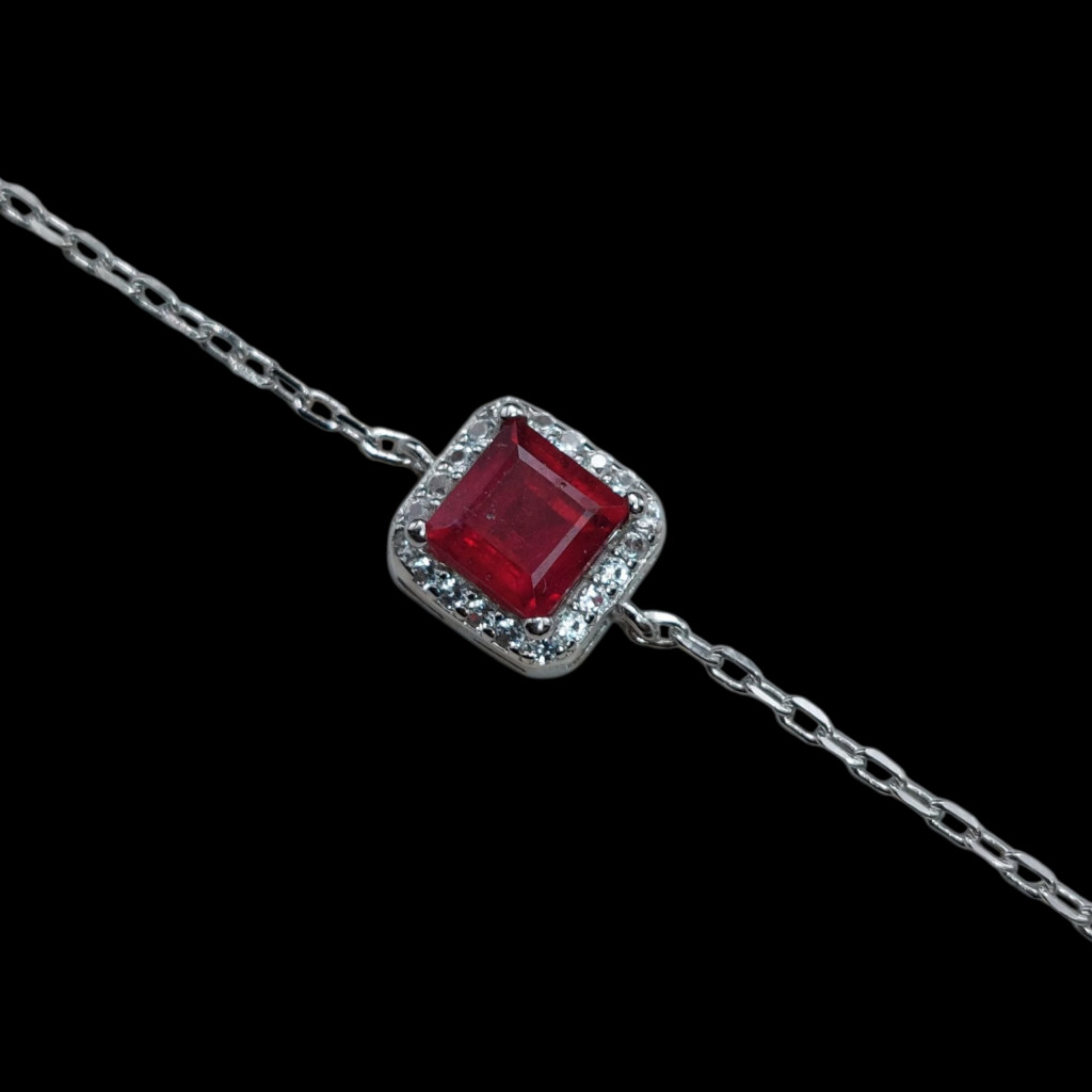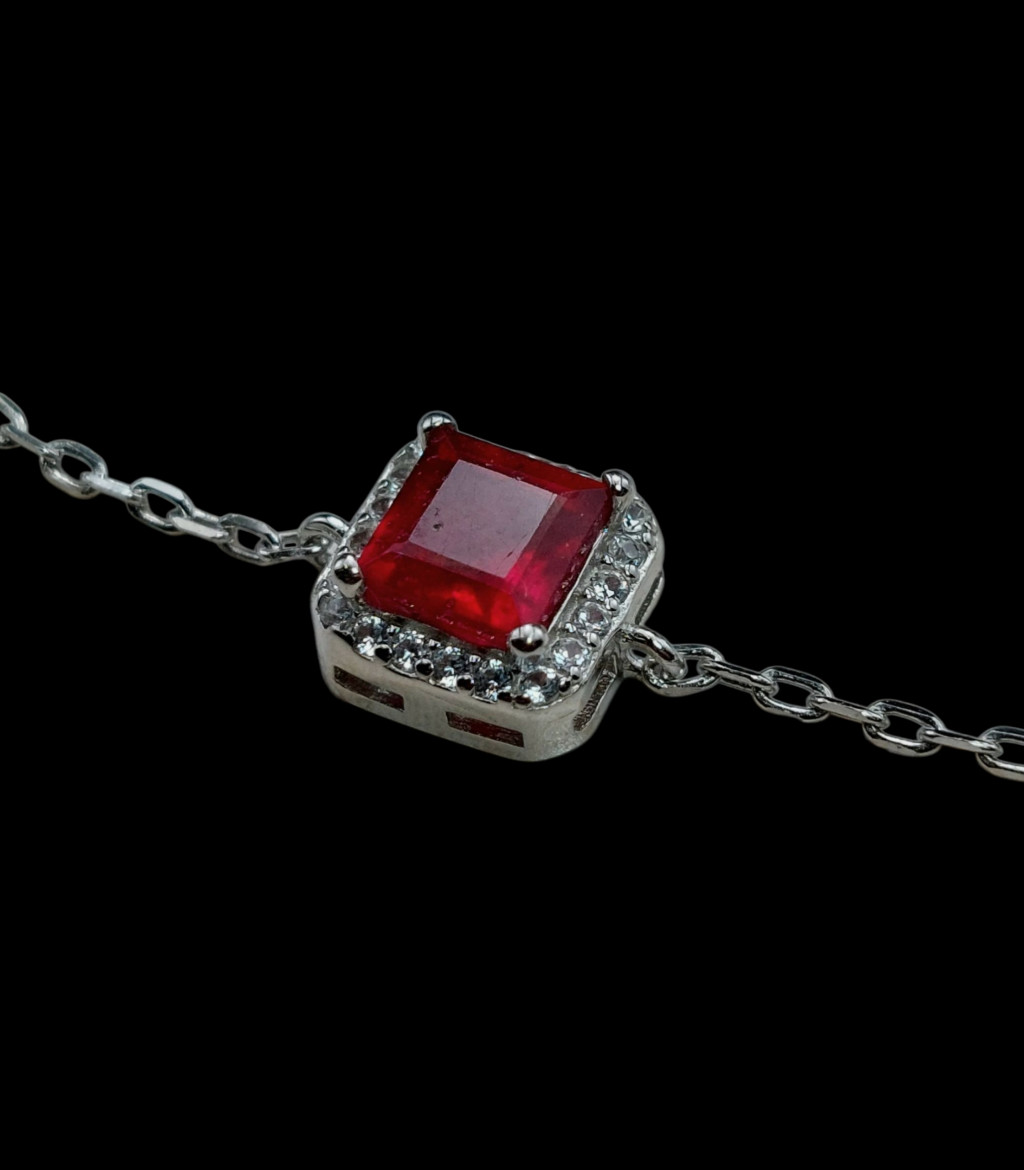 Rubin köves ezüst karkötő cirkónia díszítéssel.