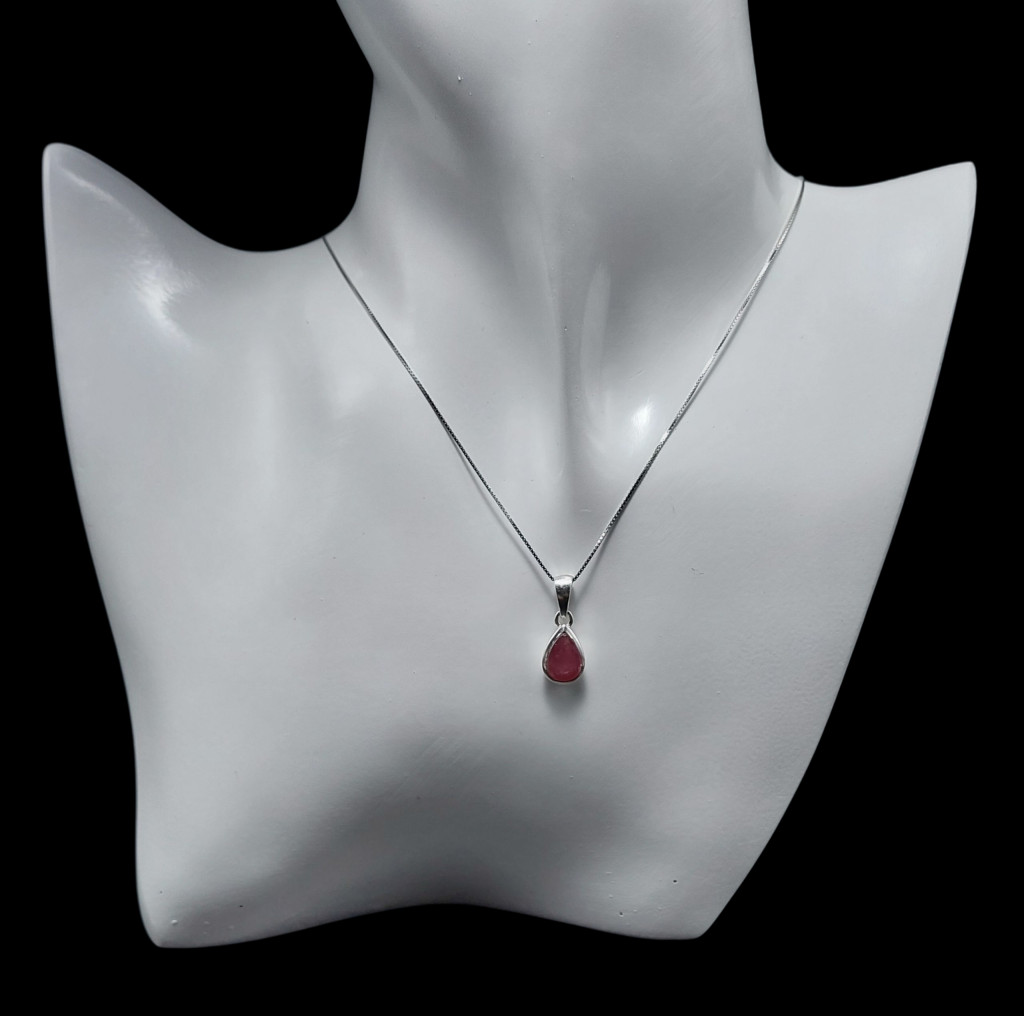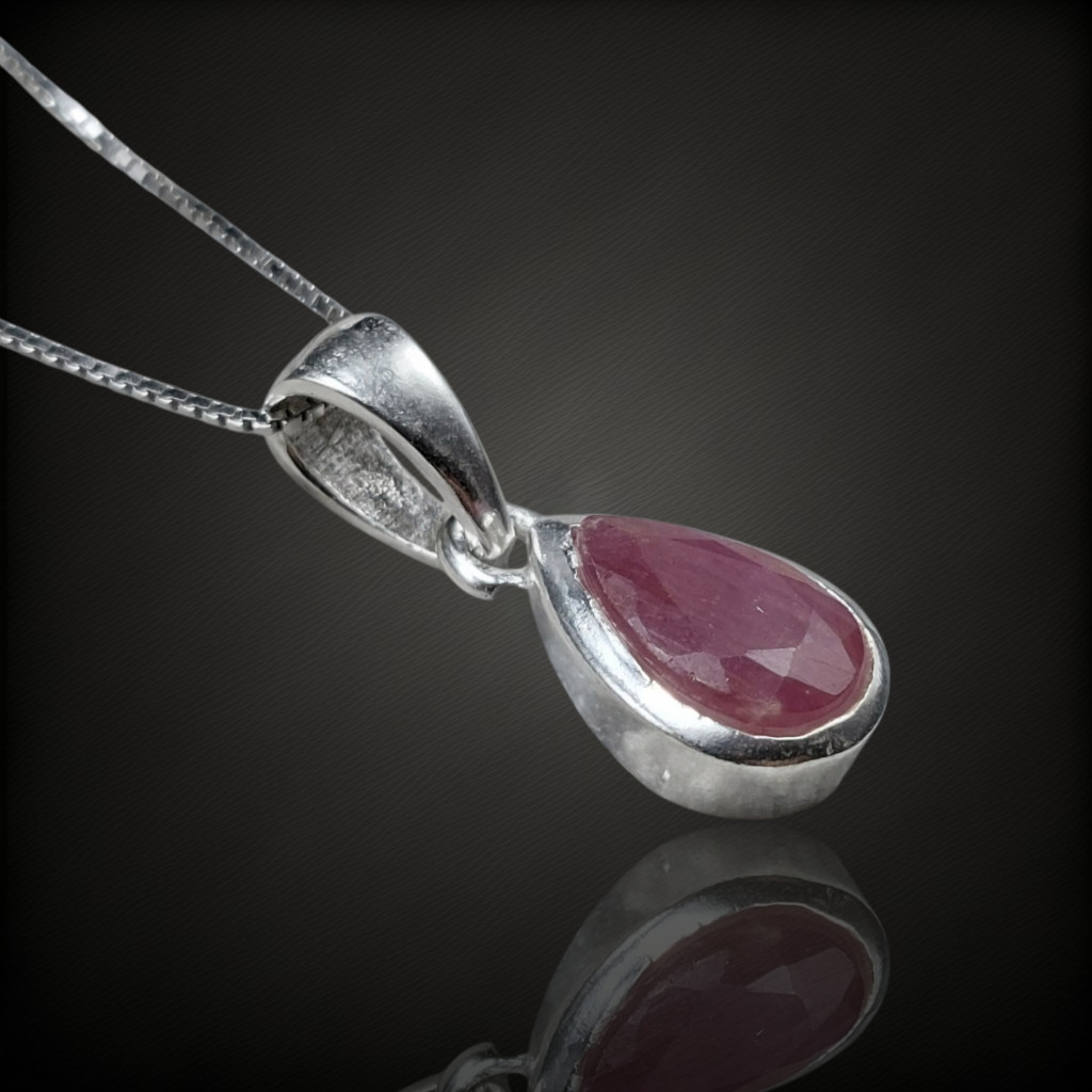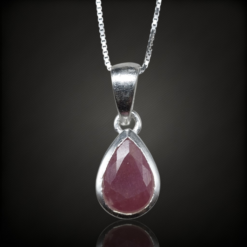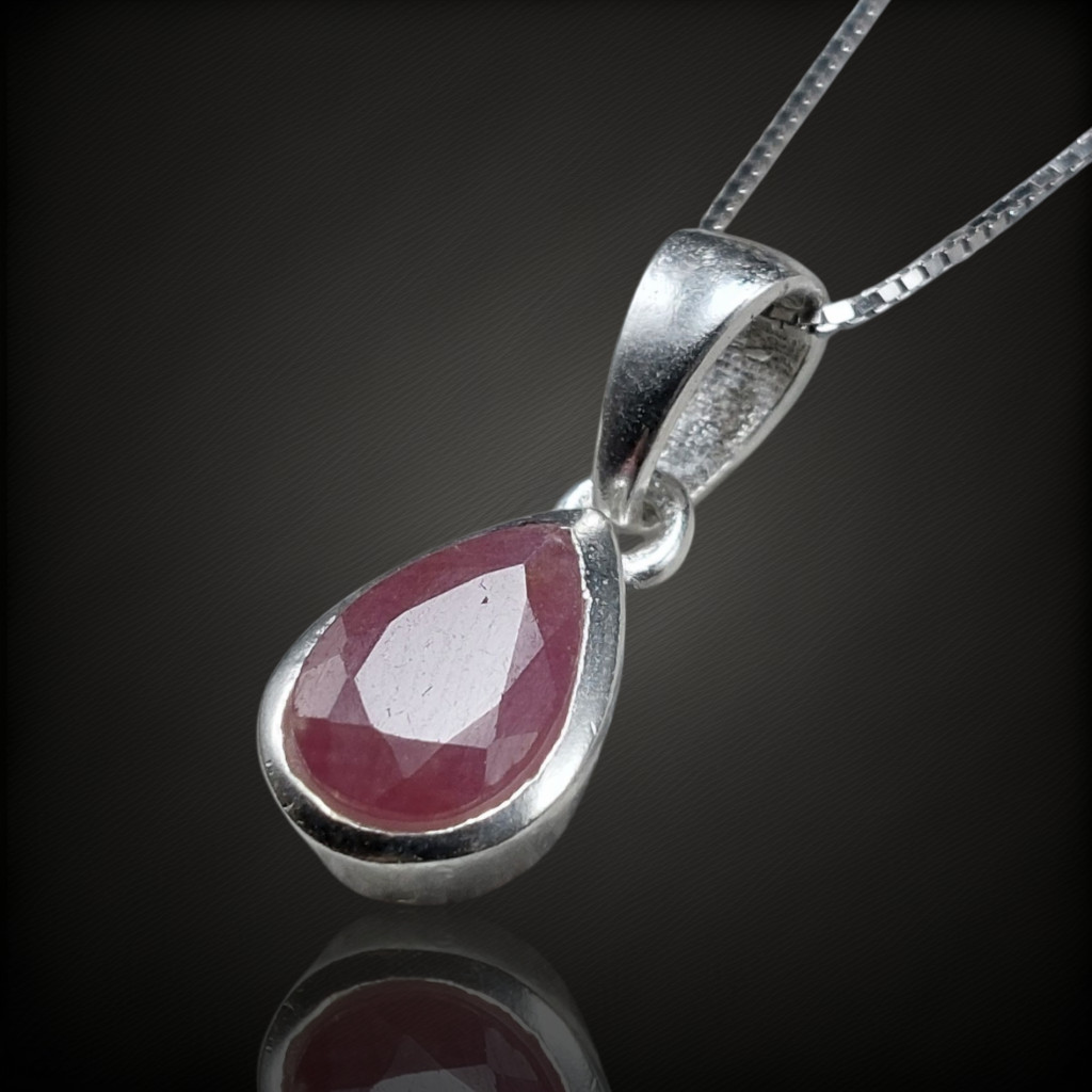 Rubin köves ezüst medál A medál nagysága bújtatóval együtt 19mmA kő nagysága 9x7mm, származási helye: MozambikAz ékszer anyaga 925-ös finomságú ezüst.A kő színe élőben kis mértékben eltérhet a képen láthatótól.a nyaklánc nem tartozék!