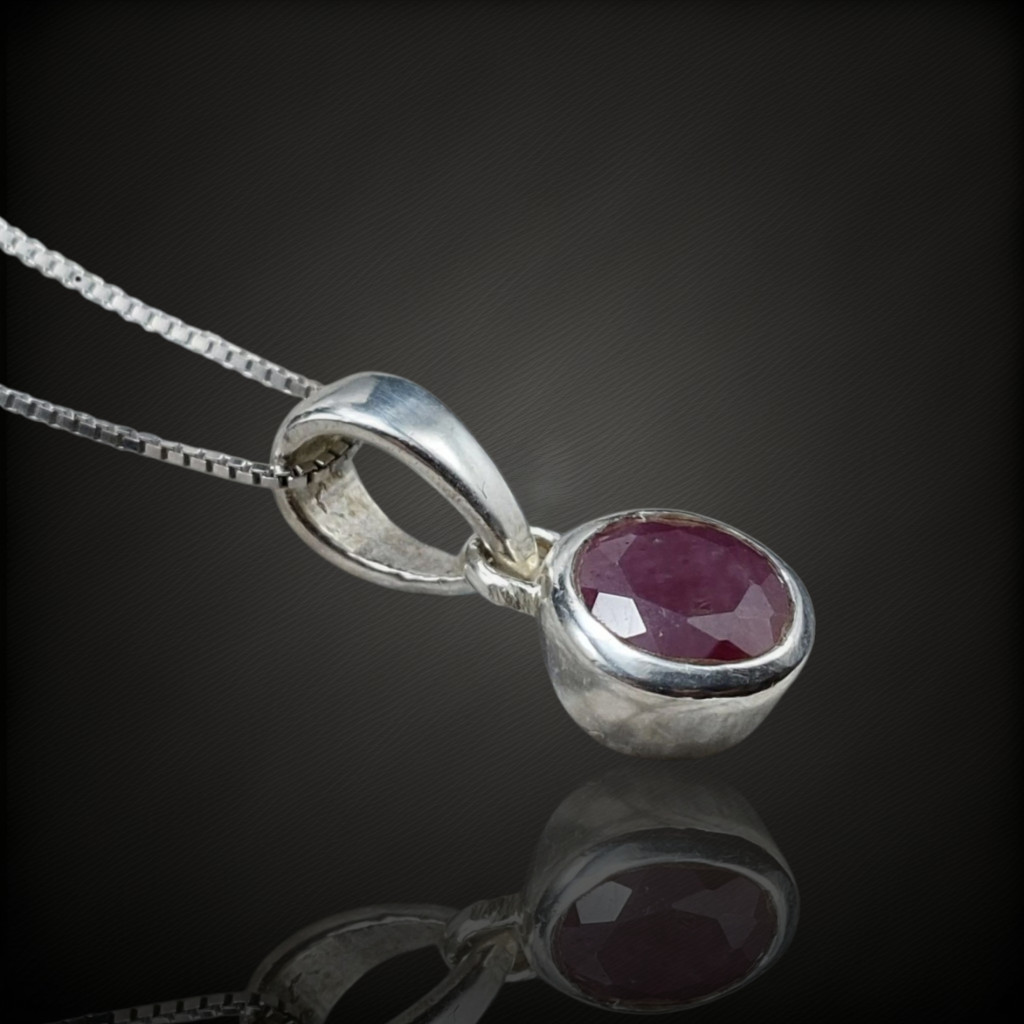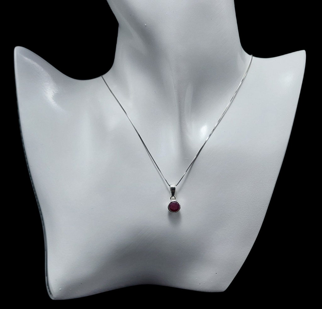 Rubin köves ezüst medál.A medál magassága bújtatóval együtt 16mm.A kő nagysága: 6x6mm, származási helye: Mozambik.Az ékszer anyaga 925-ös finomságú ezüst. A kő színe élőben kis mértékben eltérhet a képen láthatótl!A nyaklánc nem tartozék!