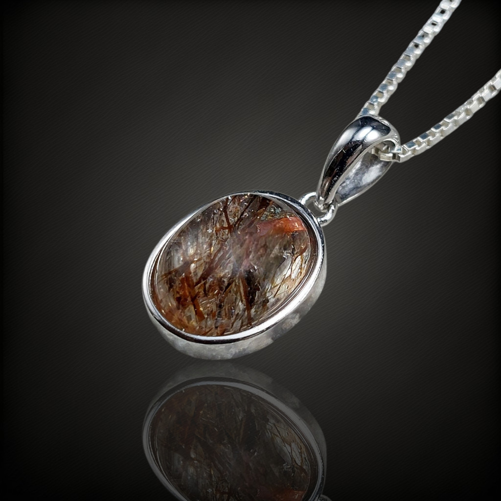 Rutilkvarc köves ezüstmedálA medál nagysága bújtatóval együtt: 17mmA kő nagysága: 10x8mm, származási helye: BrazíliaAz ékszer anyaga 925-ös finomságú ezüst.A kő színe élőben kis mértékben eltérhet a képen láthatótól.A nyaklánc nem tartozék!