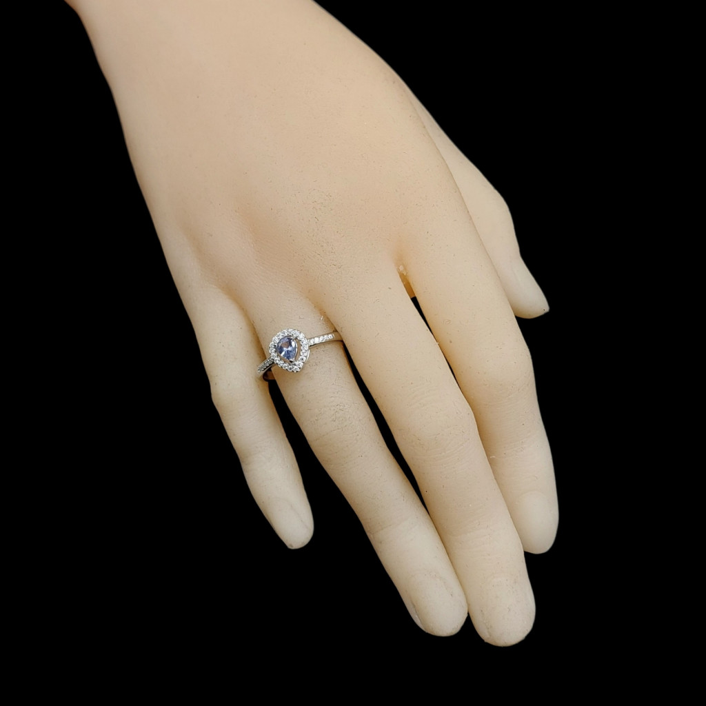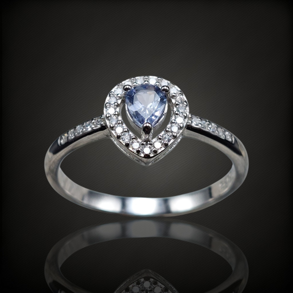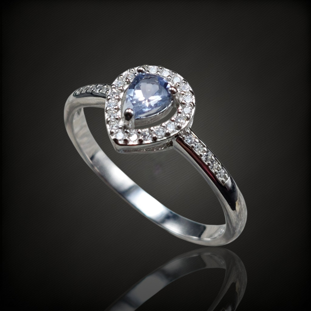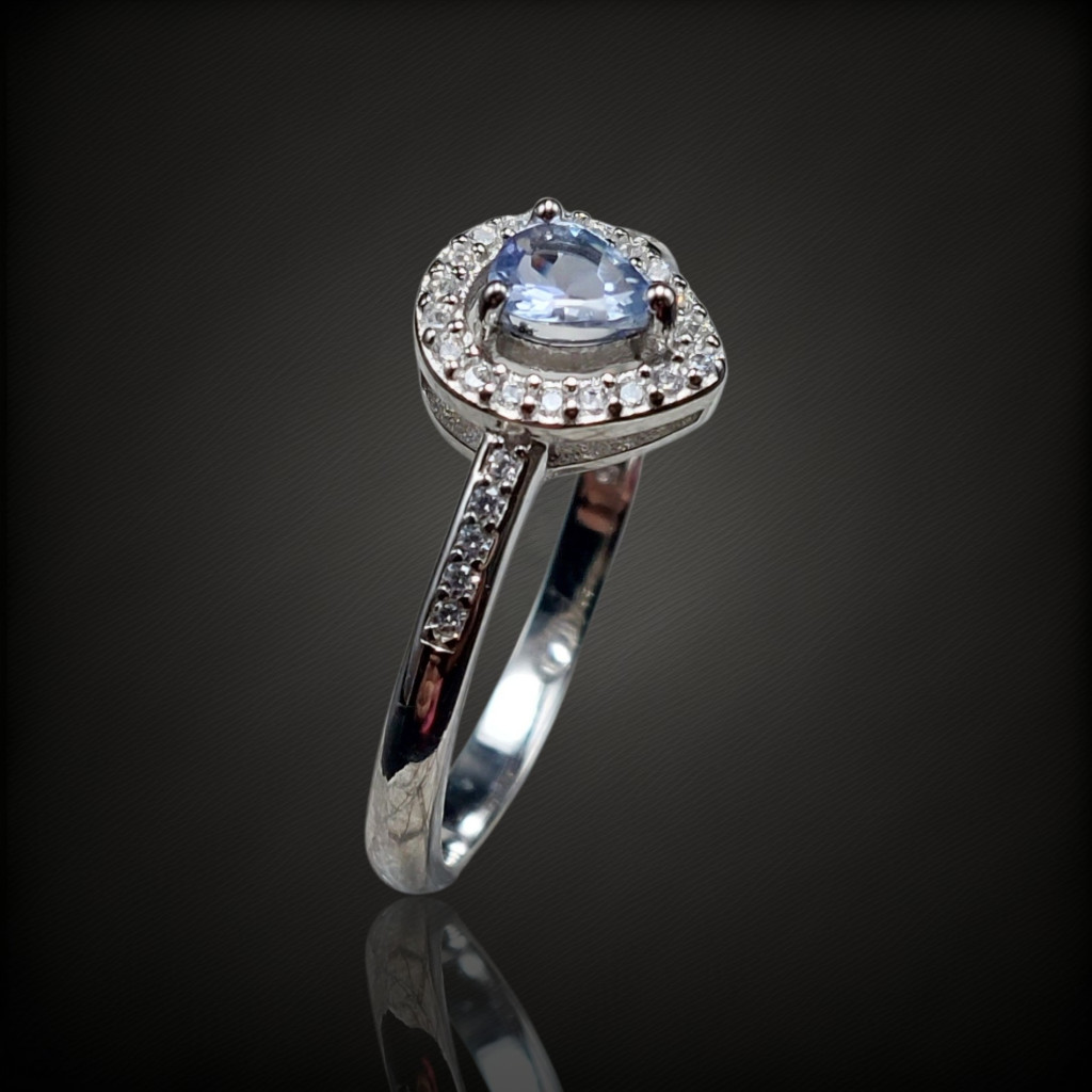 Tanzanit köves ezüst gyűrű cirkónia díszítéssel.
