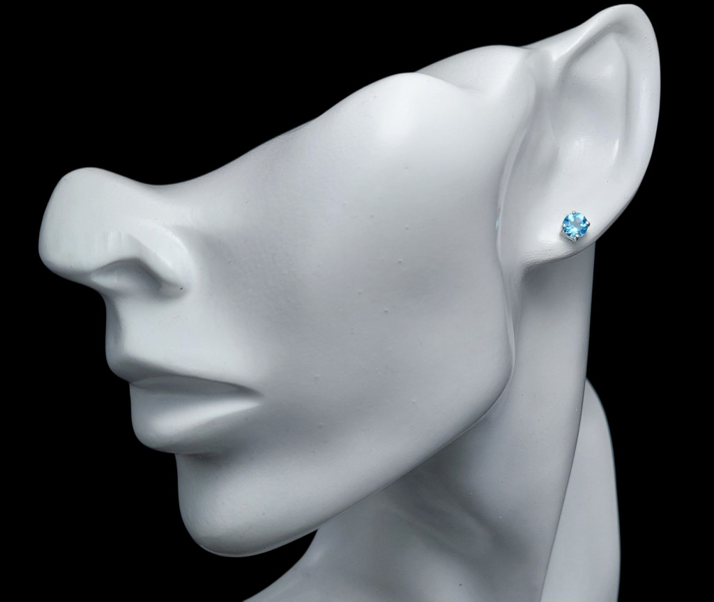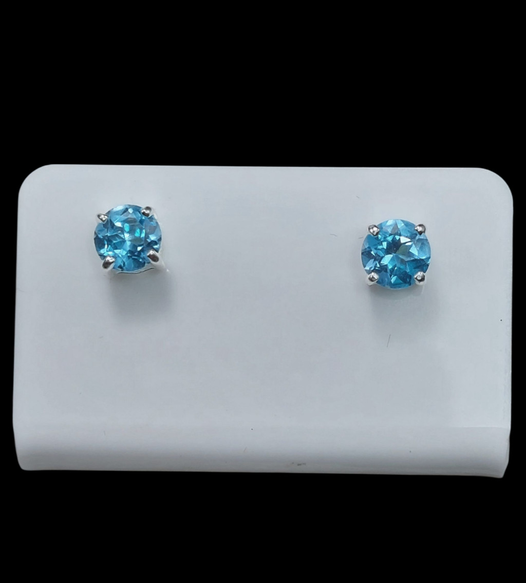Svájci kék (swiss blue) topáz köves beszúrós ezüst fülbevalóA kövek nagysága 5x5mm, származási helyük: BrazíliaAz ékszer anyaga 925-ös finomságú ezüst.A kövek színe élőben kis mértékben eltérhet a képen láthatótól!
