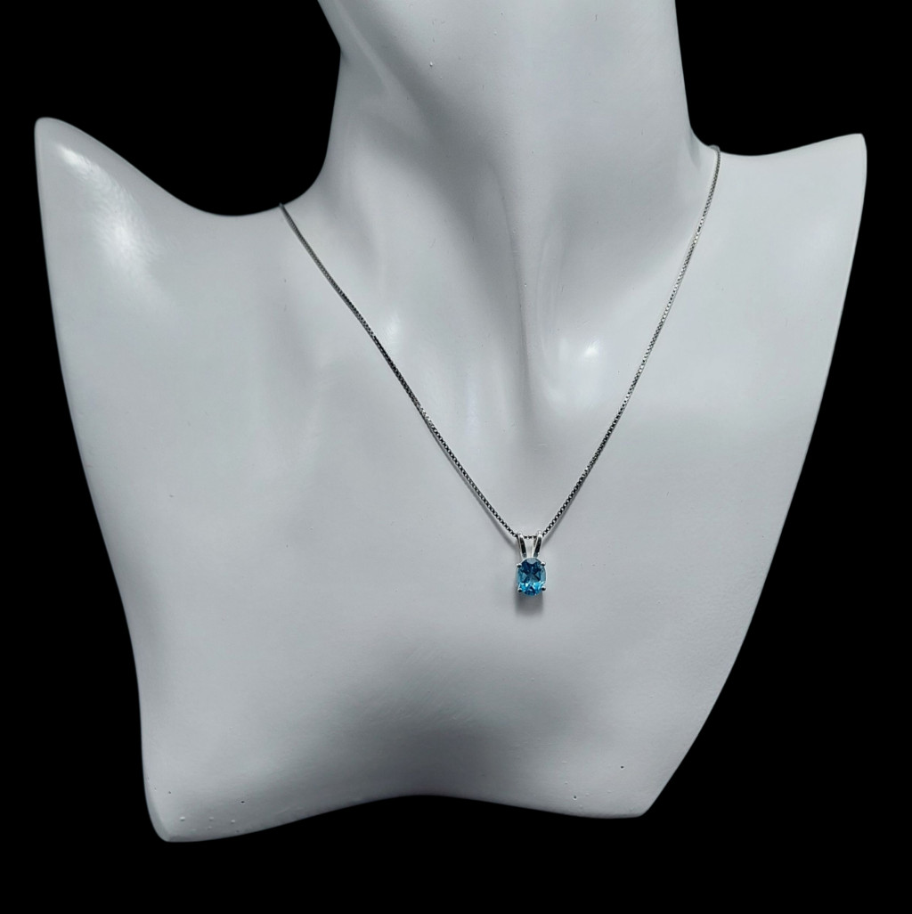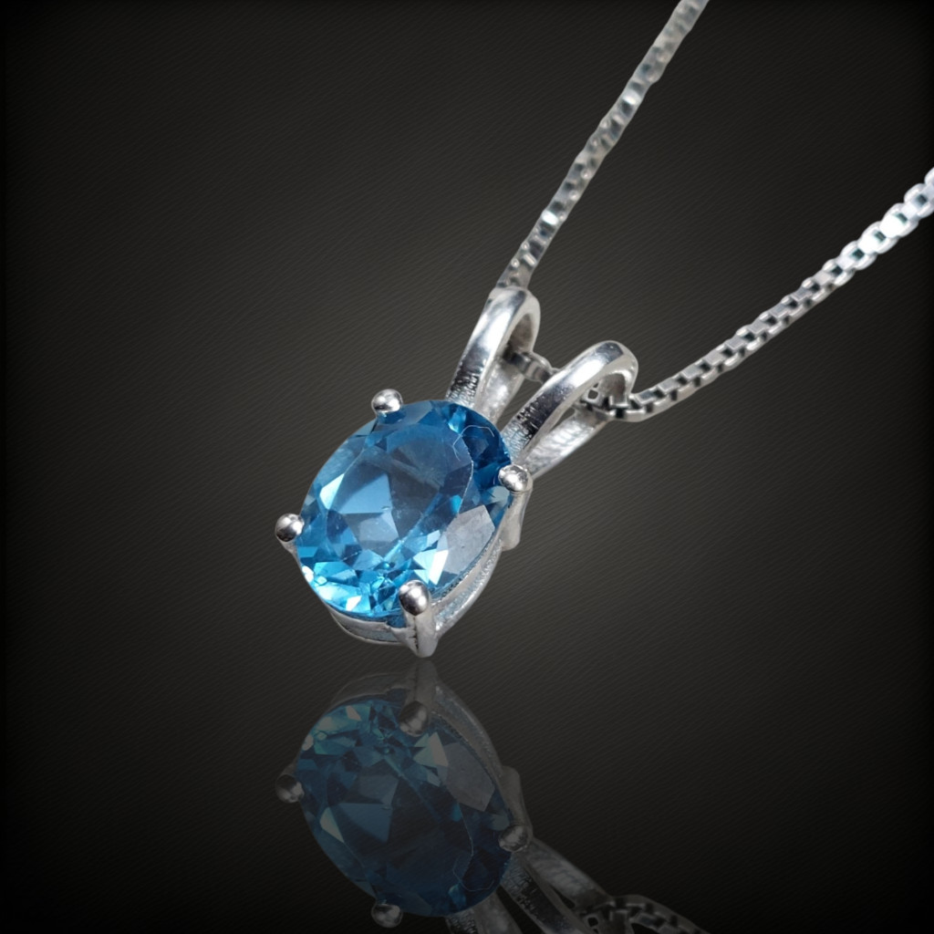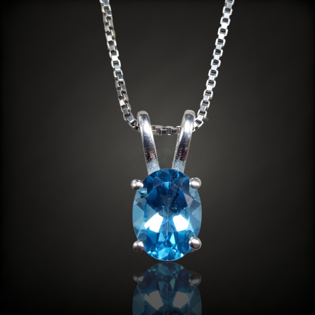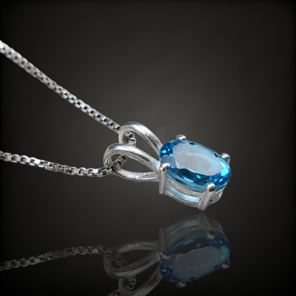Swissblue topáz köves ezüstmedálA medál nagysága bújtatóval együtt: 14mmA kő nagysága: 8x6mm, származási helye: BrazíliaAz ékszer anyaga 925-ös finomságú ezüst.A kő színe élőben kis mértékben eltérhet a képen láthatótól.A nyaklánc nem tartozék!