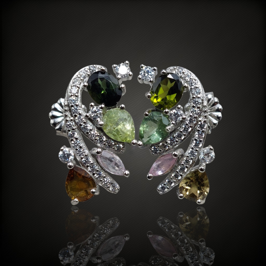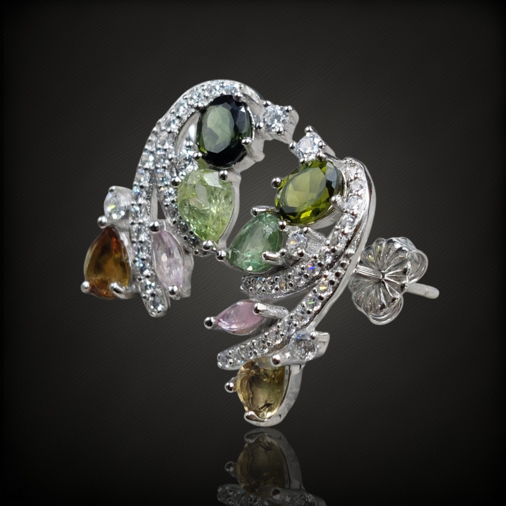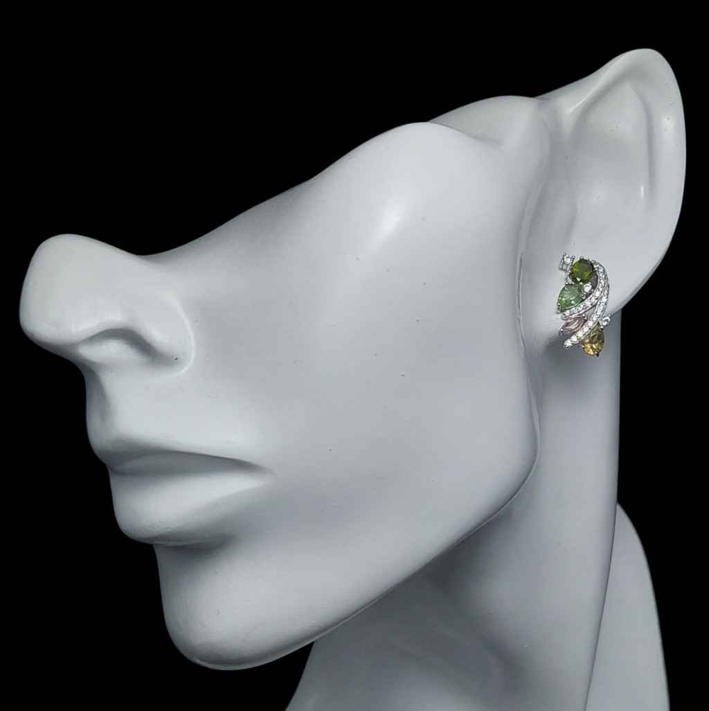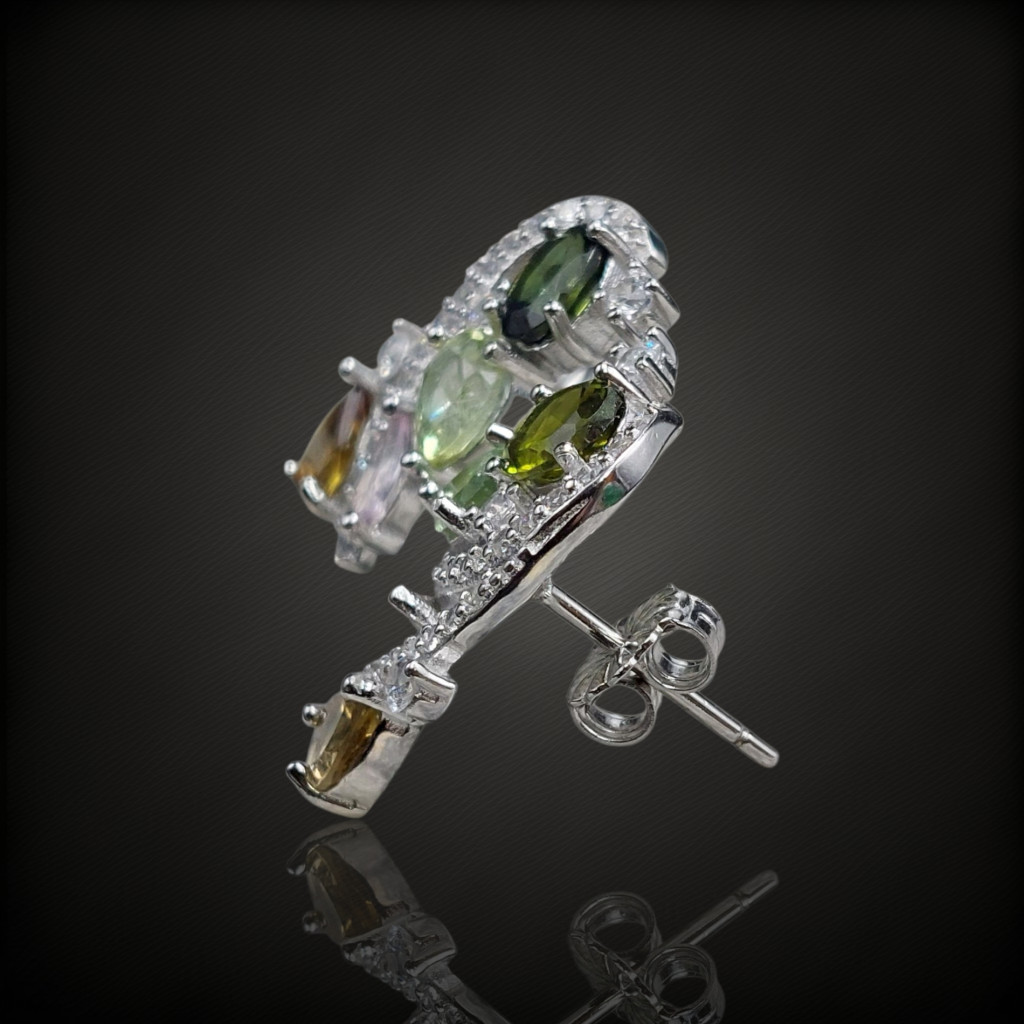 Turmalin köves beszúrós fazonú ezüst fülbevaló cirkónia díszítéssel.