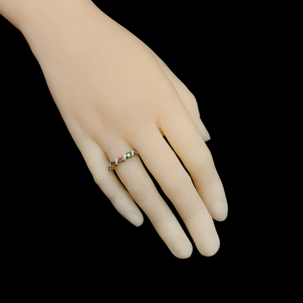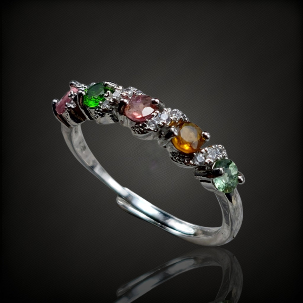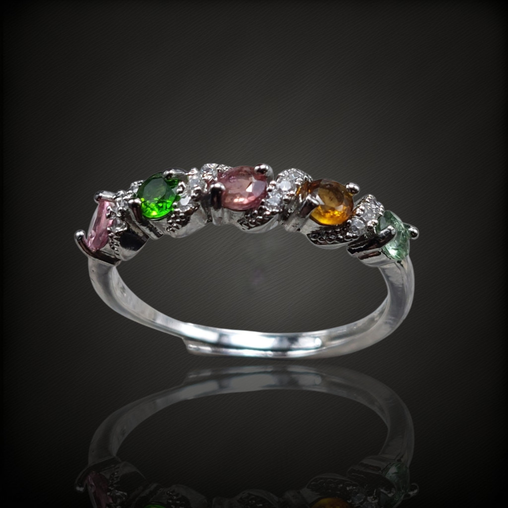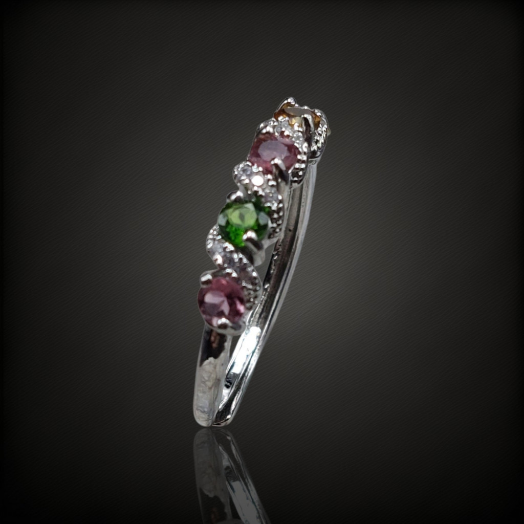 Turmalin köves, állítható méretű, ezüst gyűrű cirkónia díszítéssel.