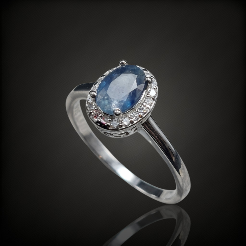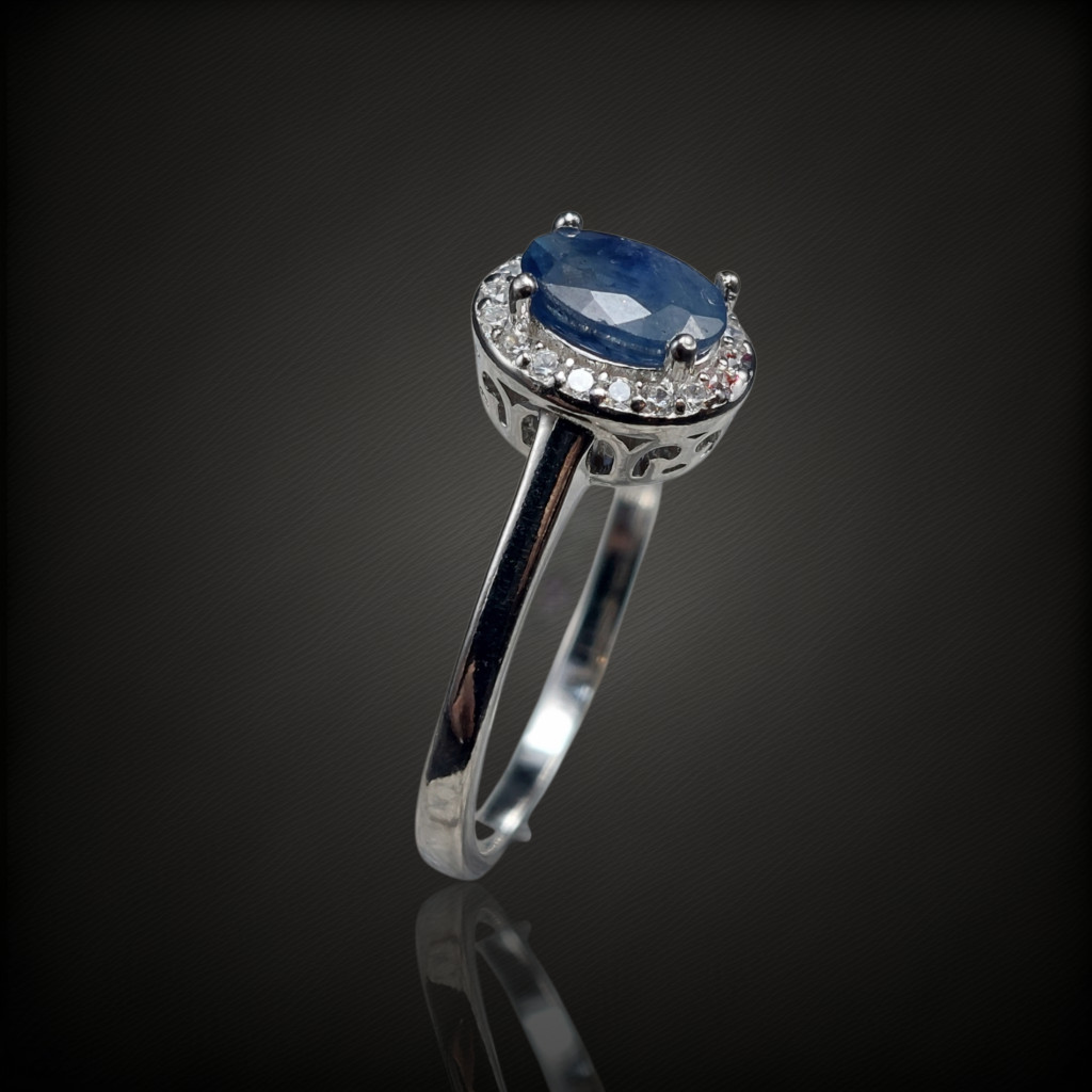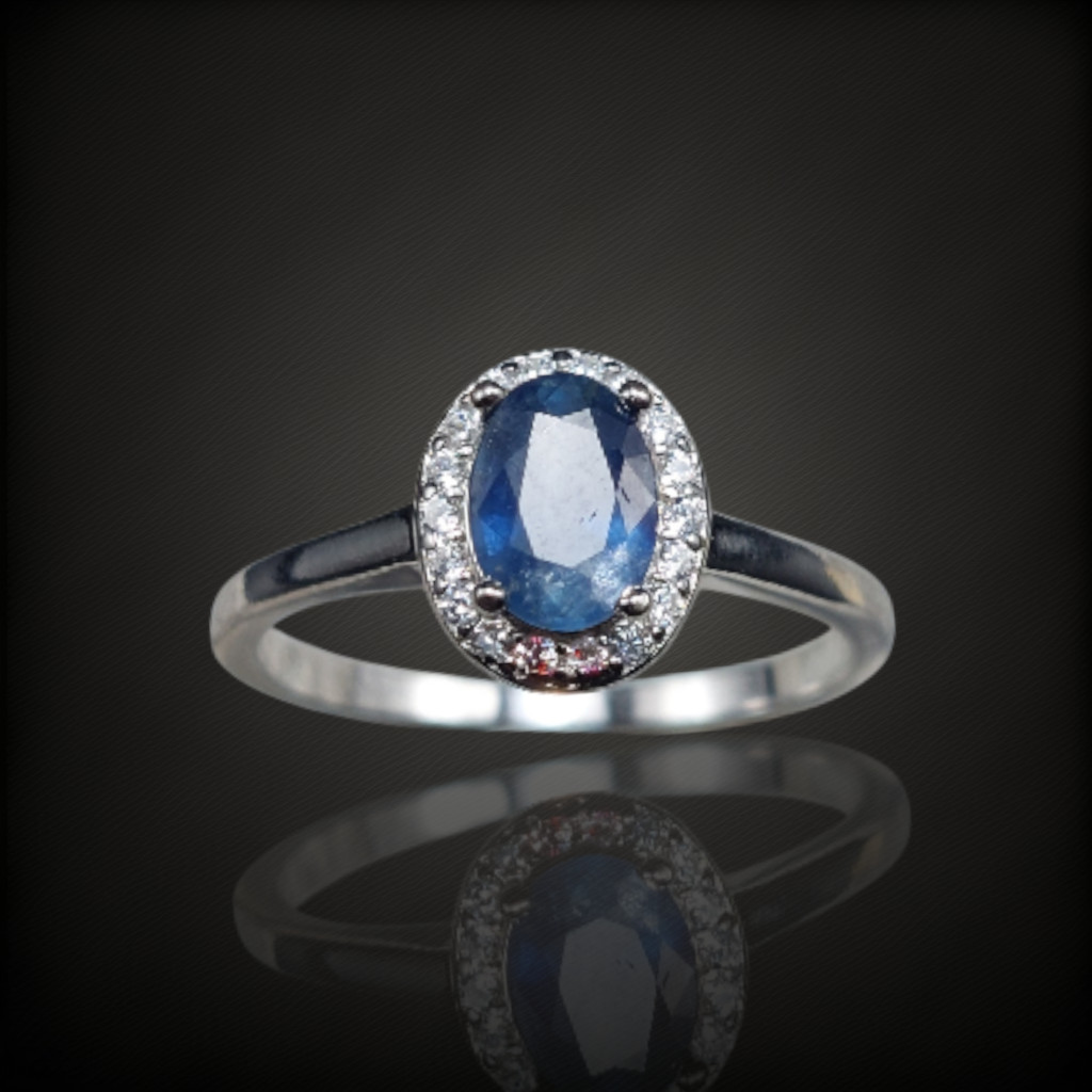 Kékzafír köves ezüst gyűrű cirkónia díszítéssel.