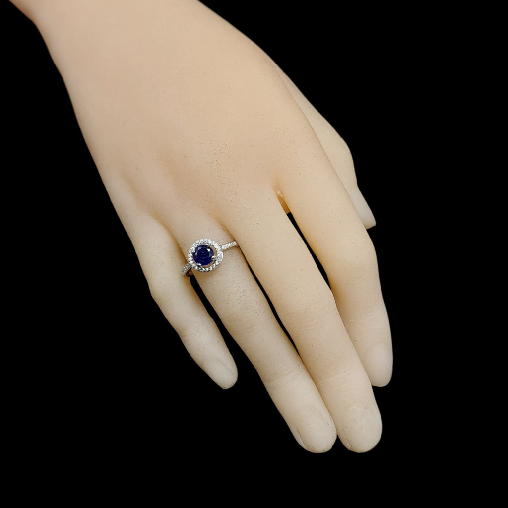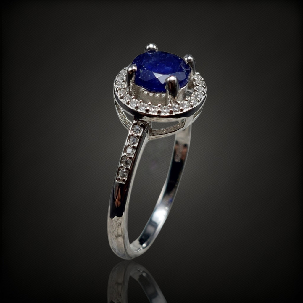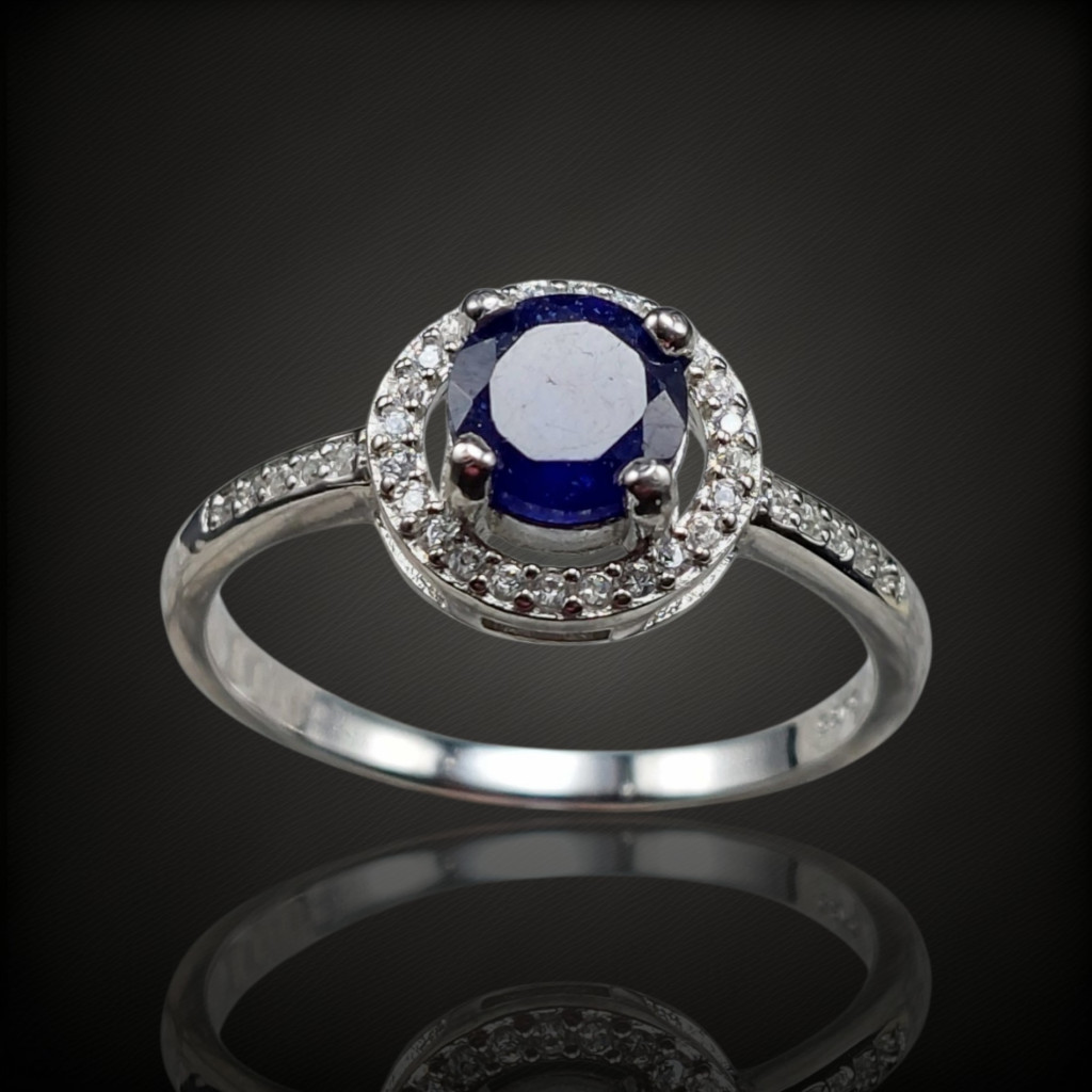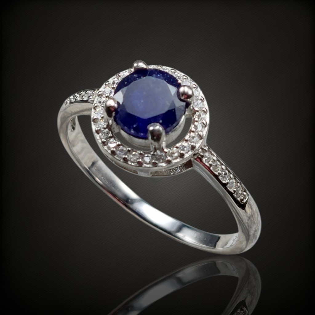 Zafír köves ezüst gyűrű cirkónia díszítéssel.