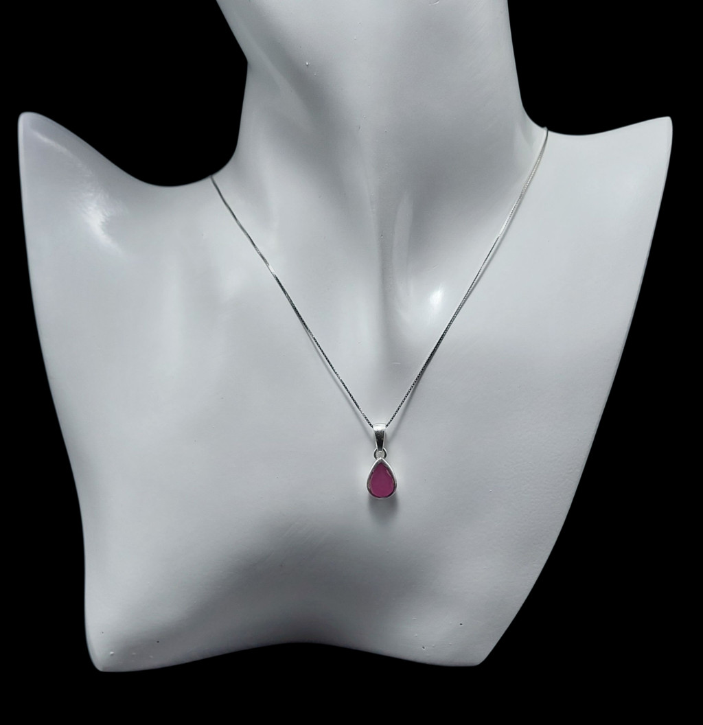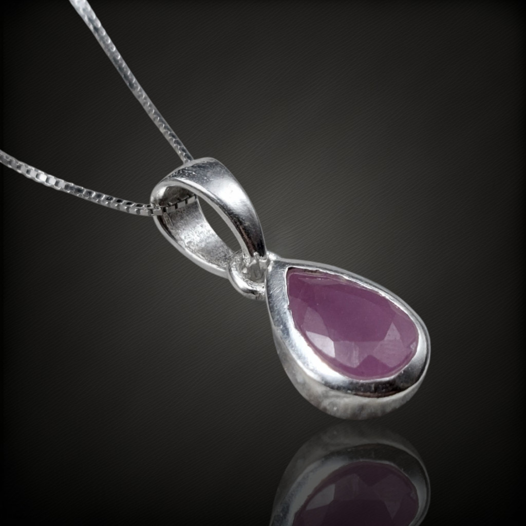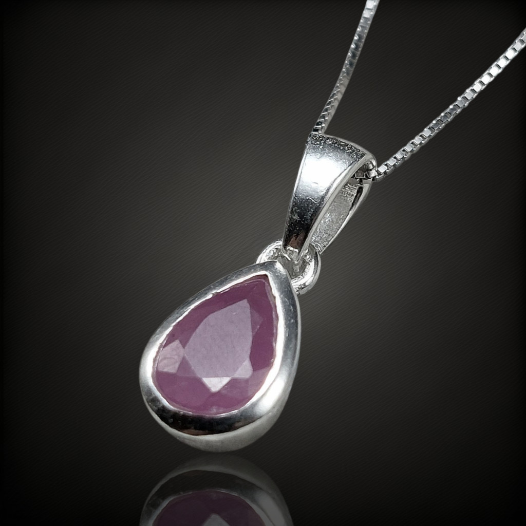 Rubin köves ezüst medál.A medál nagysága bújtatóval együtt 18mm.A kő mérete: 9x7mm, származási helye: MozambikAz ékszer anyaga 925-ös finomságú ezüst.A kő színe élőben kis mértékben eltérhet a képen láthatótól.A nyaklánc nem tartozék!