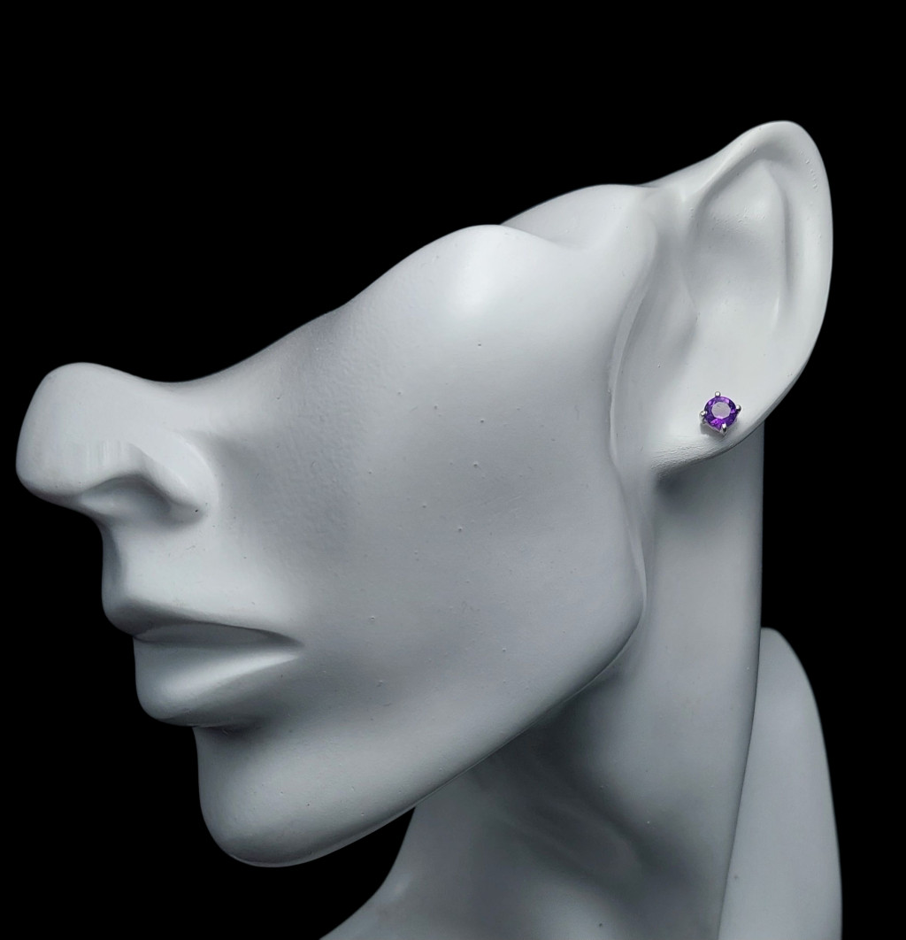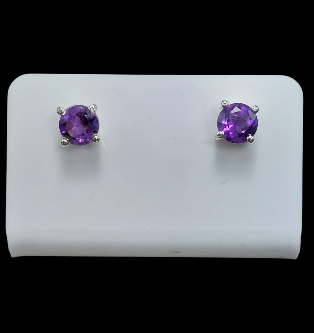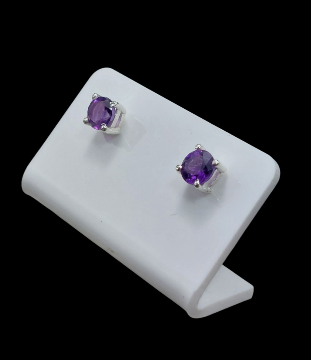 Ametiszt köves beszúrós ezüst fülbevalóA kövek nagysága 5x5mm, származási helyük: ZambiaAz ékszer anyaga 925-ös finomságú ezüst.A kövek színe élőben kis mértékben eltérhet a képen láthatótól!