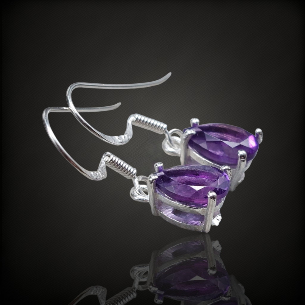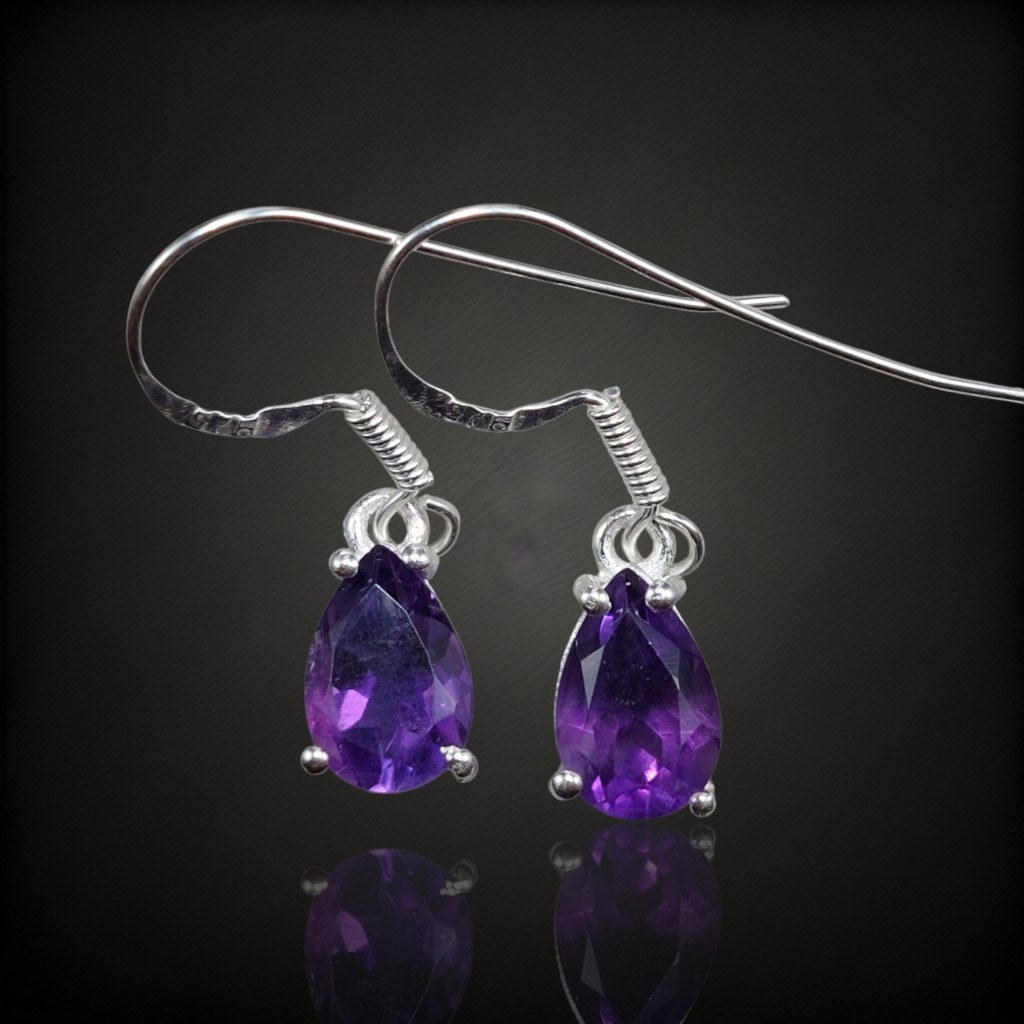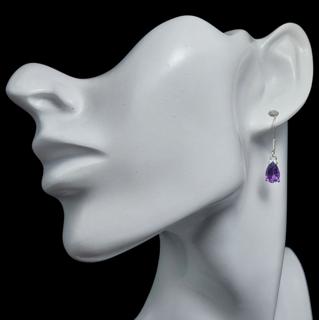 Ametiszt köves lógós ezüst fülbevaló