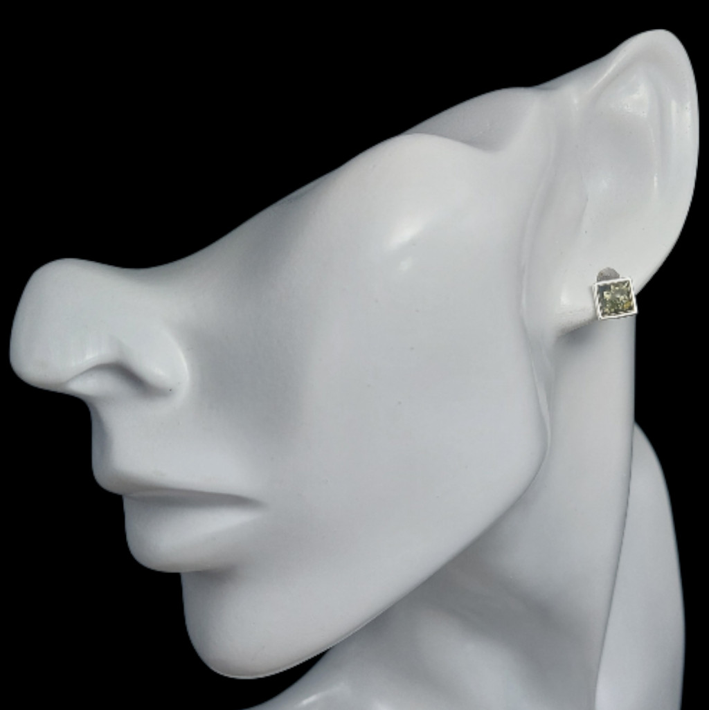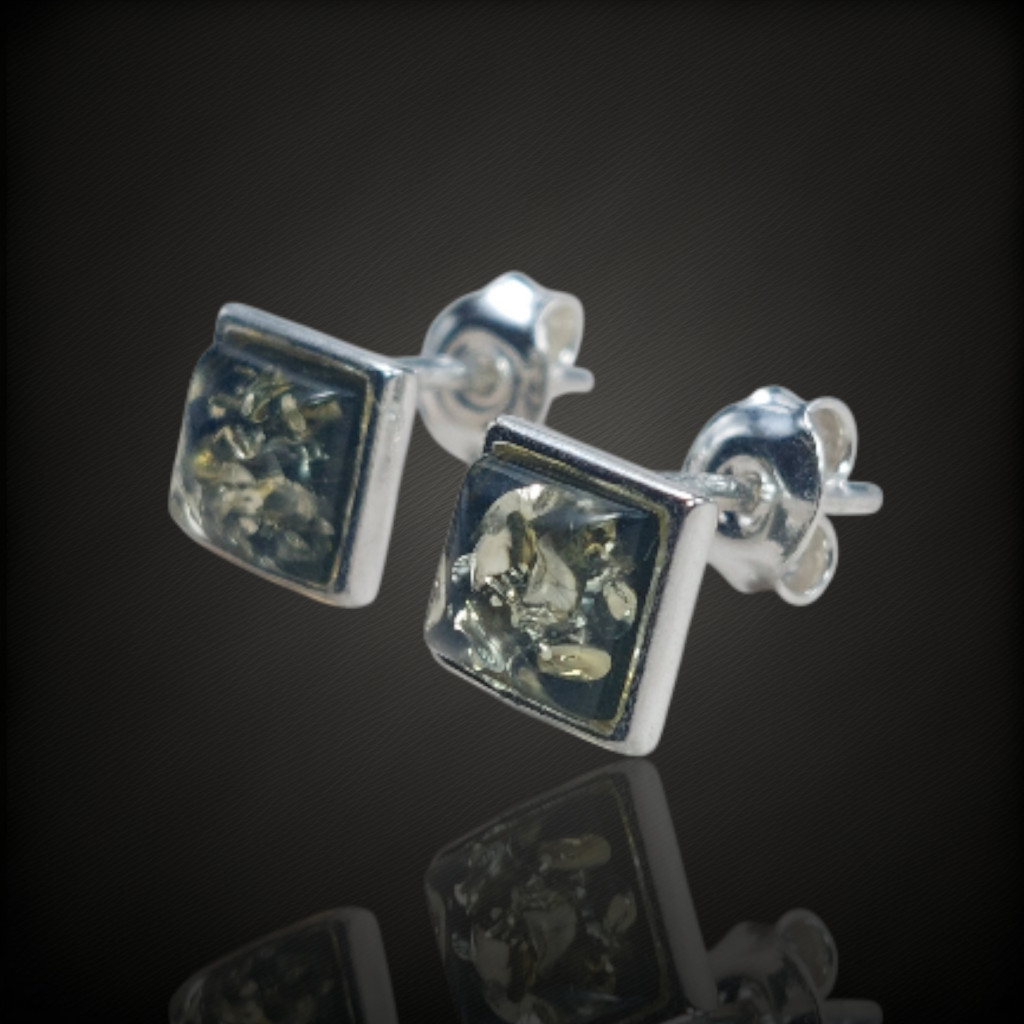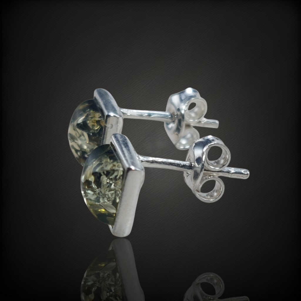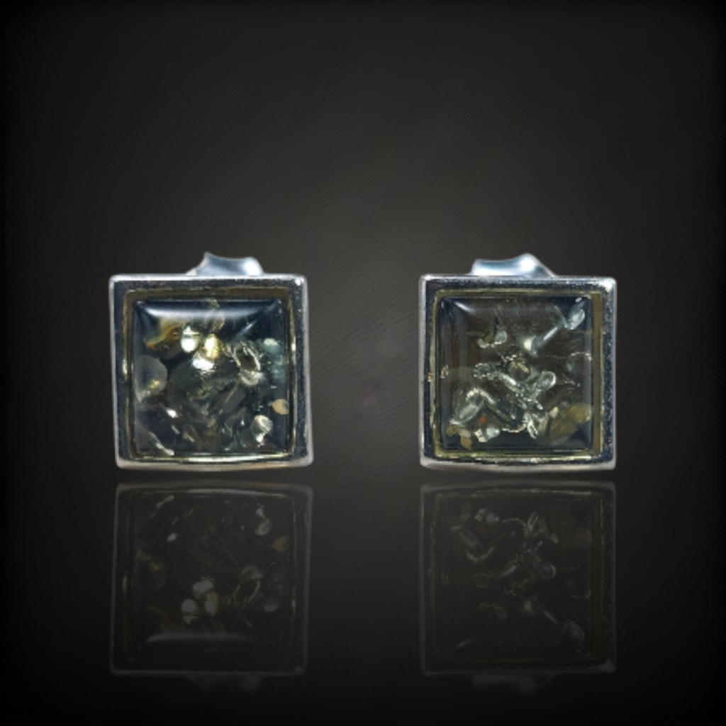 Borostyán köves beszúrós fazonú ezüst fülbevaló.