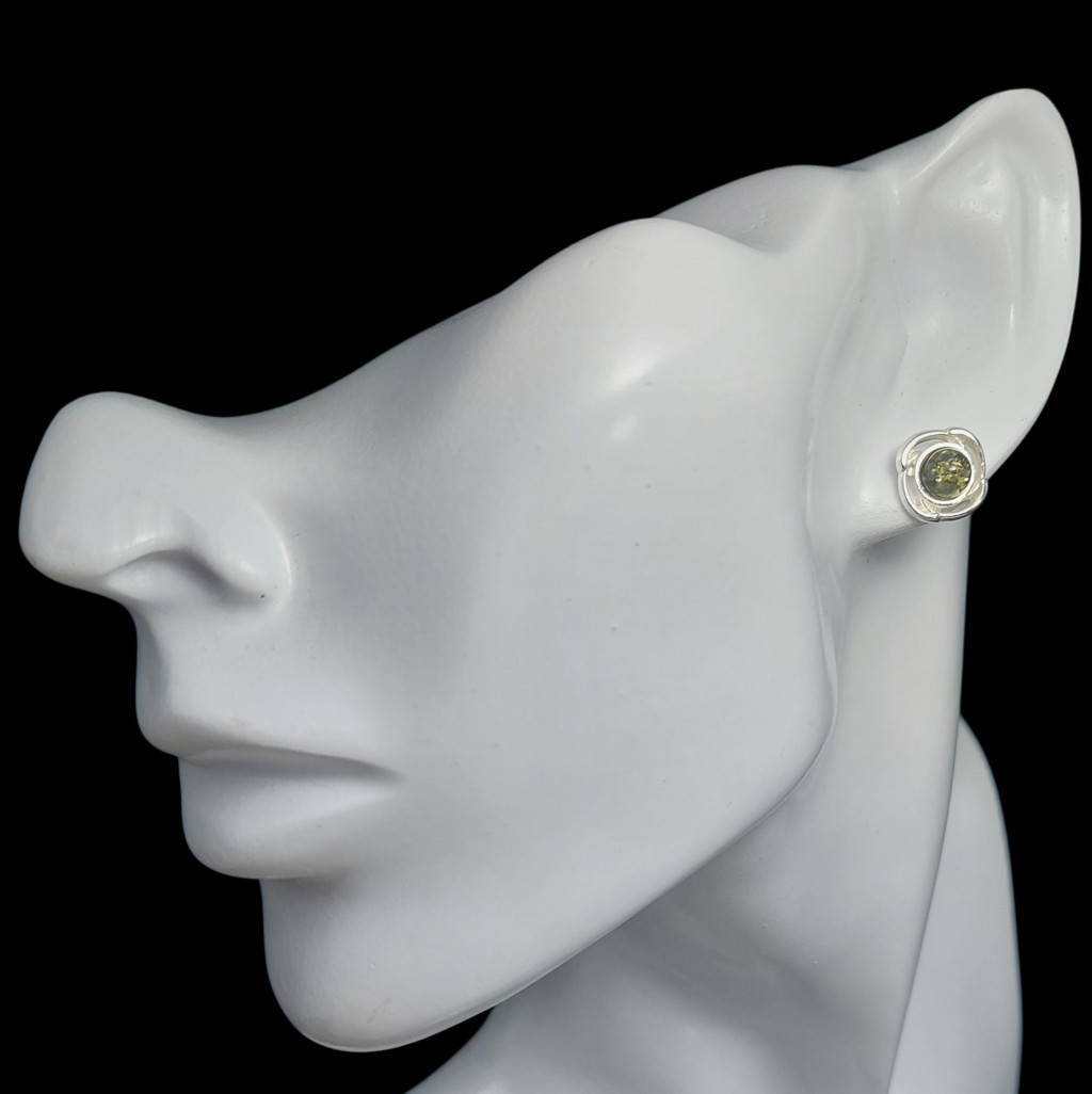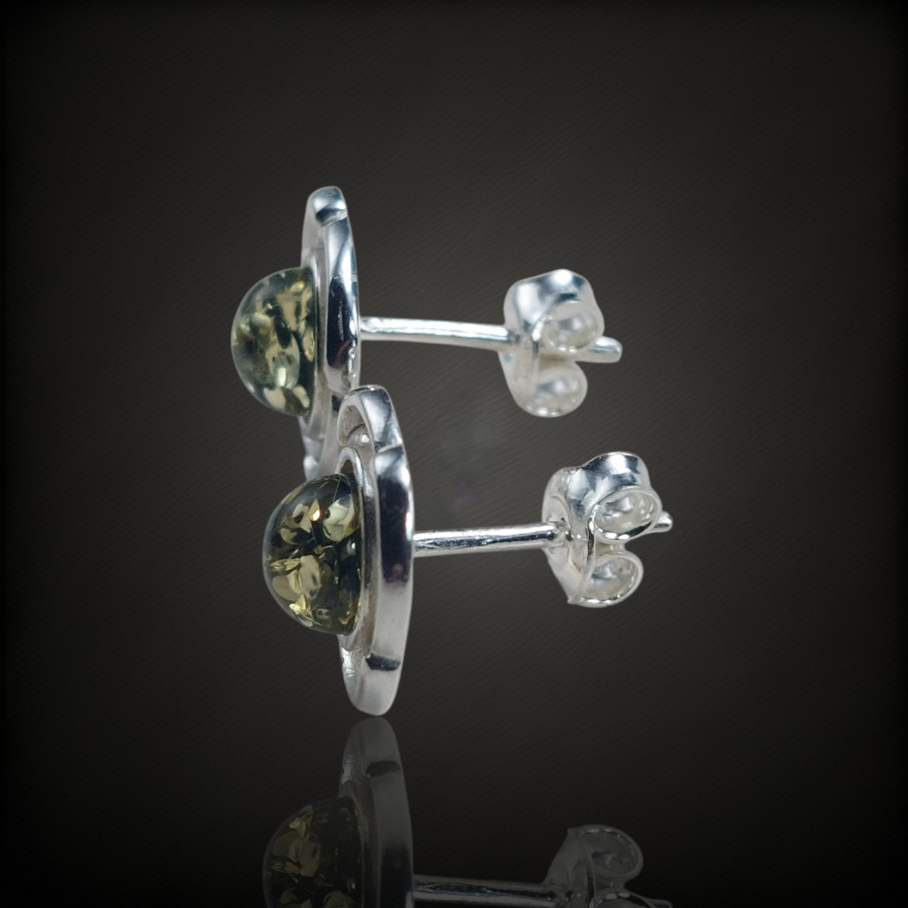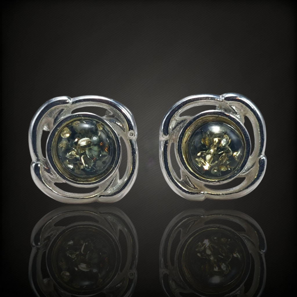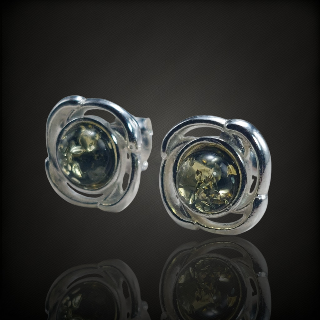 Borostyán köves beszúrós fazonú ezüst fülbevaló.