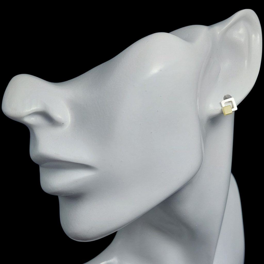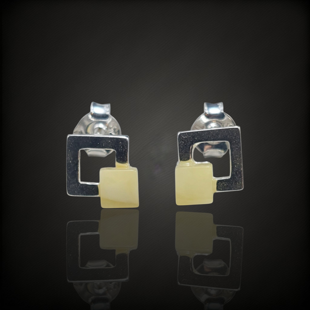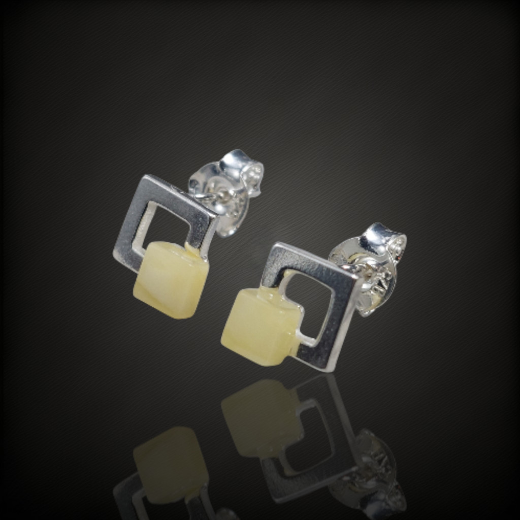 Borostyán köves beszúrós fazonú ezüst fülbevaló.