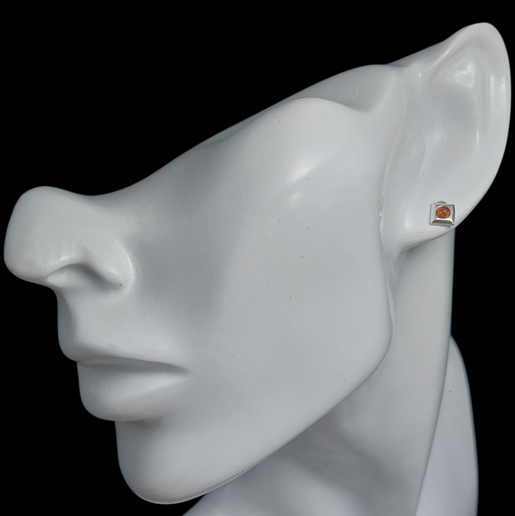 Borostyán köves beszúrós fazonú ezüst fülbevaló.