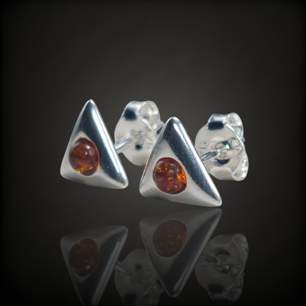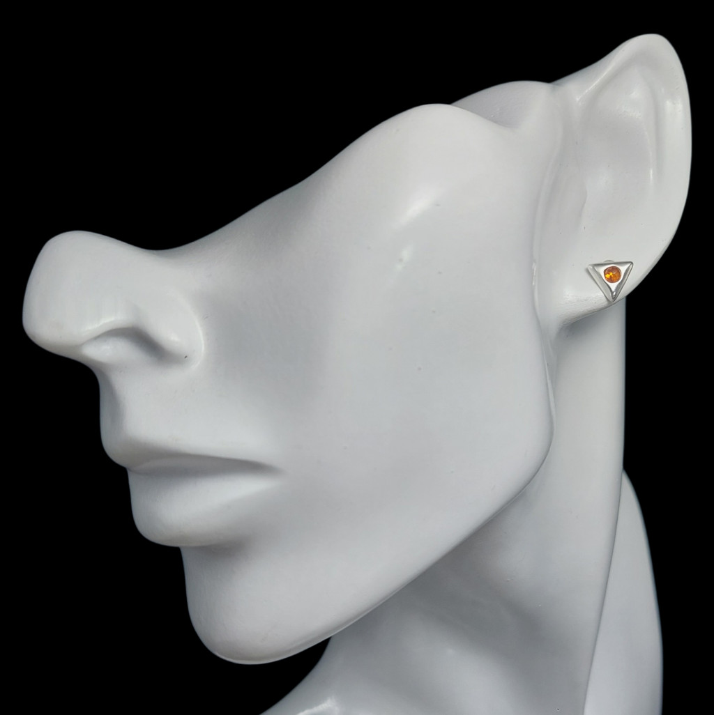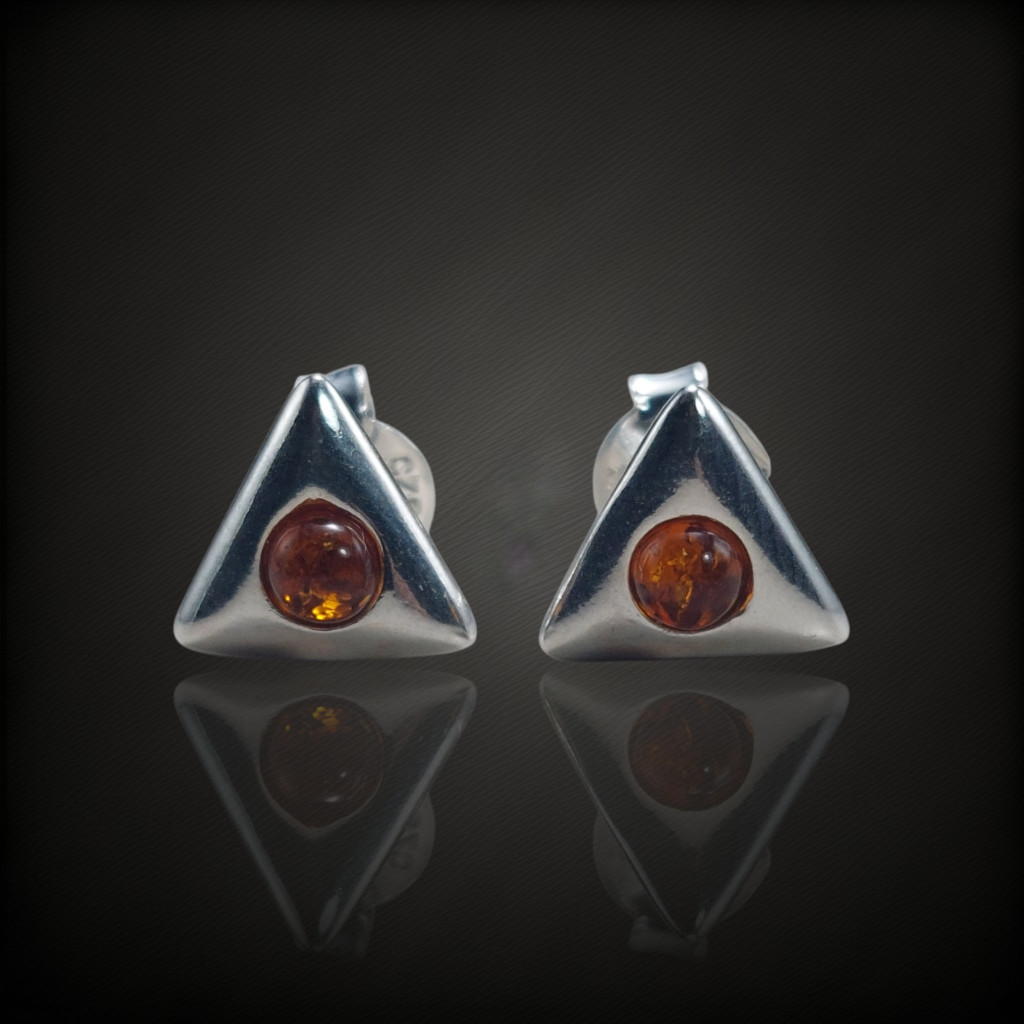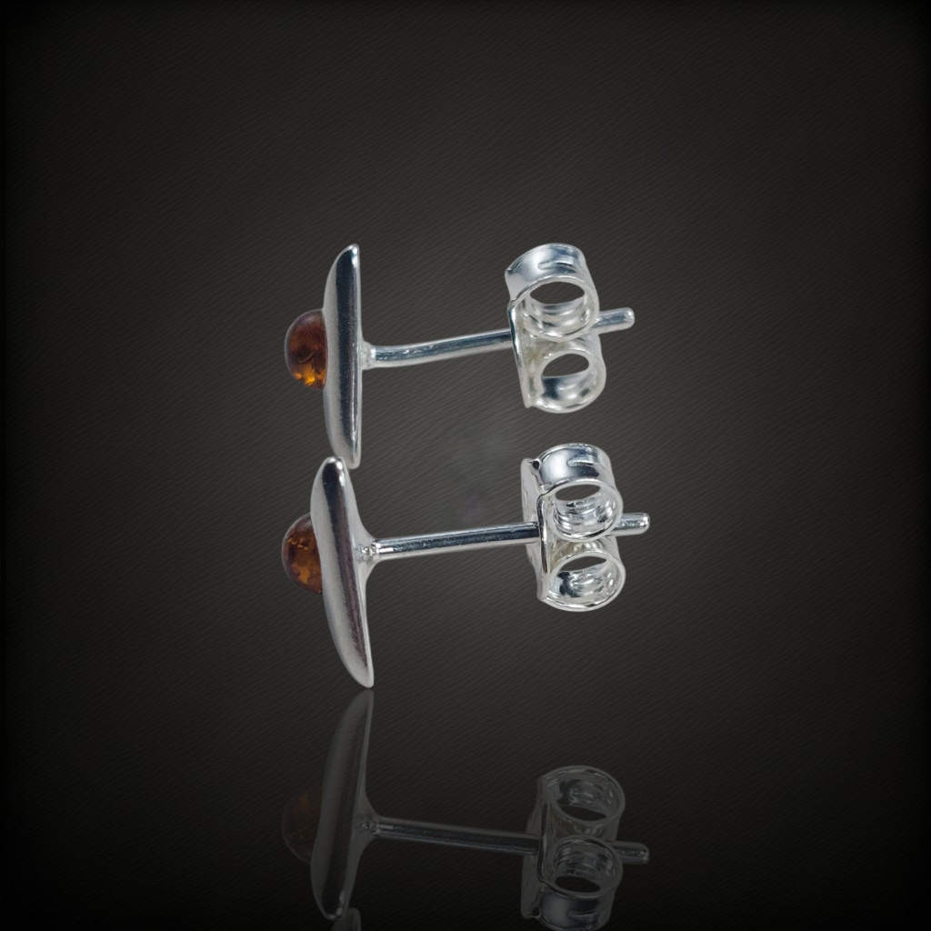 Borostyán köves beszúrós fazonú ezüst fülbevaló.