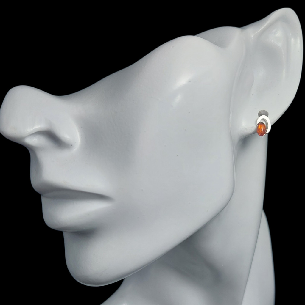 Borostyán köves beszúrós fazonú ezüst fülbevaló.A fülbevaló nagysága 8x6mm.Az ékszer anyaga 925-ös finomságú ezüst.A kő színe élőben kis mértékben eltérhet a képen láthatótól!