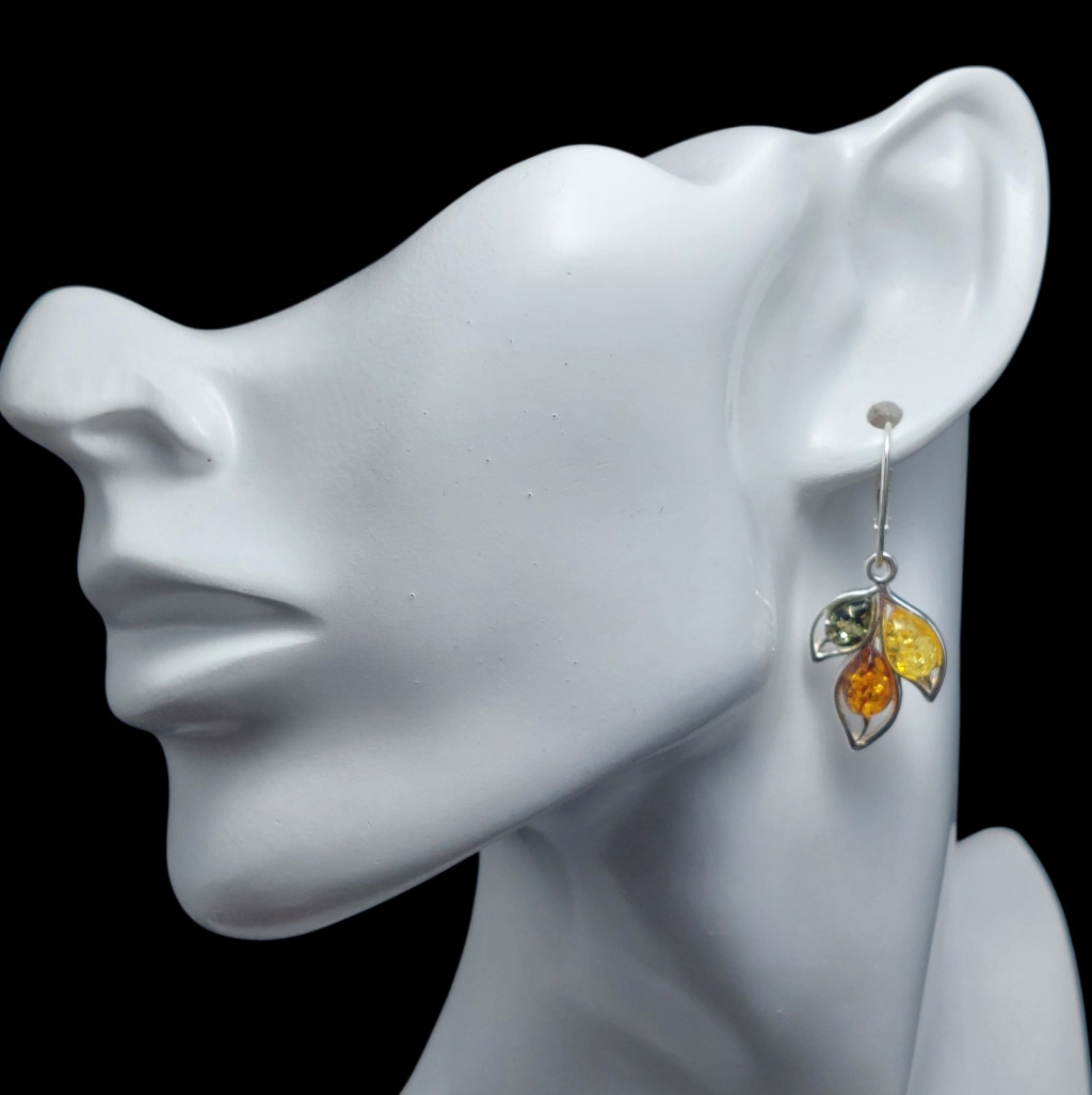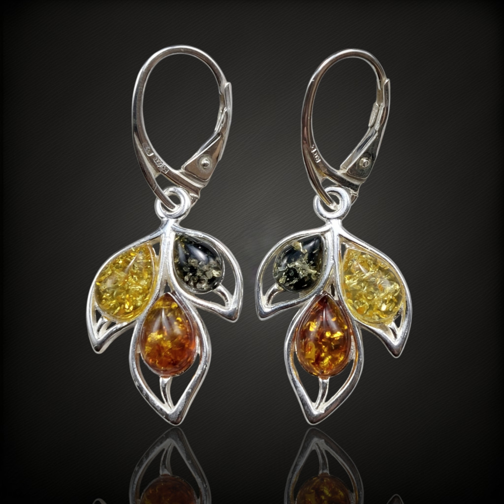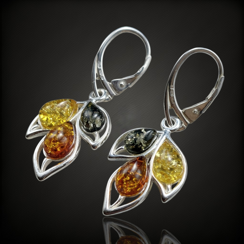 Borostyán köves lógós fazonú ezüst fülbevaló.A fülbevaló hossza akasztóval együtt 39mm.Az ékszer anyaga 925-ös finomságú ezüst.A kövek színe élőben kis mértékben eltérhet a képen láthatótól.