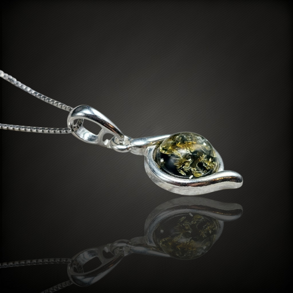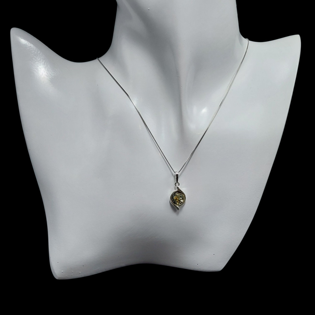 Borostyán köves ezüst medál.A medál nagysága bújtatóval együtt 23mm.Az ékszer anyaga 925-ös finomságú ezüst.A kő színe élőben kis mértékben eltérhet a képen láthatótól.A nyaklánc nem tartozék!