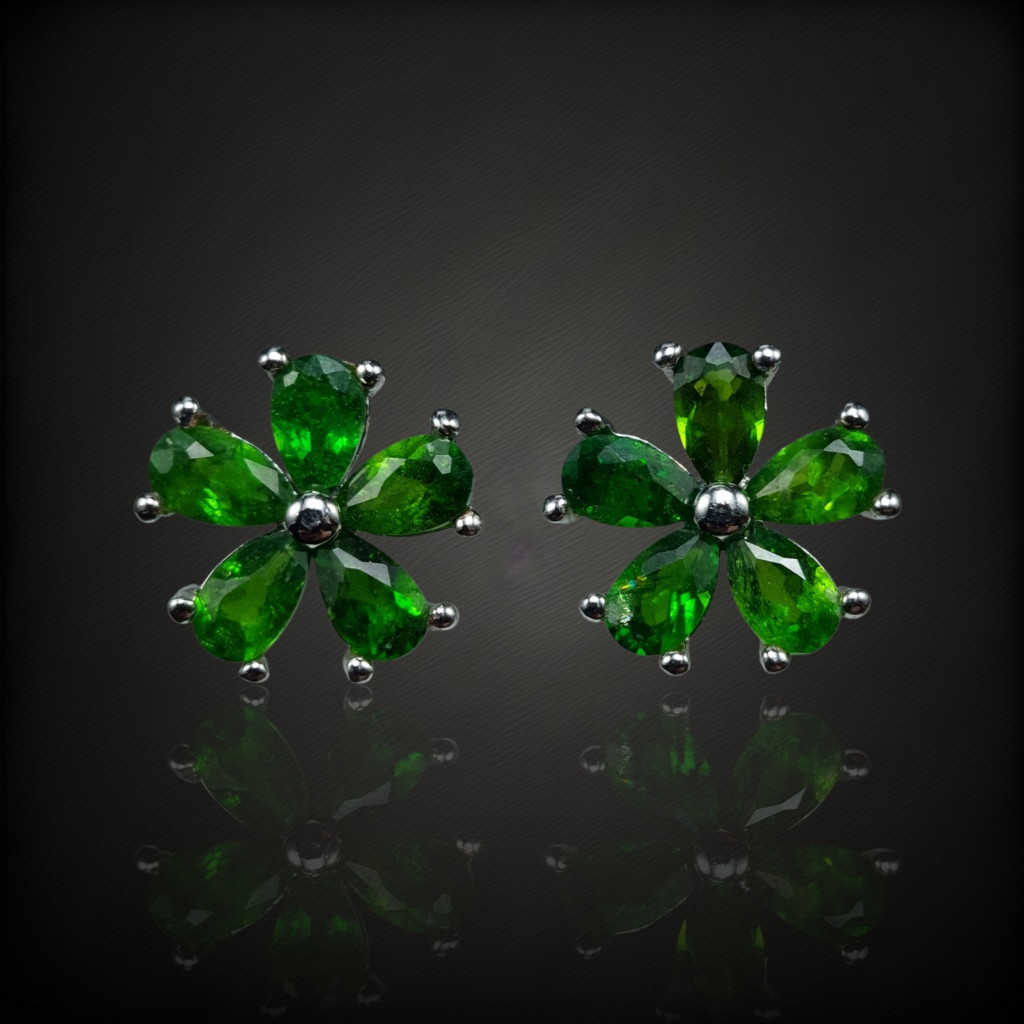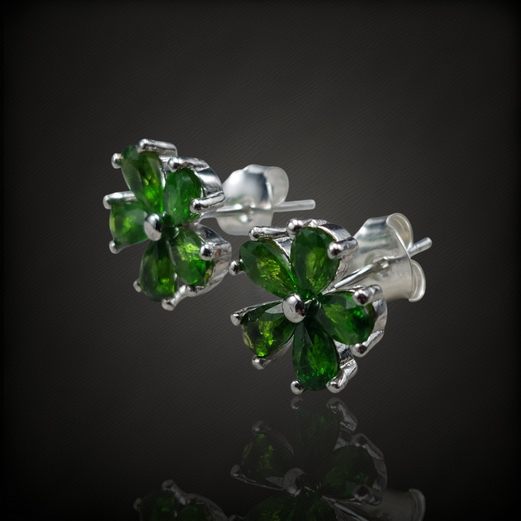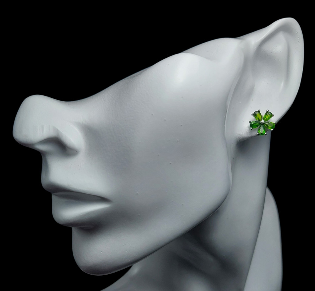 Króm-diopszid köves beszúrós fazonú ezüst fülbevaló.